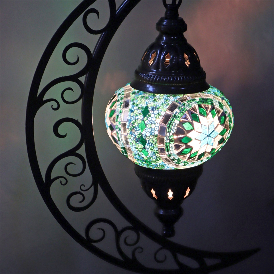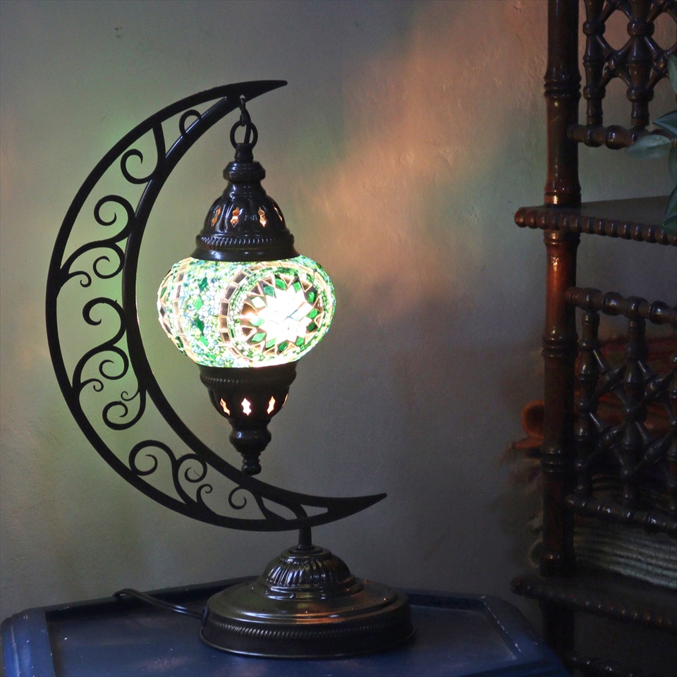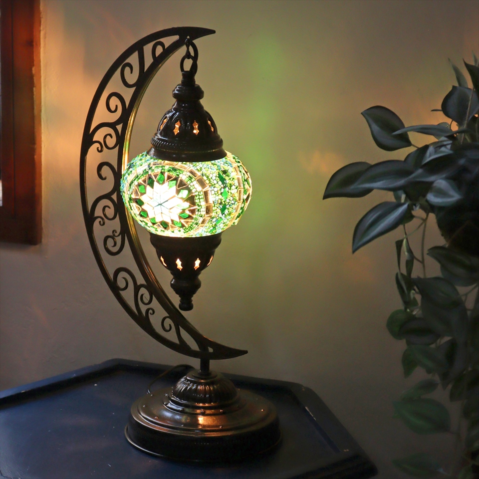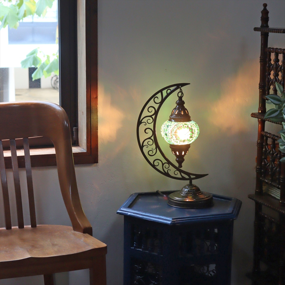 トルコランプ モザイクテーブルランプ クレッセントムーン 高さ41cm ブルー/グリーン