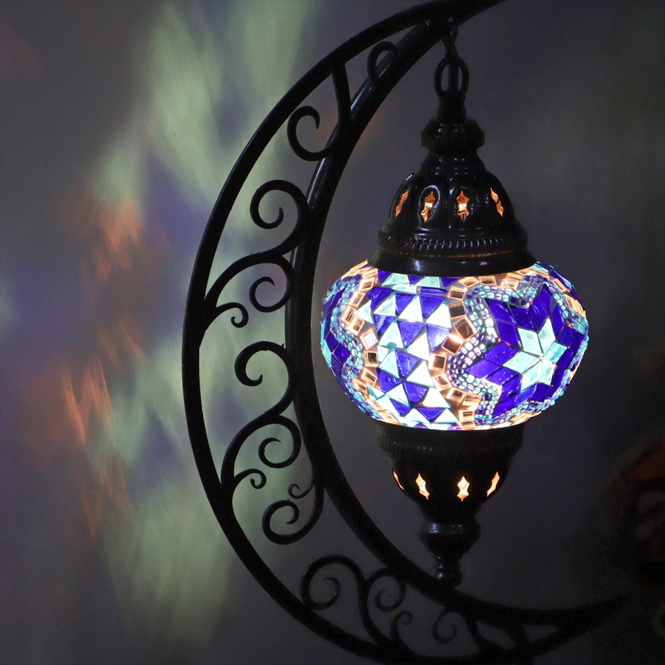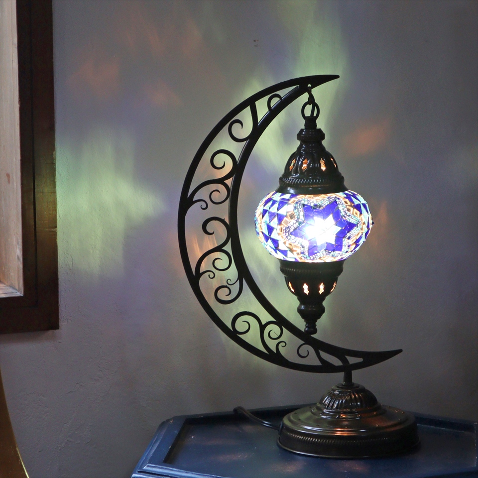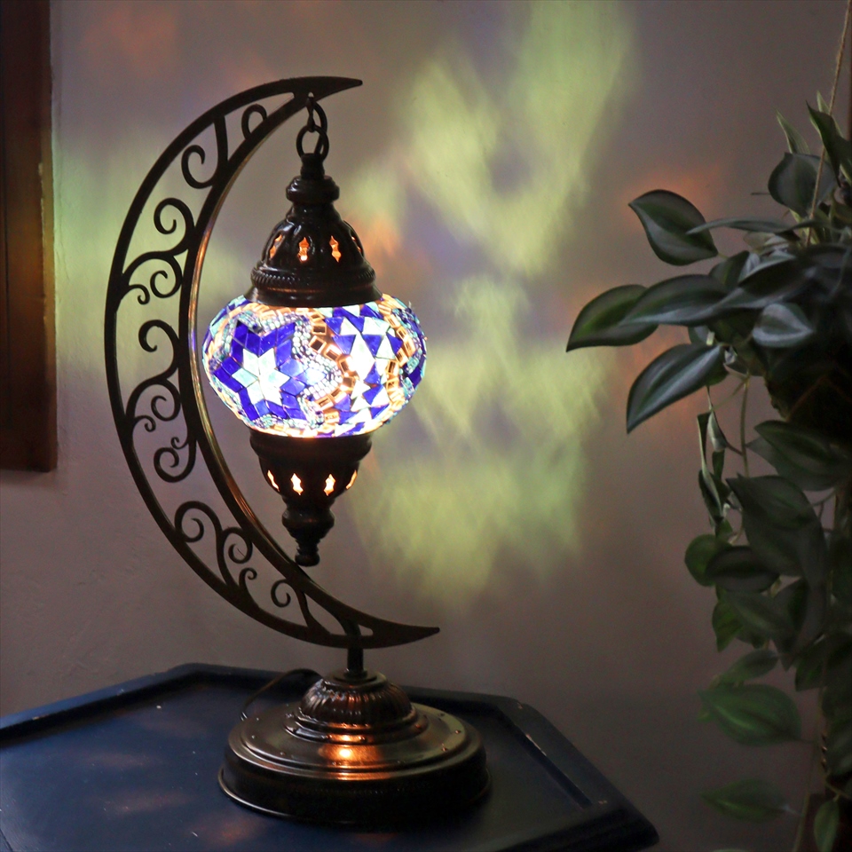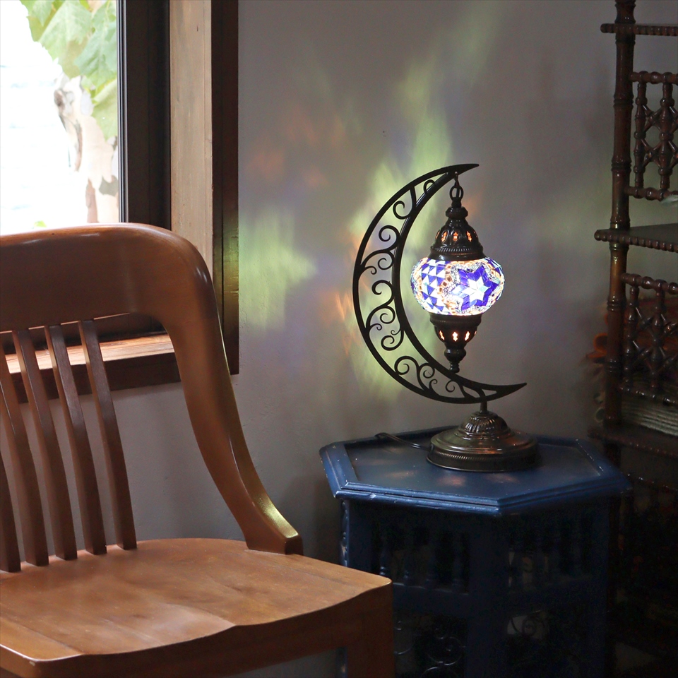 トルコランプ モザイクテーブルランプ クレッセントムーン 高さ41cm ブルー