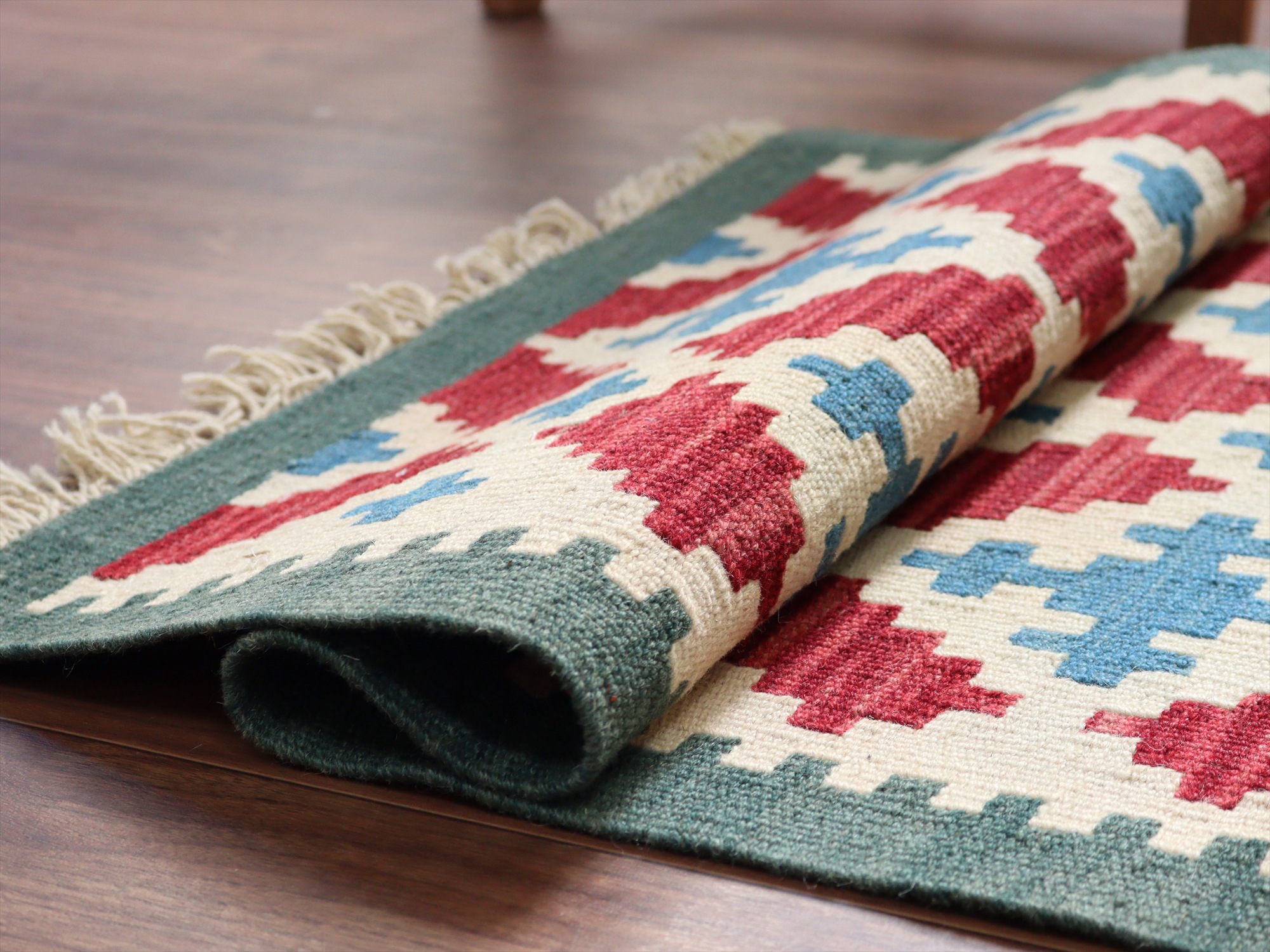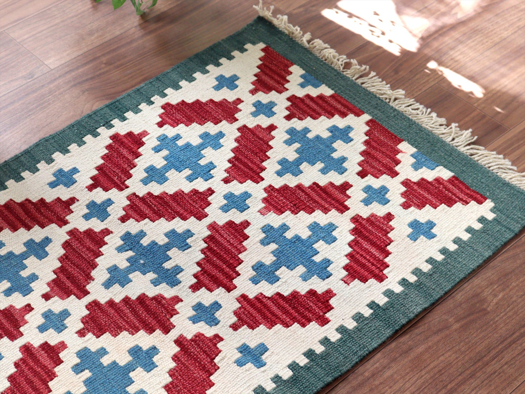 手織りキリム イラン シラーズ94×61cm カラフルな幾何学モチーフ