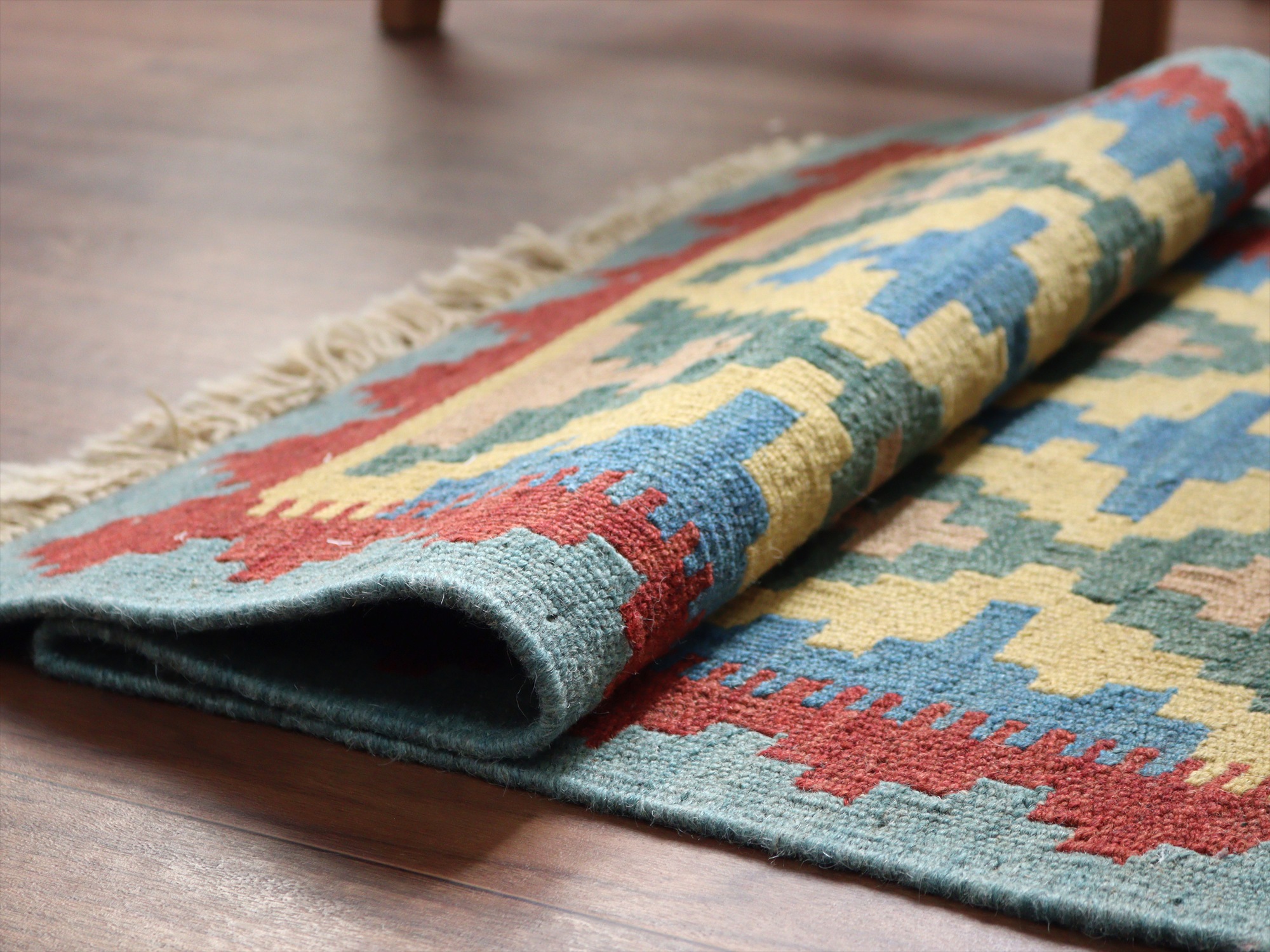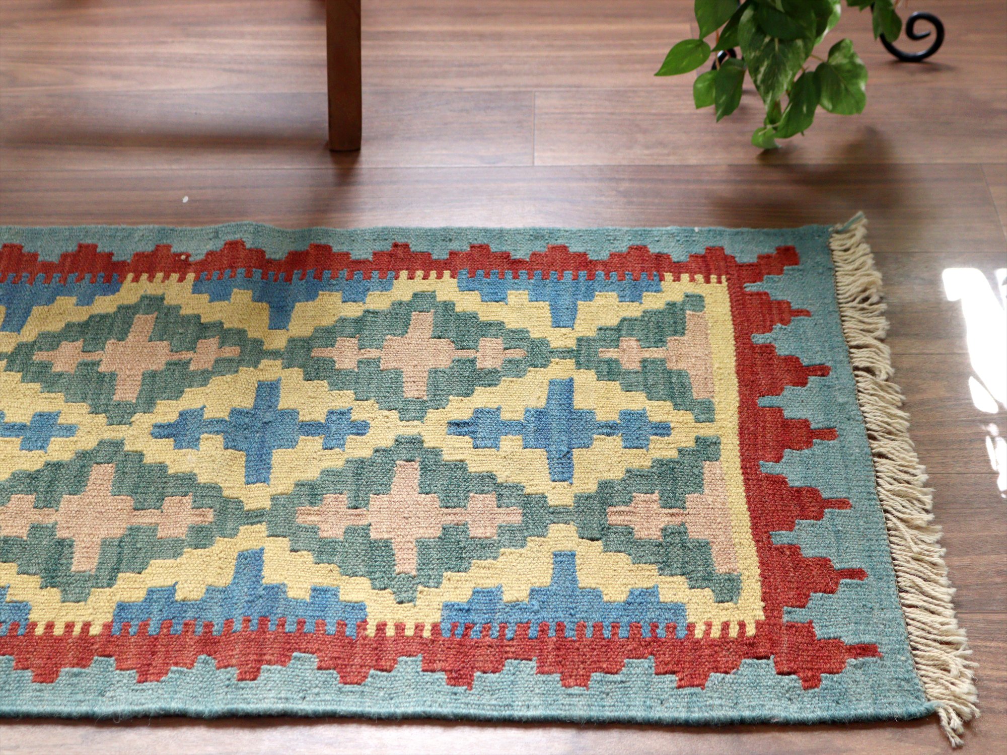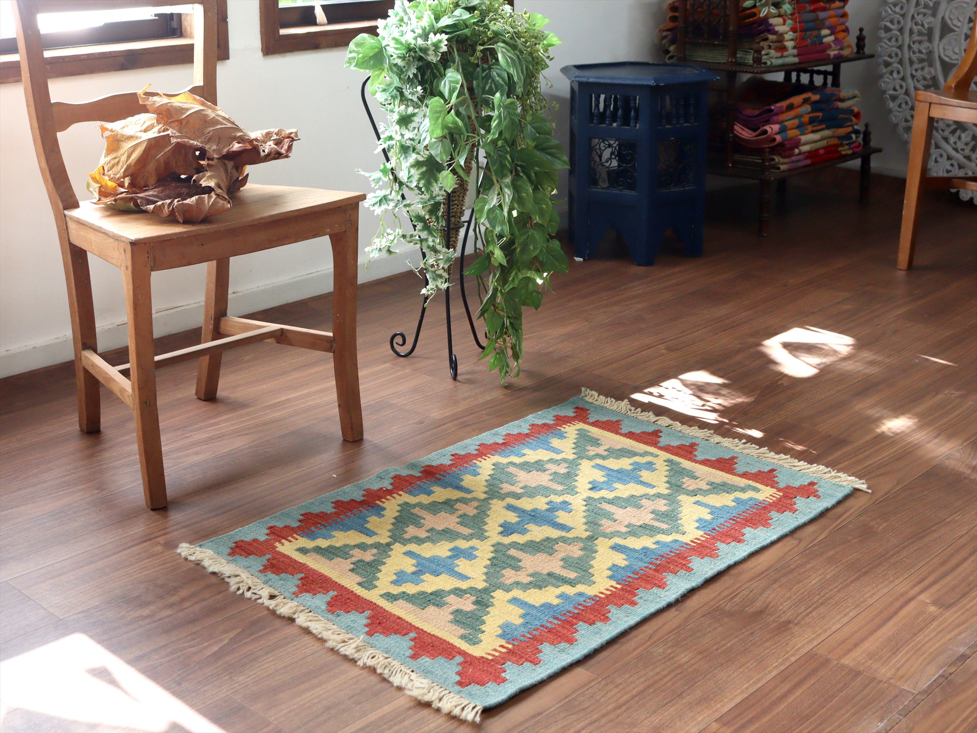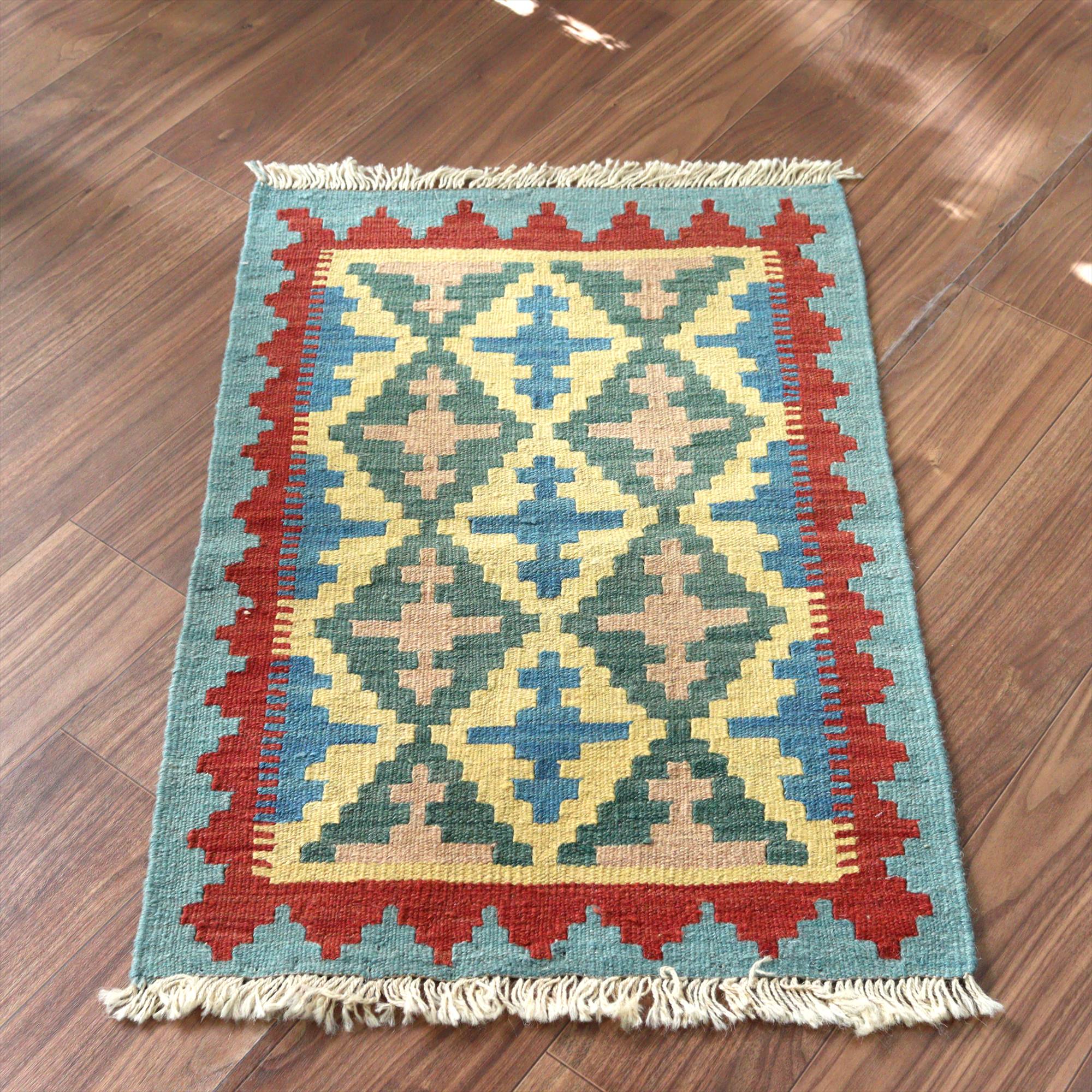 手織りキリム イラン シラーズ86×59cm カラフルな幾何学モチーフ