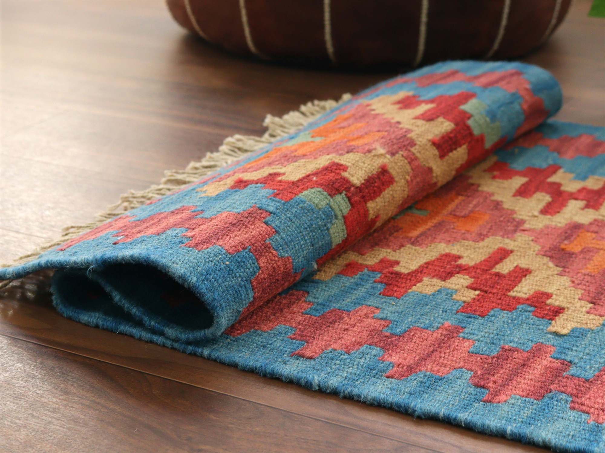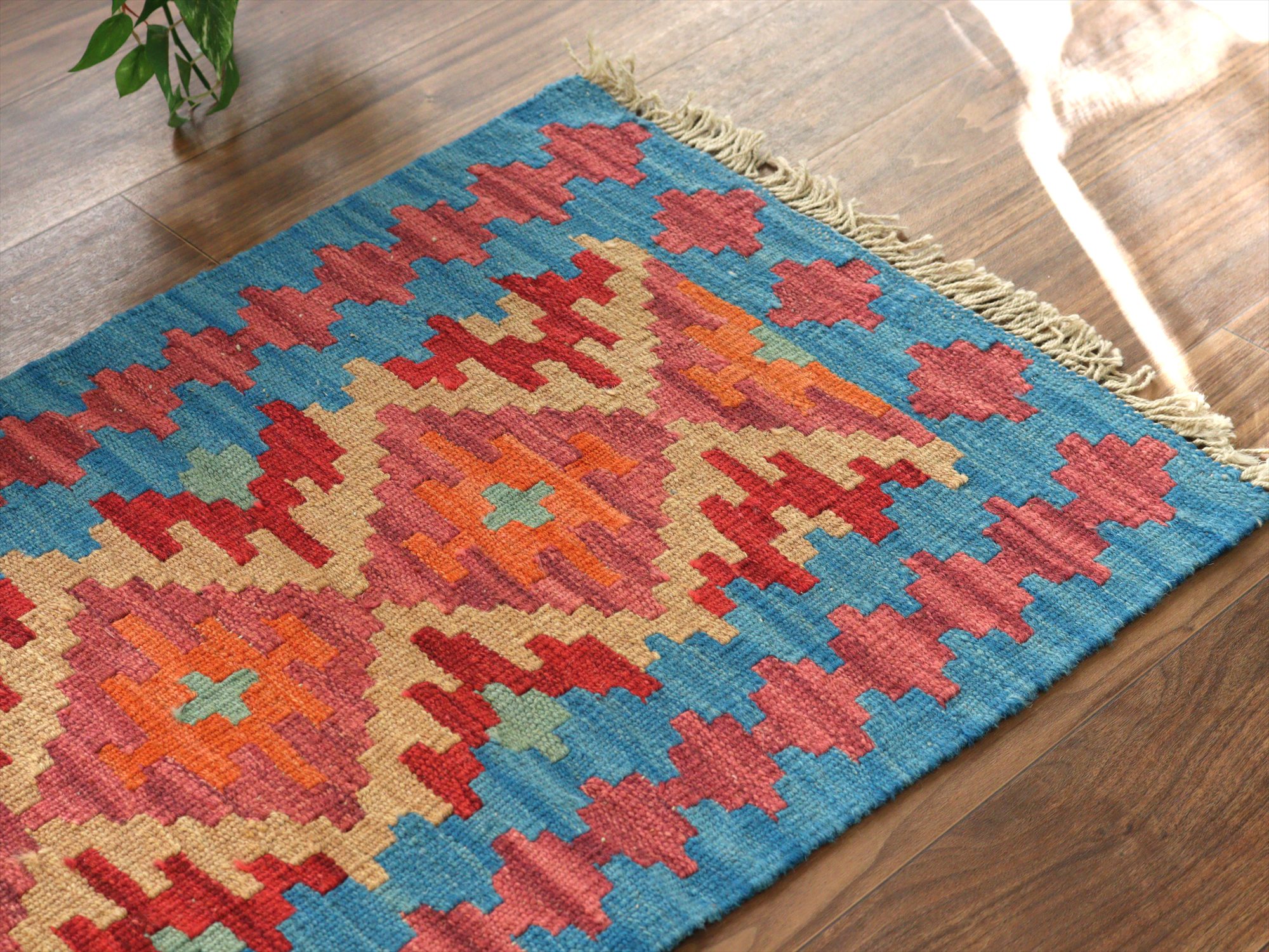 手織りキリム イラン シラーズ85×61cm カラフルな幾何学モチーフ
