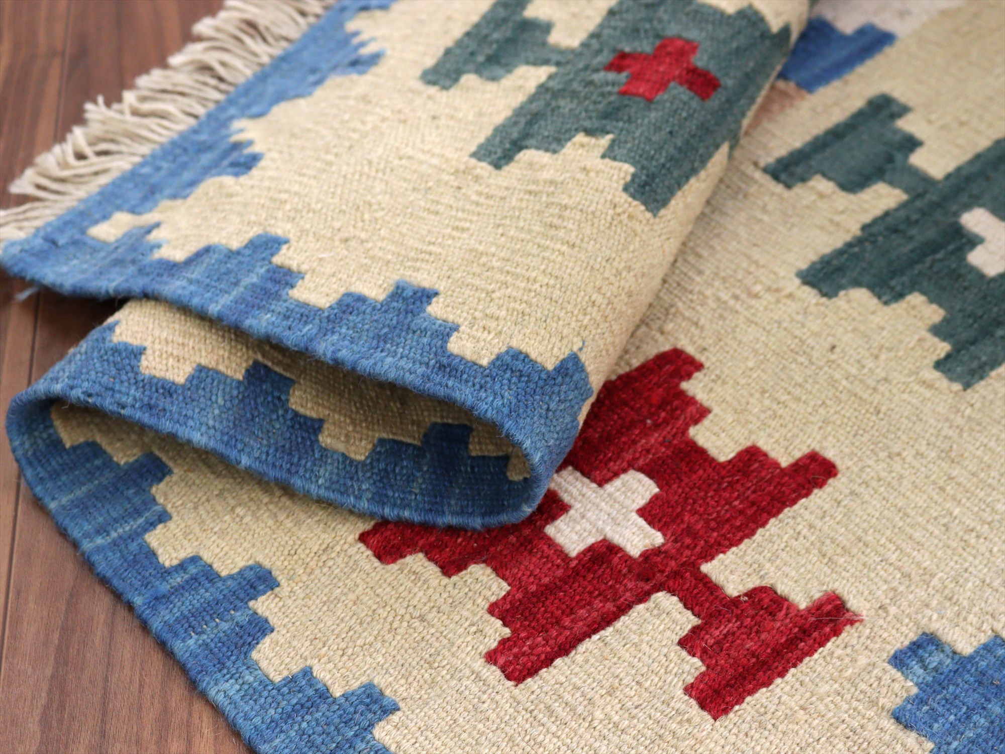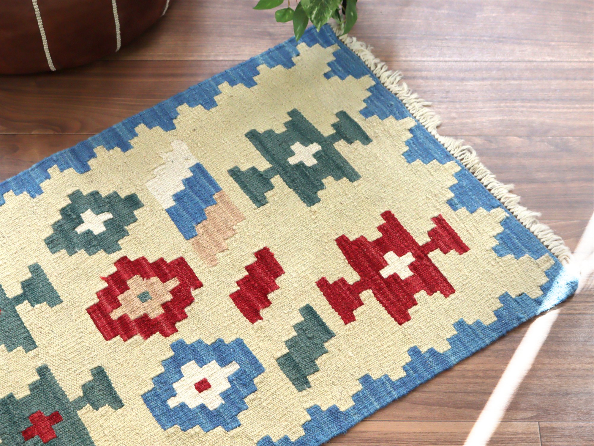 手織りキリム イラン シラーズ89×58cm カラフルな幾何学モチーフ