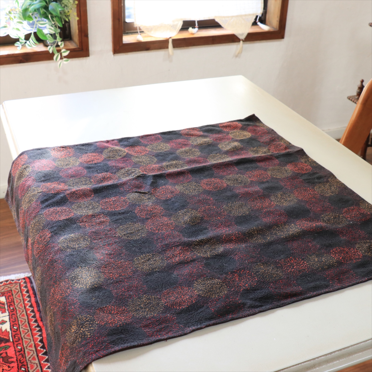 インド東部からバングラディシュにわたるベンガル地方で、古くから伝統的に作られてきた刺繍布。伝統的なものは、刺繍をするベースに古布が用いられ、ランニングステッチ(日本の刺し子に近い)で、シンプルなラインや時には小さなモチーフが表現されています。作られた布は、掛け布団(キルト加工がされる)、ショール、鏡カバー、その他生活の様々な道具として使われました。