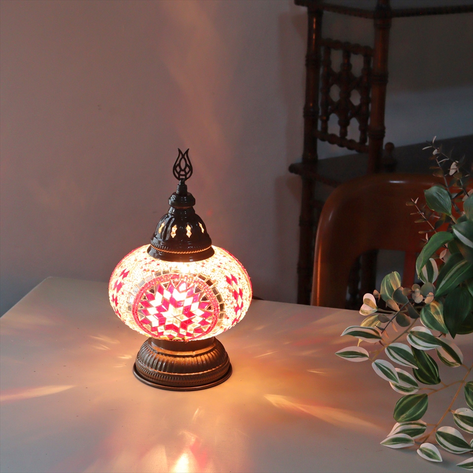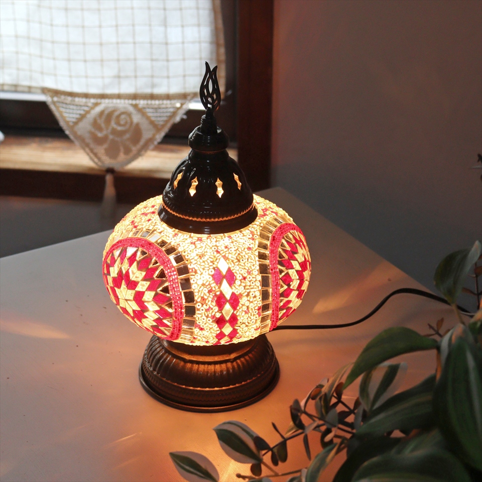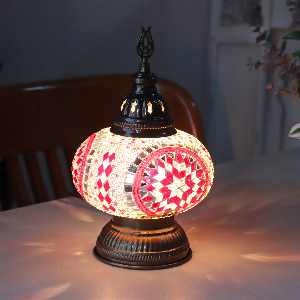 トルコランプ モザイクテーブルランプ 直径16cm 高さ27cm レッド/ホワイト