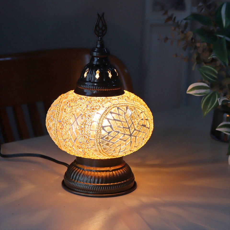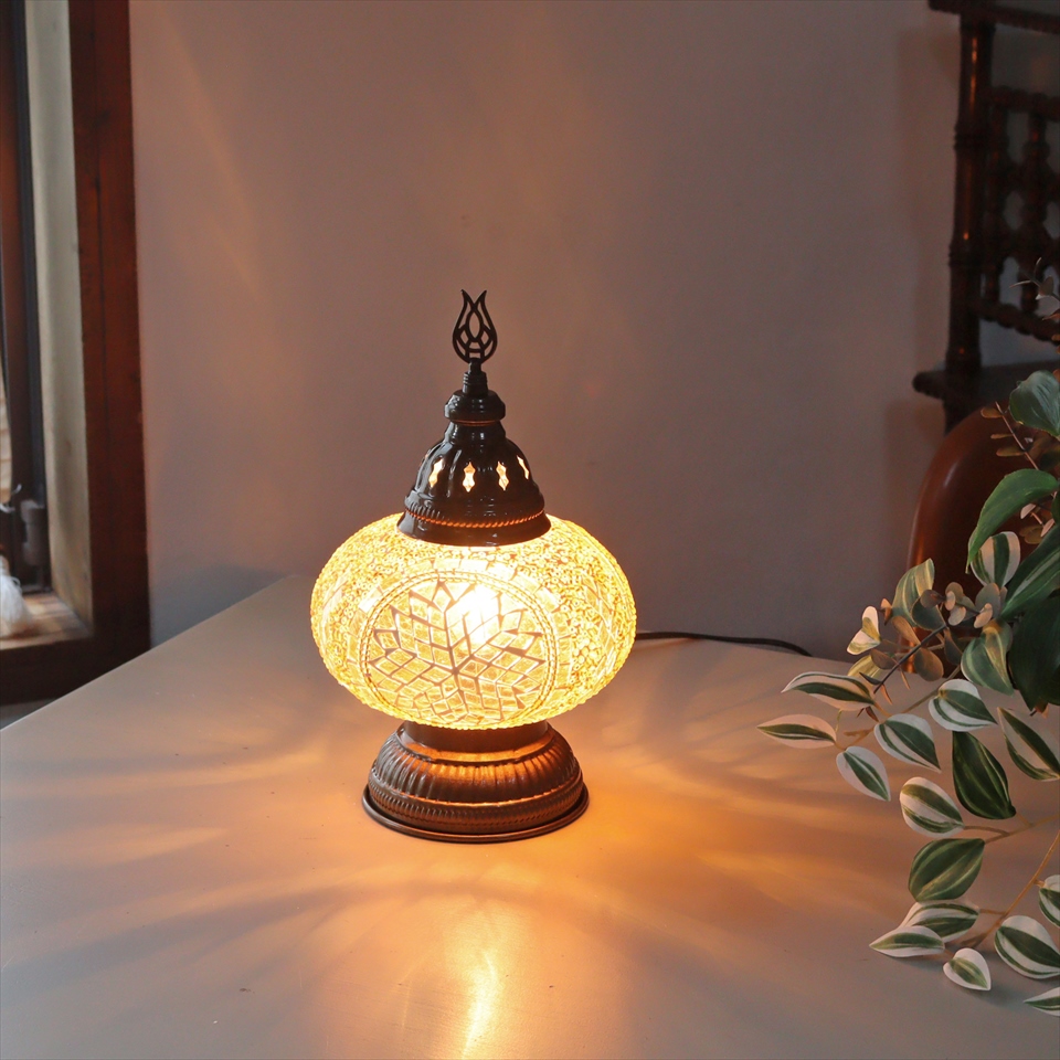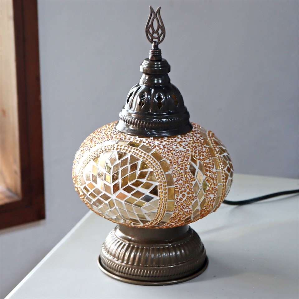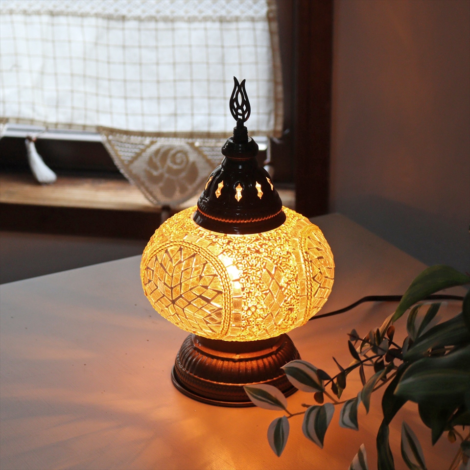 トルコランプ モザイクテーブルランプ 直径16cm 高さ27cm アンバーイエロー