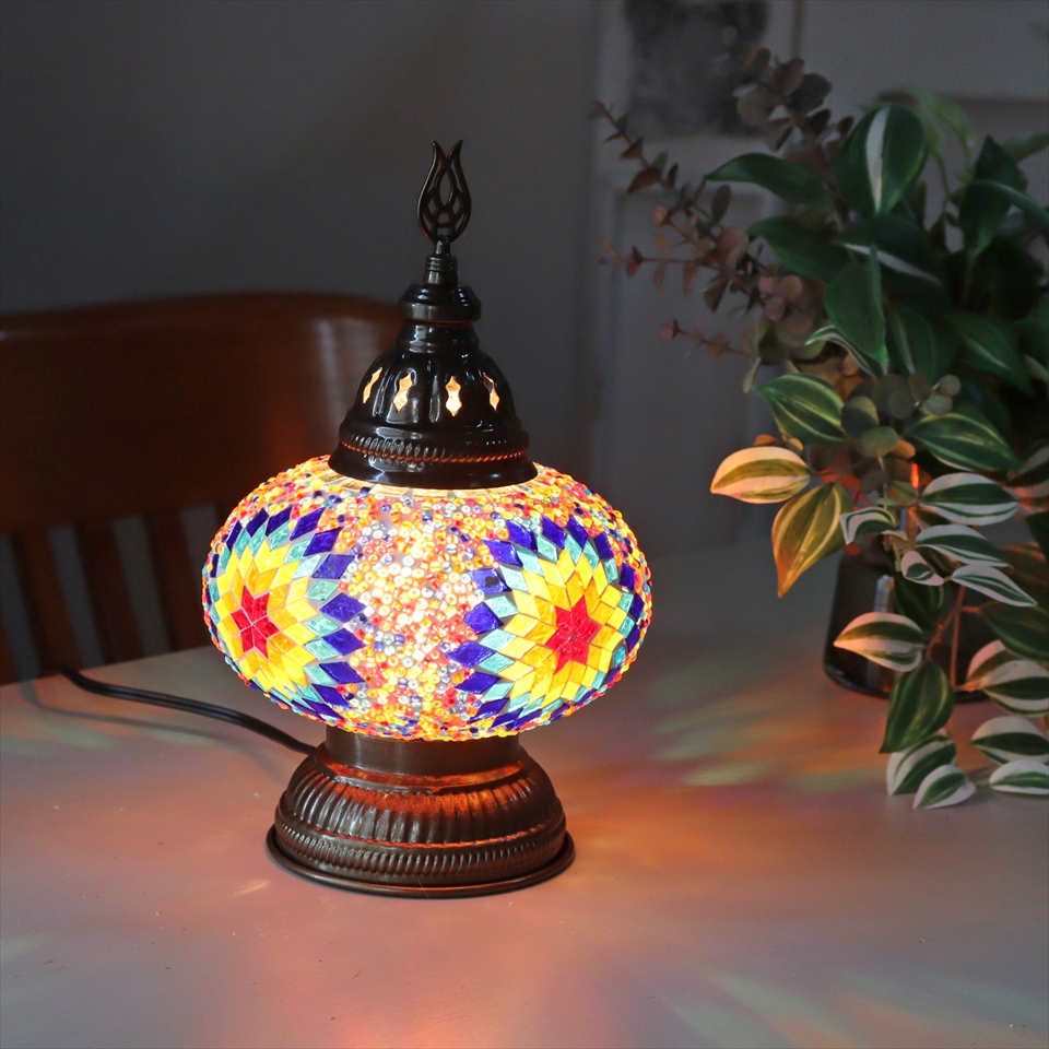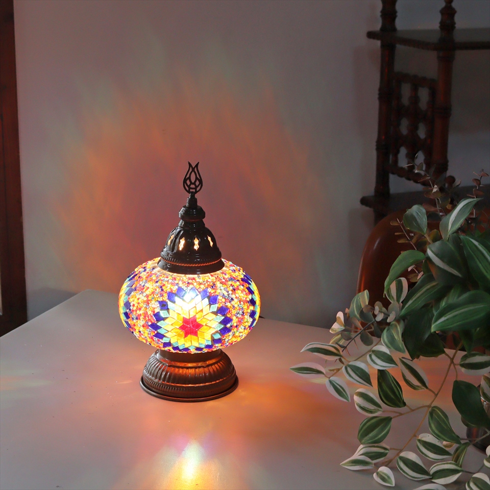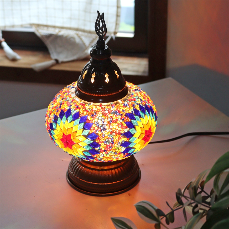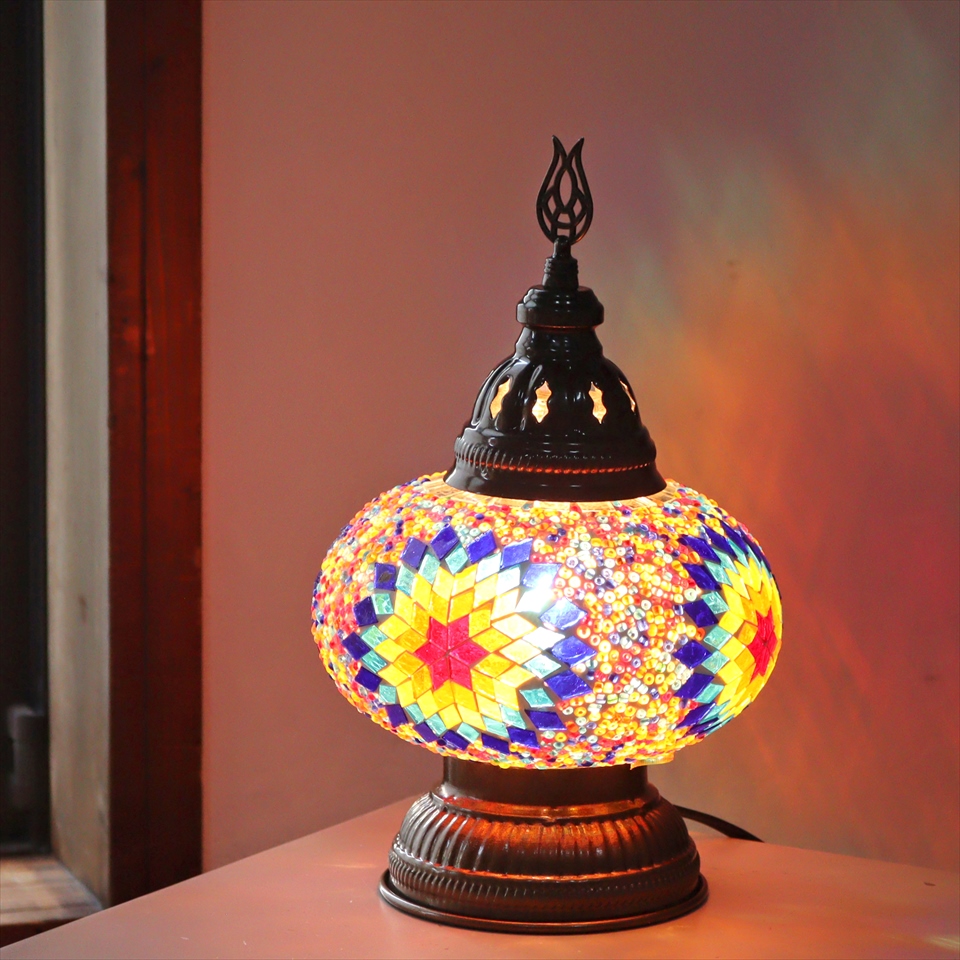 トルコランプ モザイクテーブルランプ 直径16cm 高さ27cm ミックスカラー