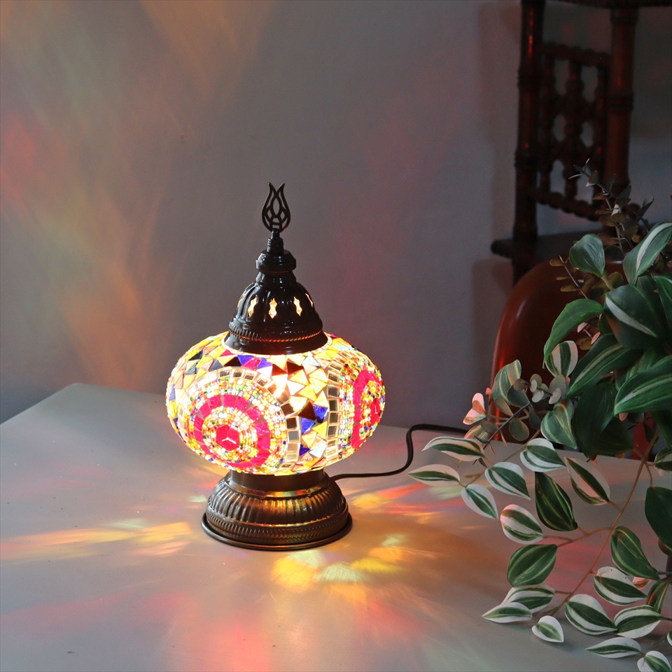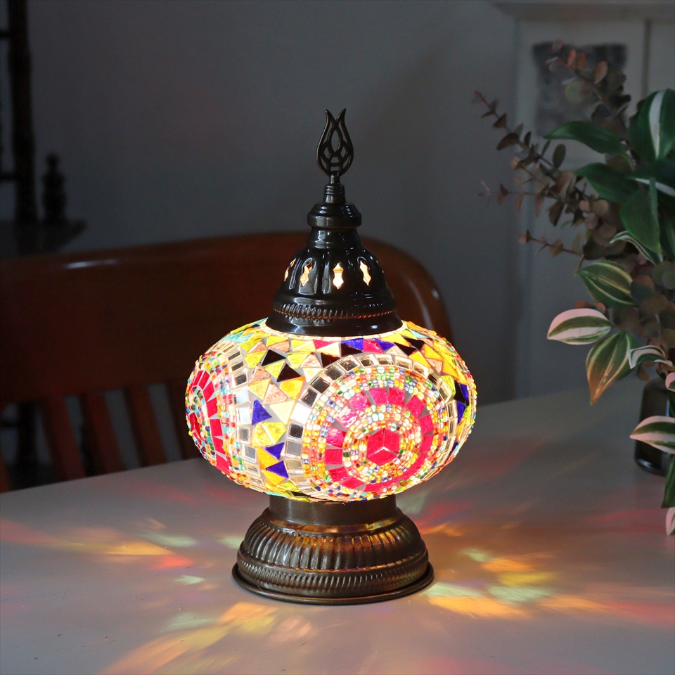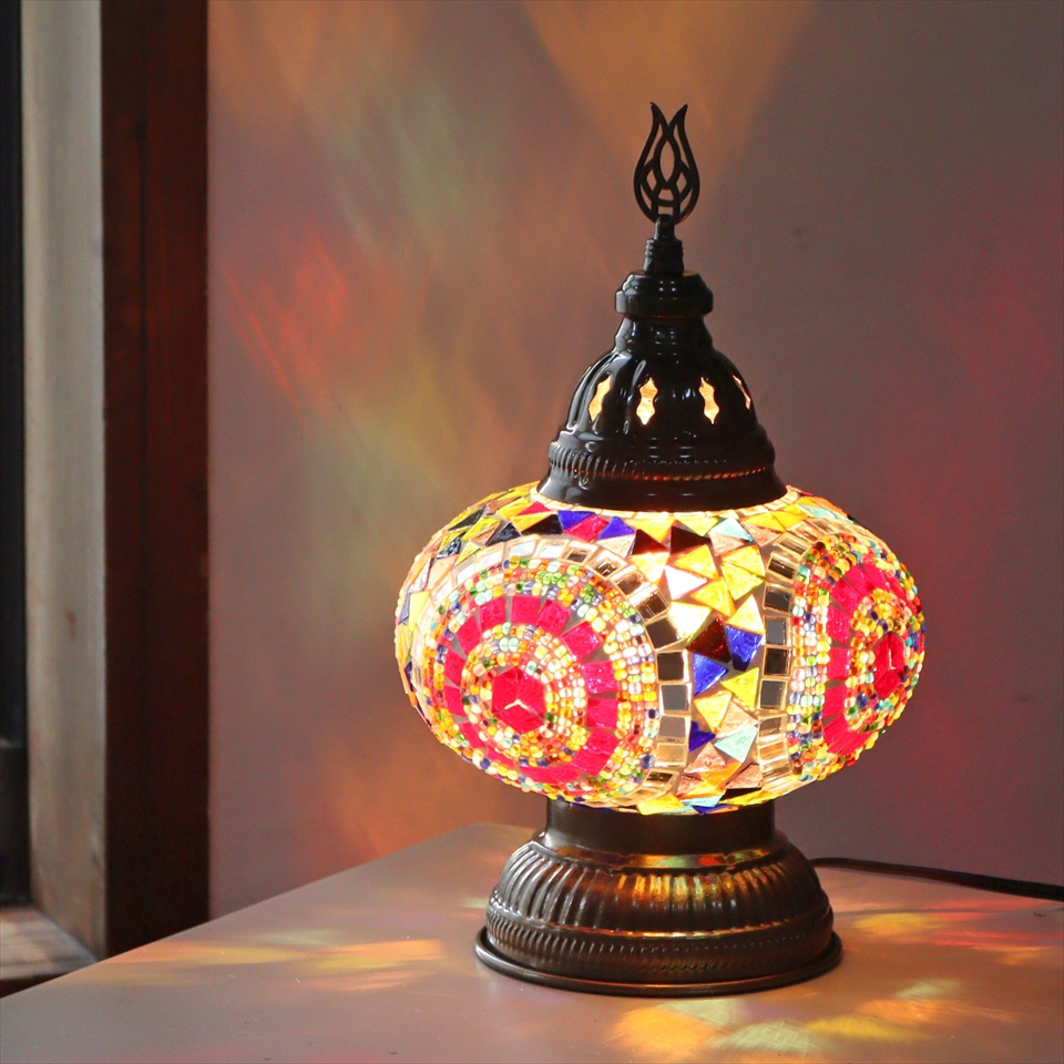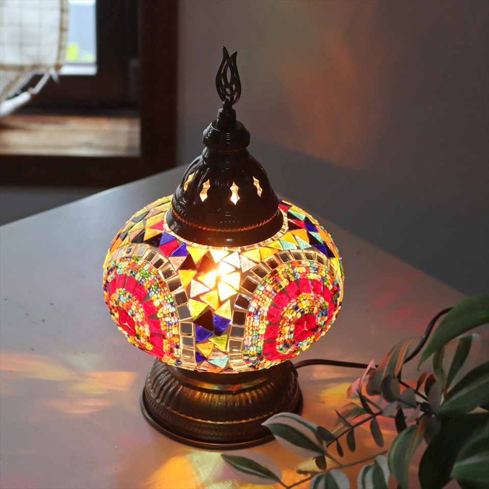 トルコランプ モザイクテーブルランプ 直径16cm 高さ27cm ミックスカラー