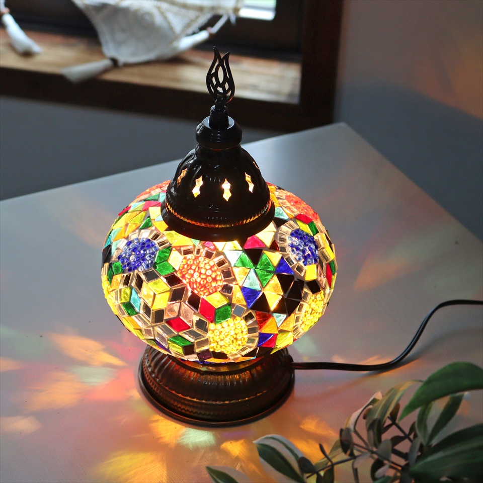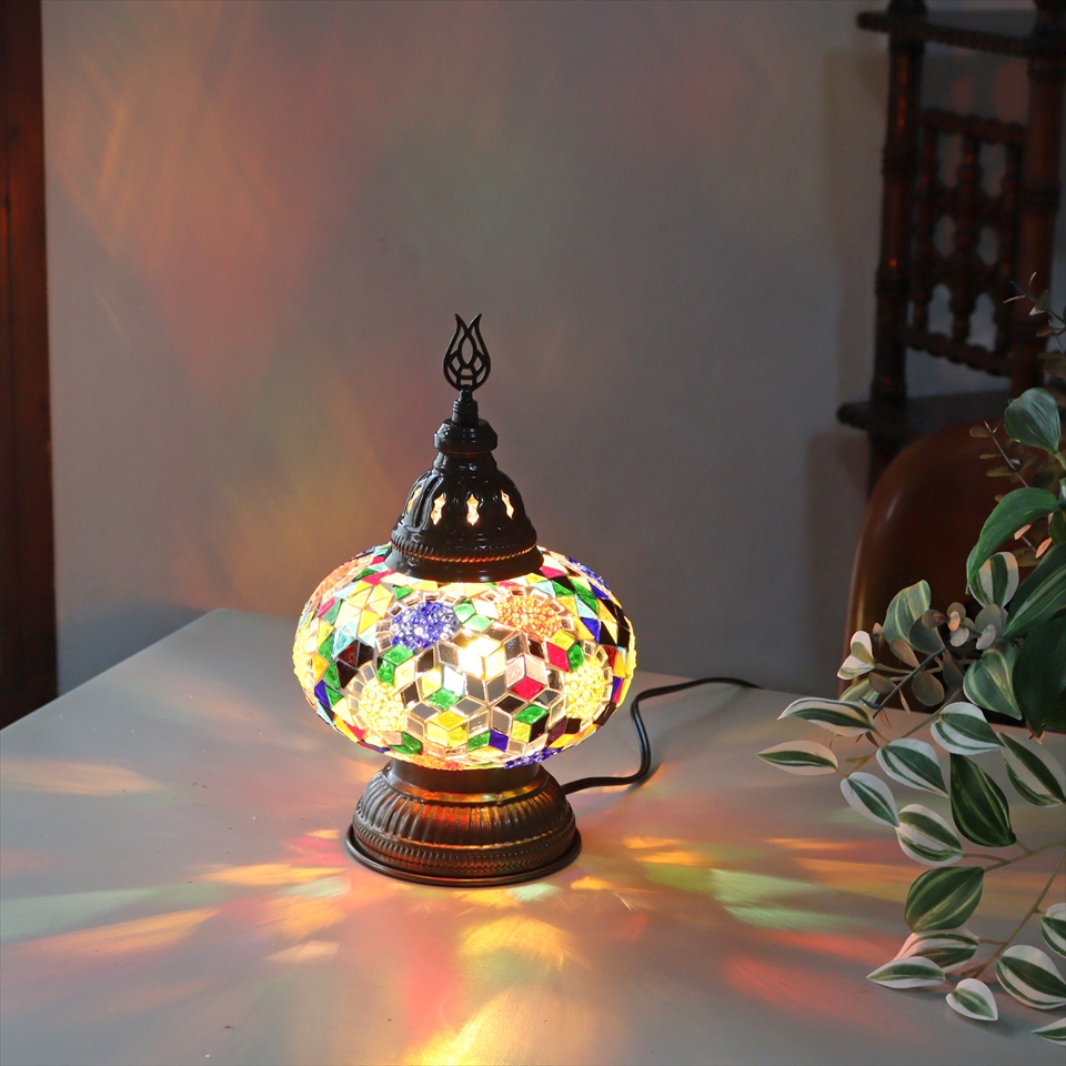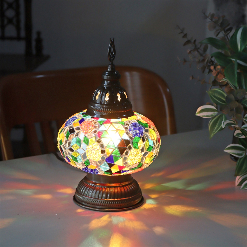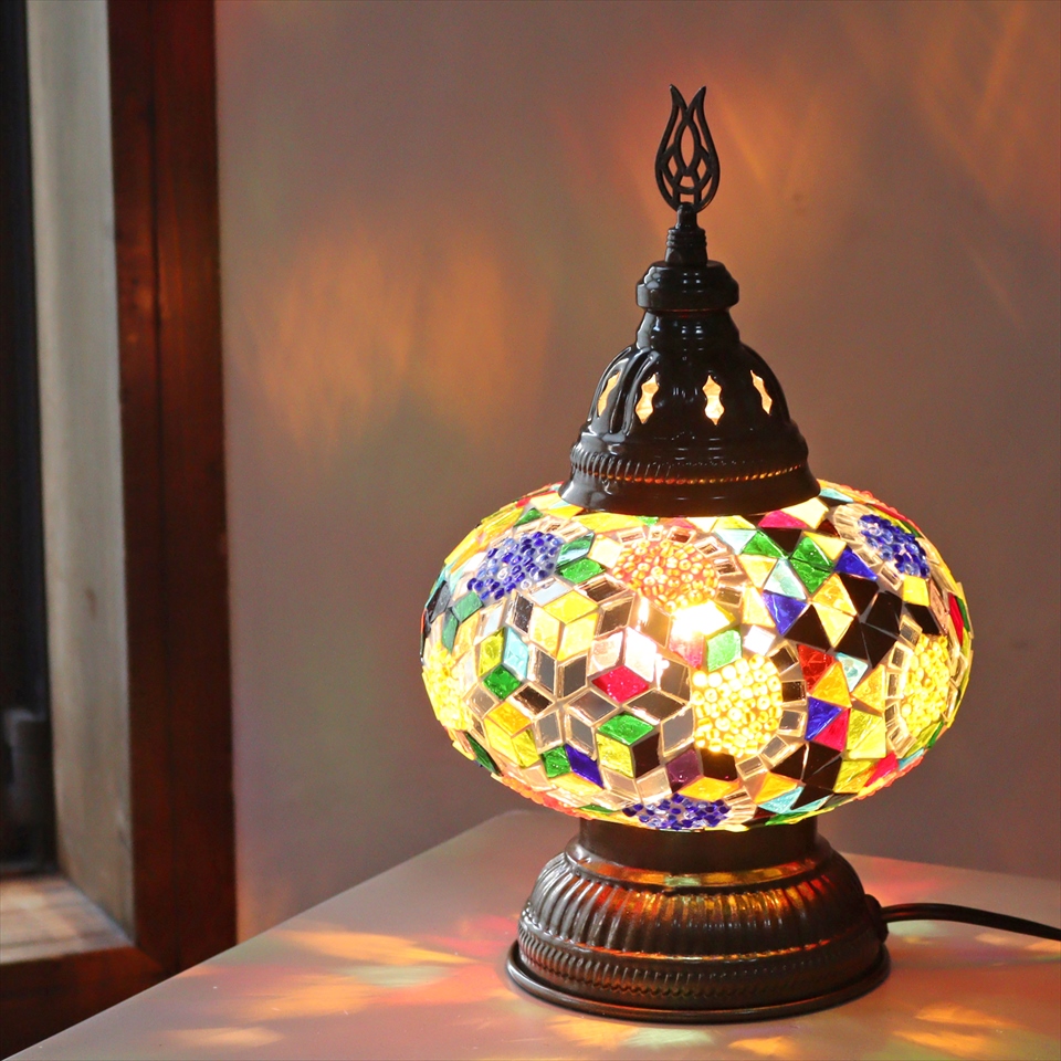トルコランプ モザイクテーブルランプ 直径16cm 高さ27cm ミックスカラー