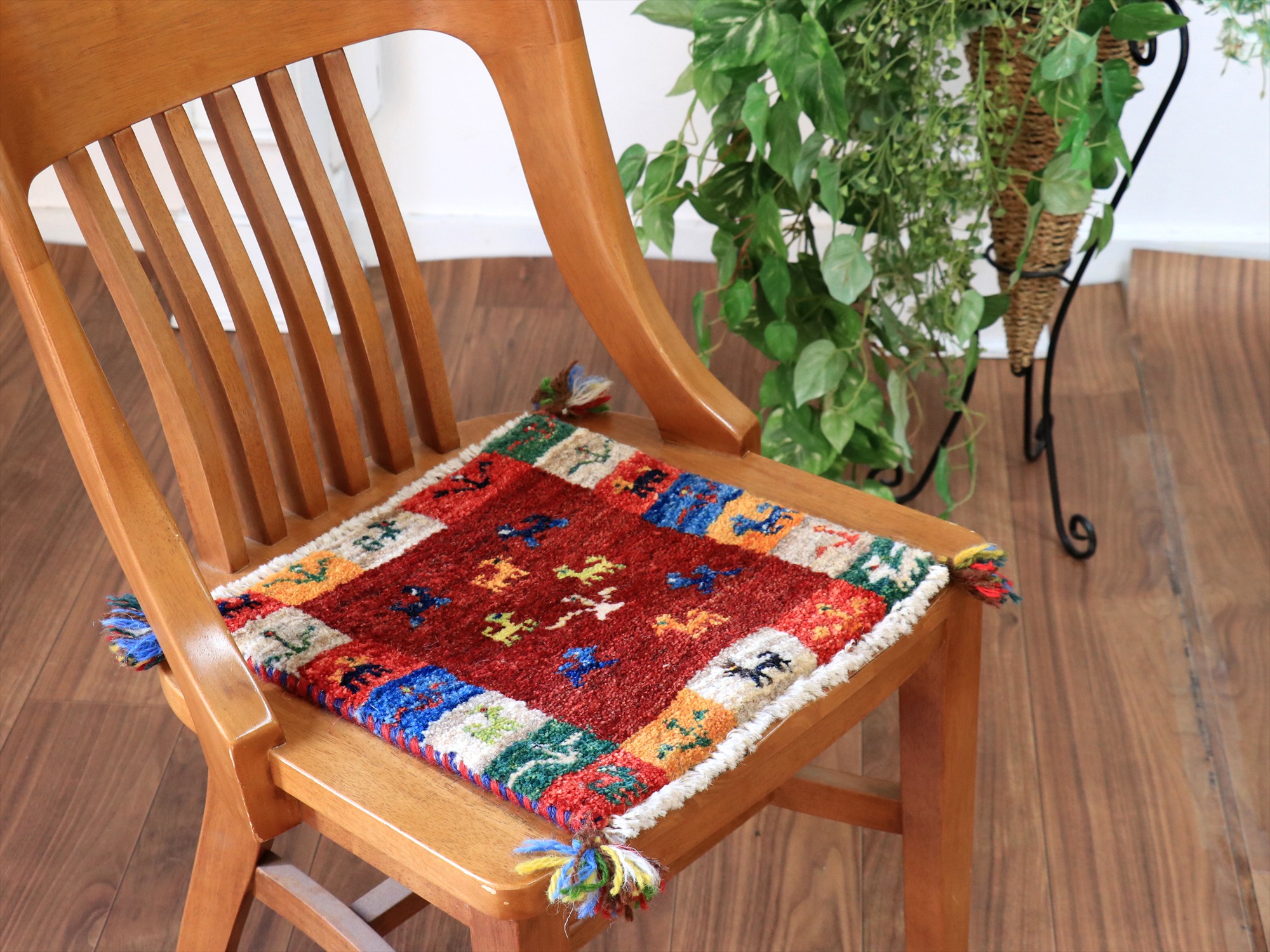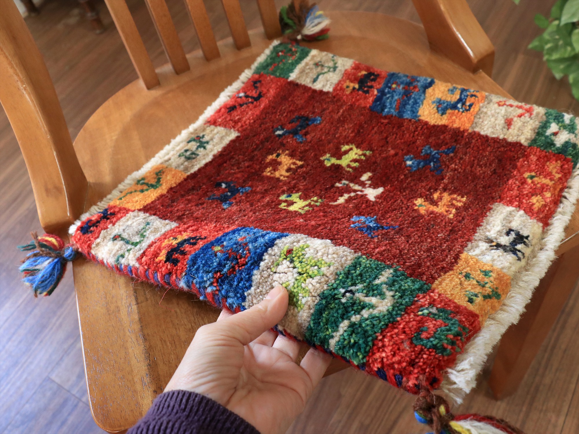 ふかふかした毛足(パイル)で、手触りが気持ちいい手織りのギャッベ。ミニサイズなので、座布団代わりに敷くのはもちろん、ダイニングチェアに敷いたり、絵画のように壁に貼ってデコレーションとしても楽しめます。手織りならではの一枚一枚違ったテイストをお楽しみください。