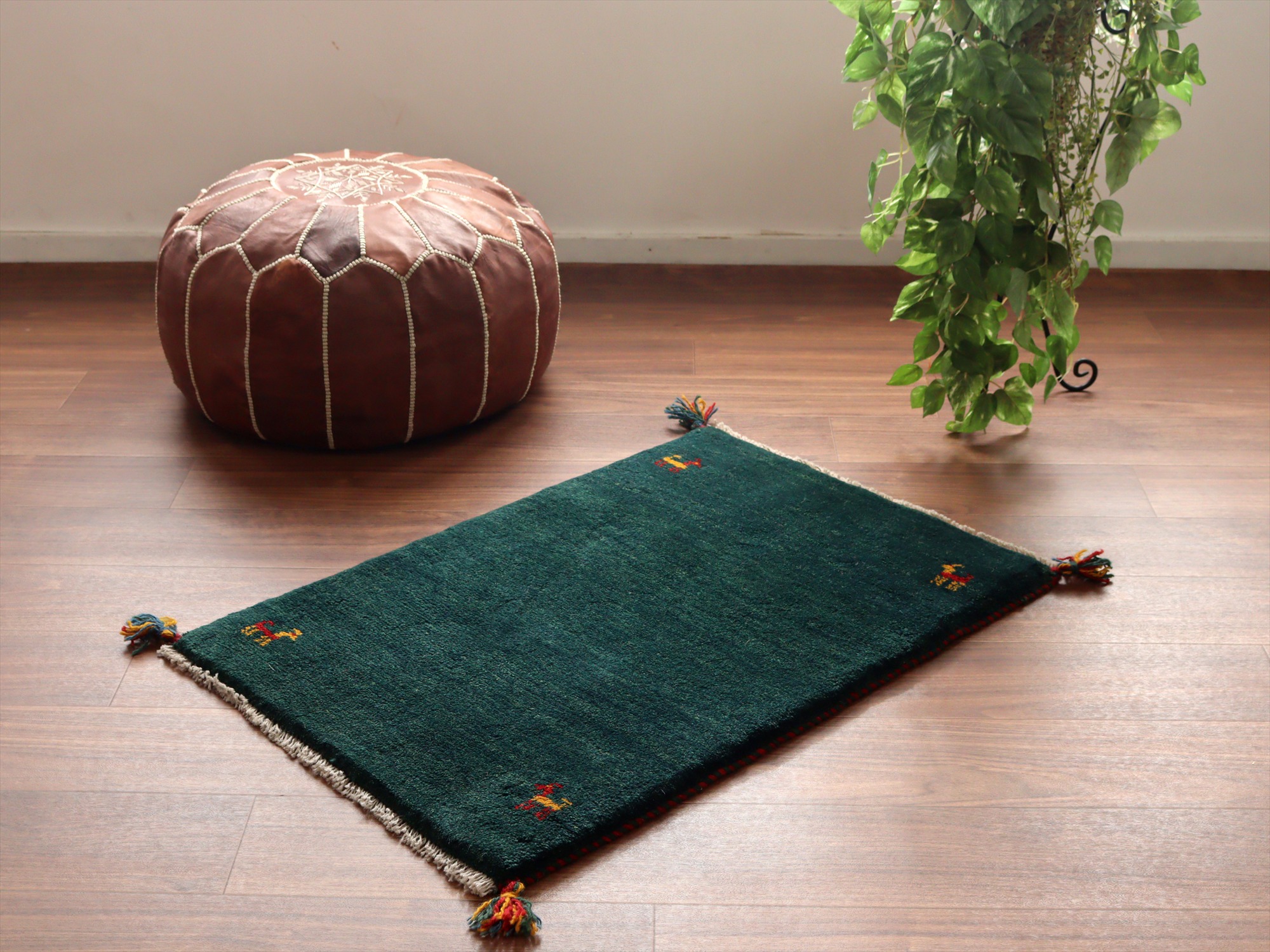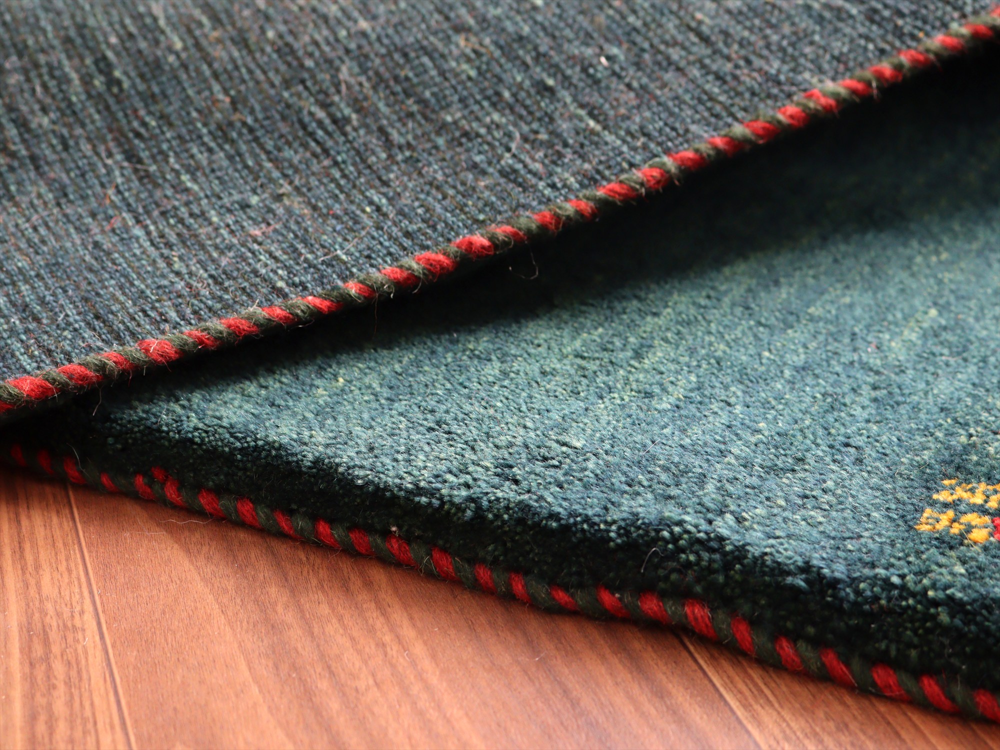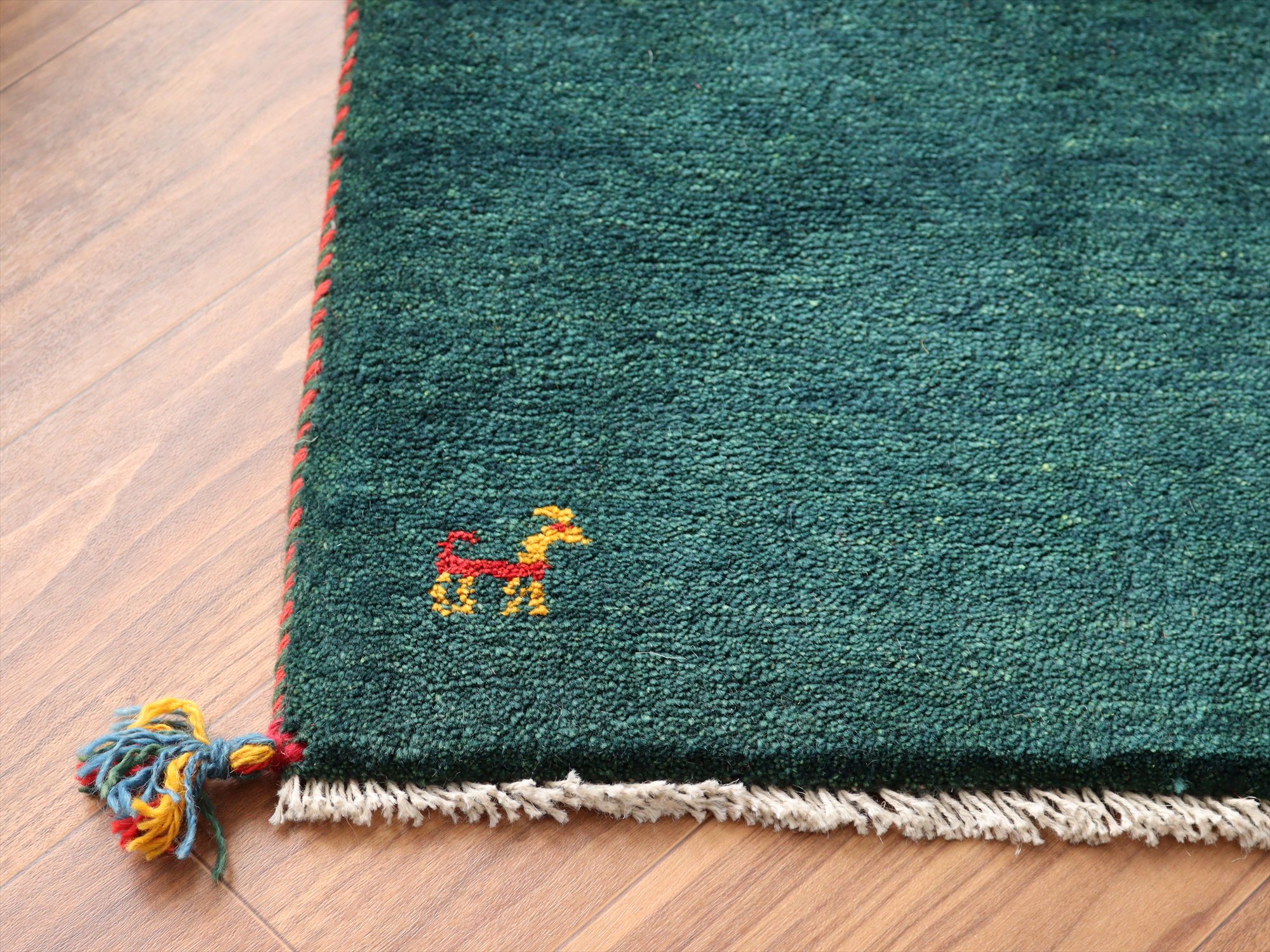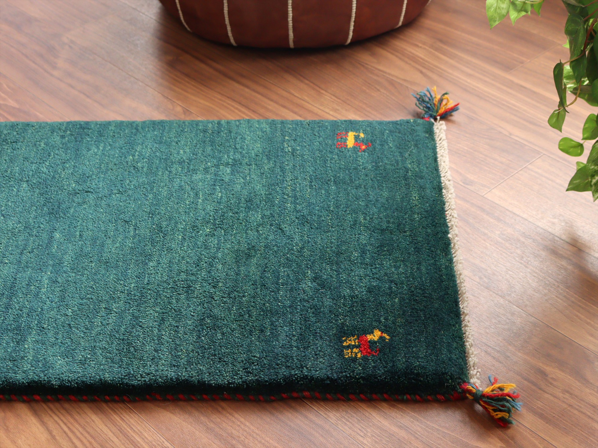 ギャッベ イラン産手織りラグ 86x60cm グリーン シンプルモチーフ