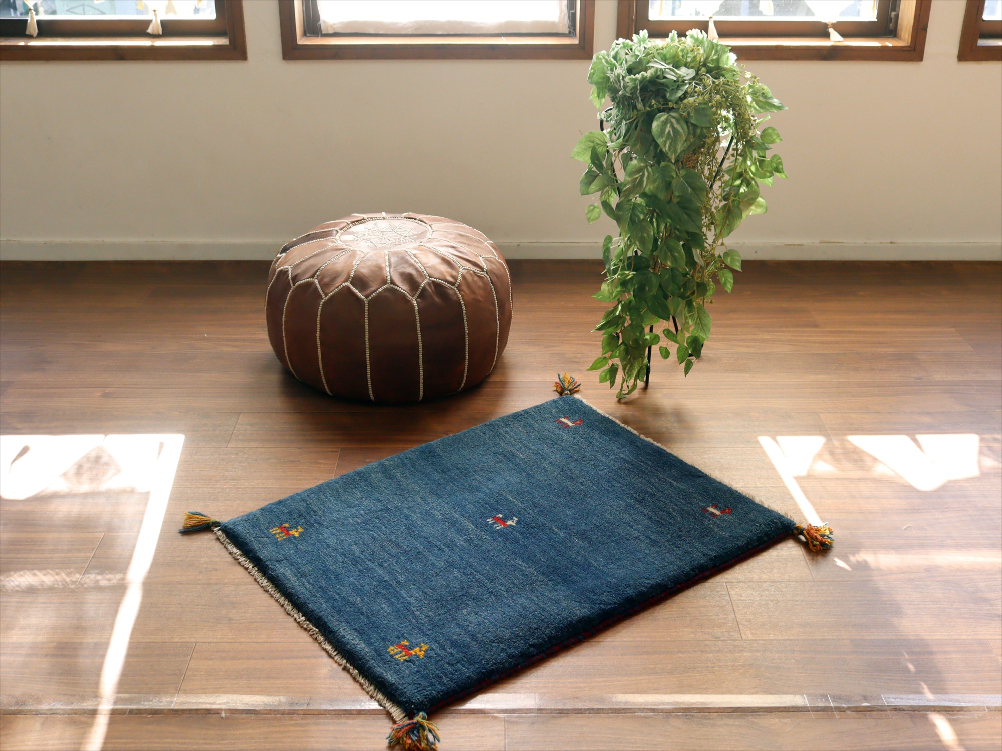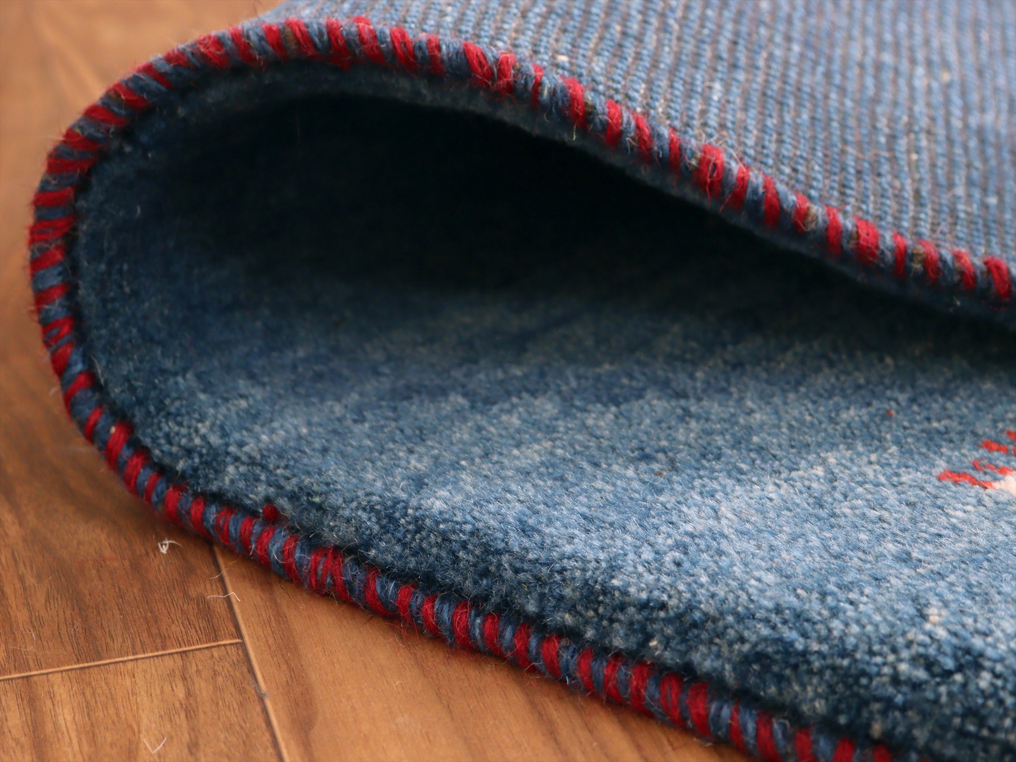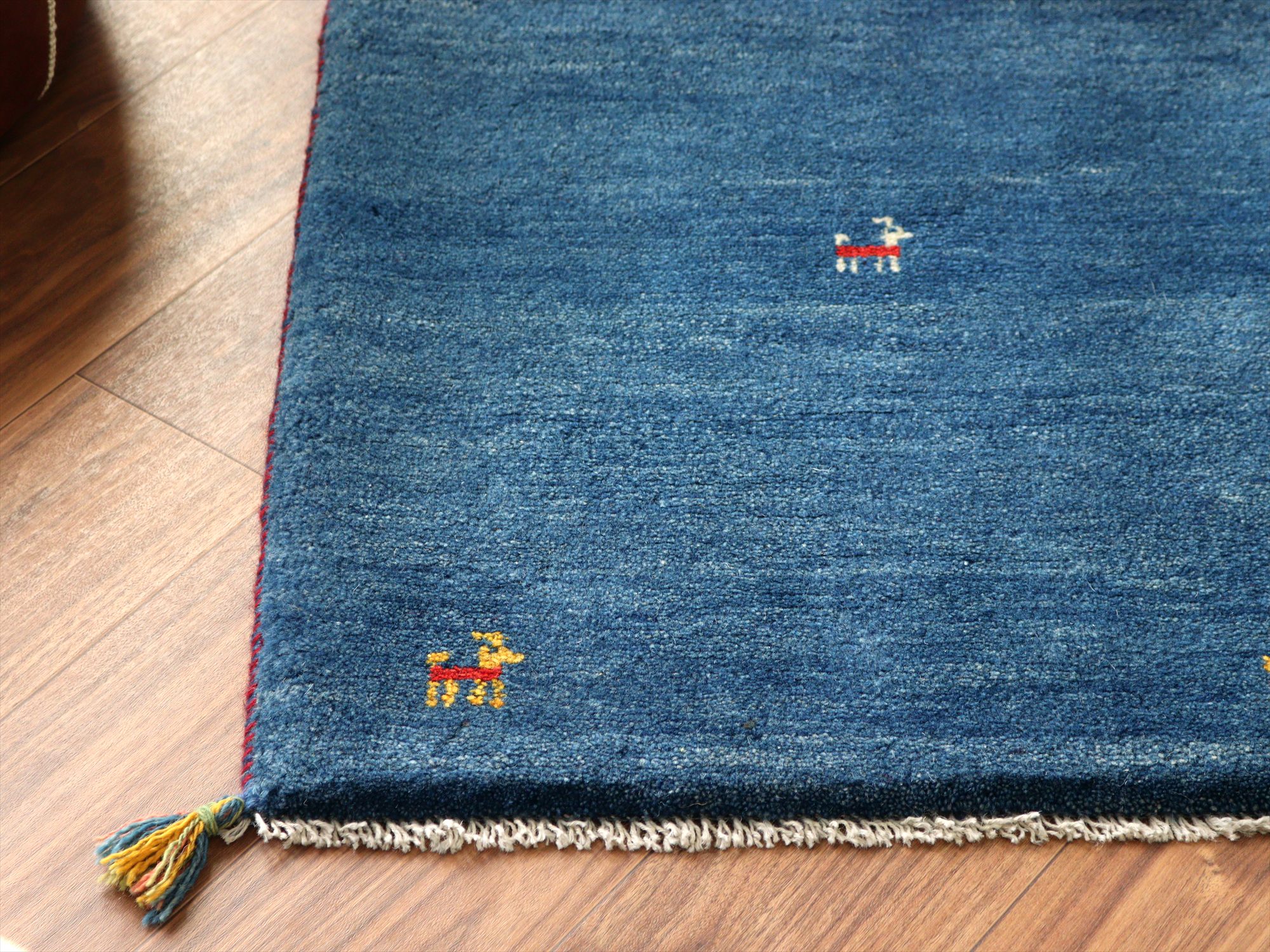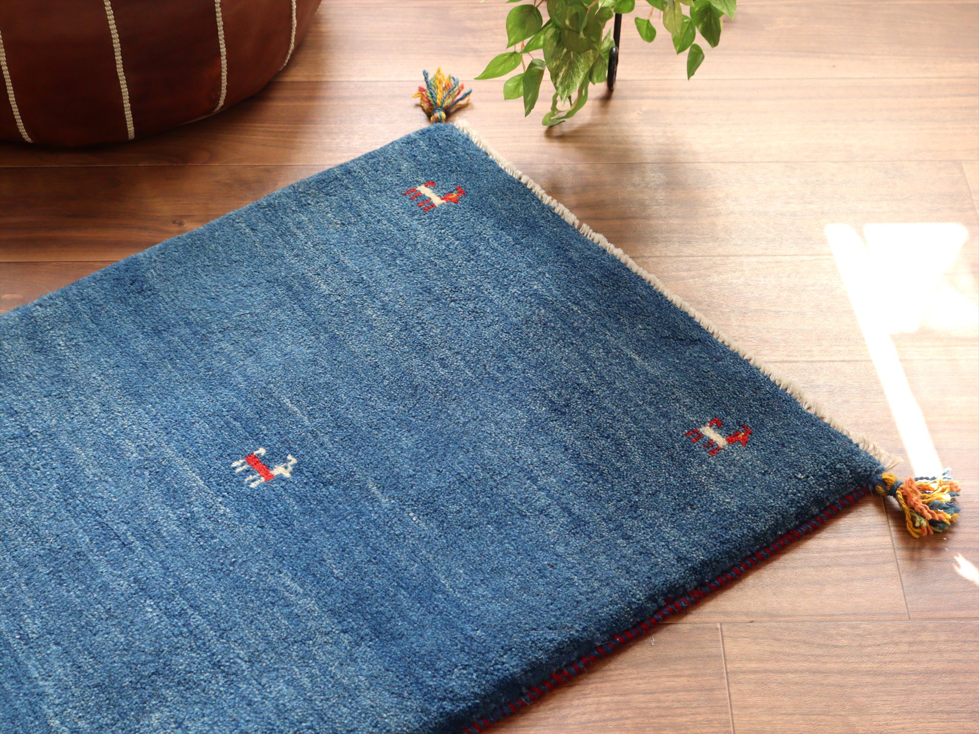 ギャッベ イラン産手織りラグ 85x64cm シンプルモチーフ ブルー