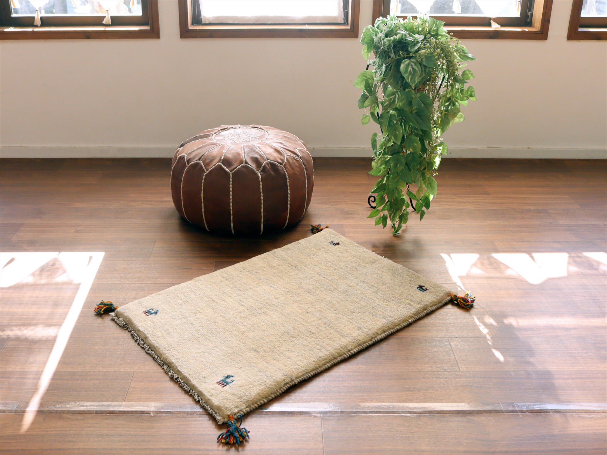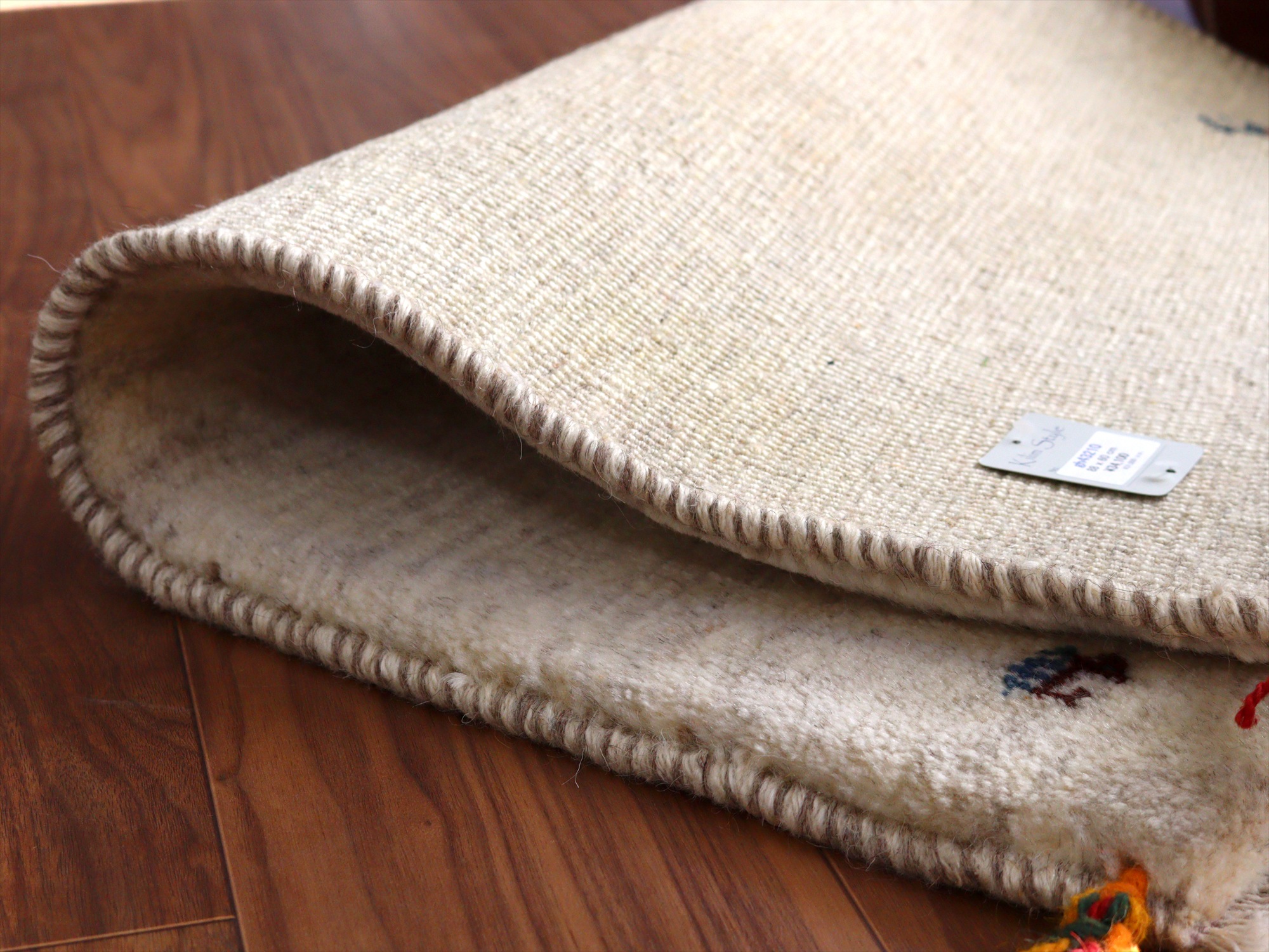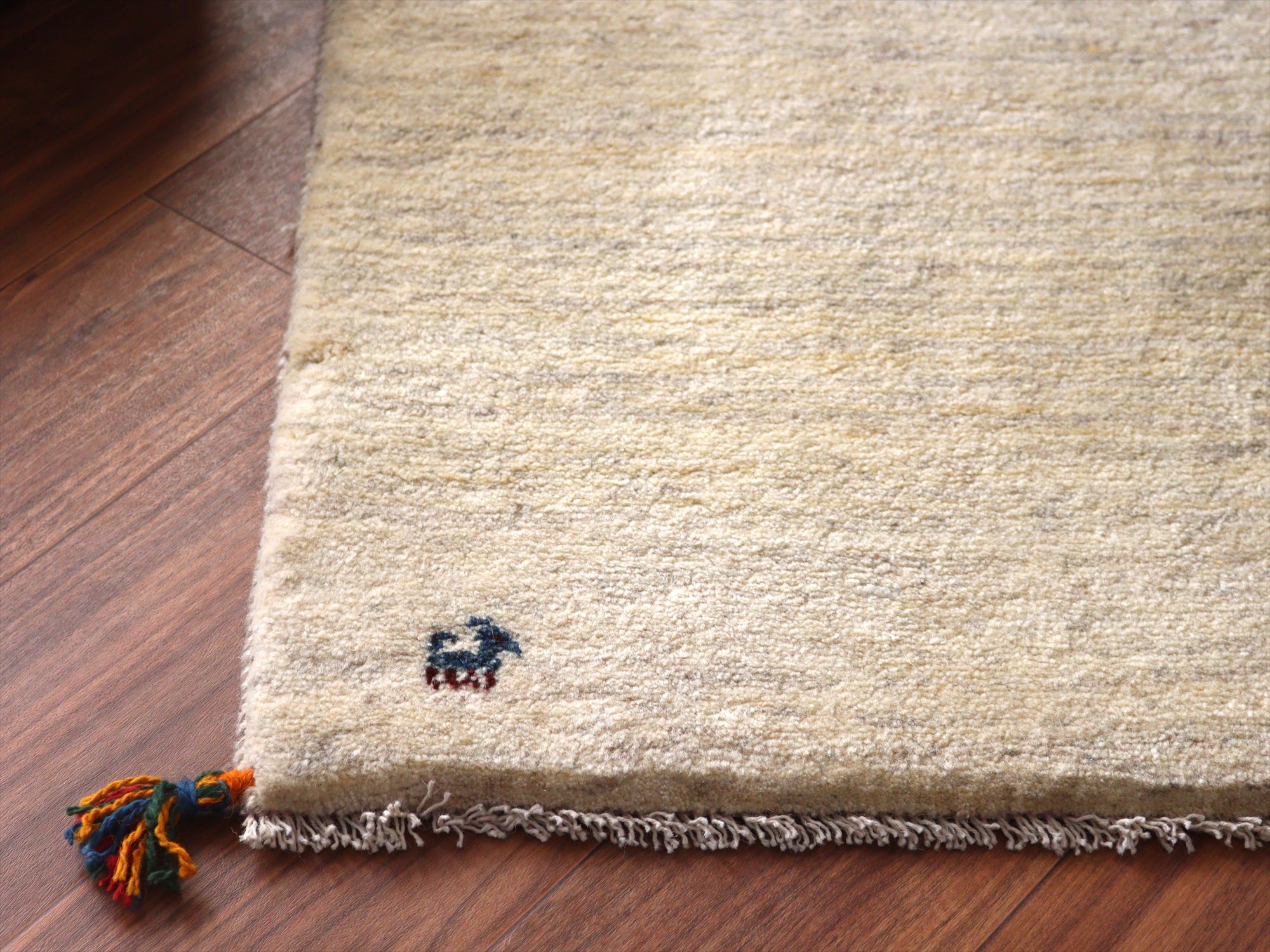 ギャッベ イラン産手織りラグ 88x60cm シンプルモチーフ アイボリー