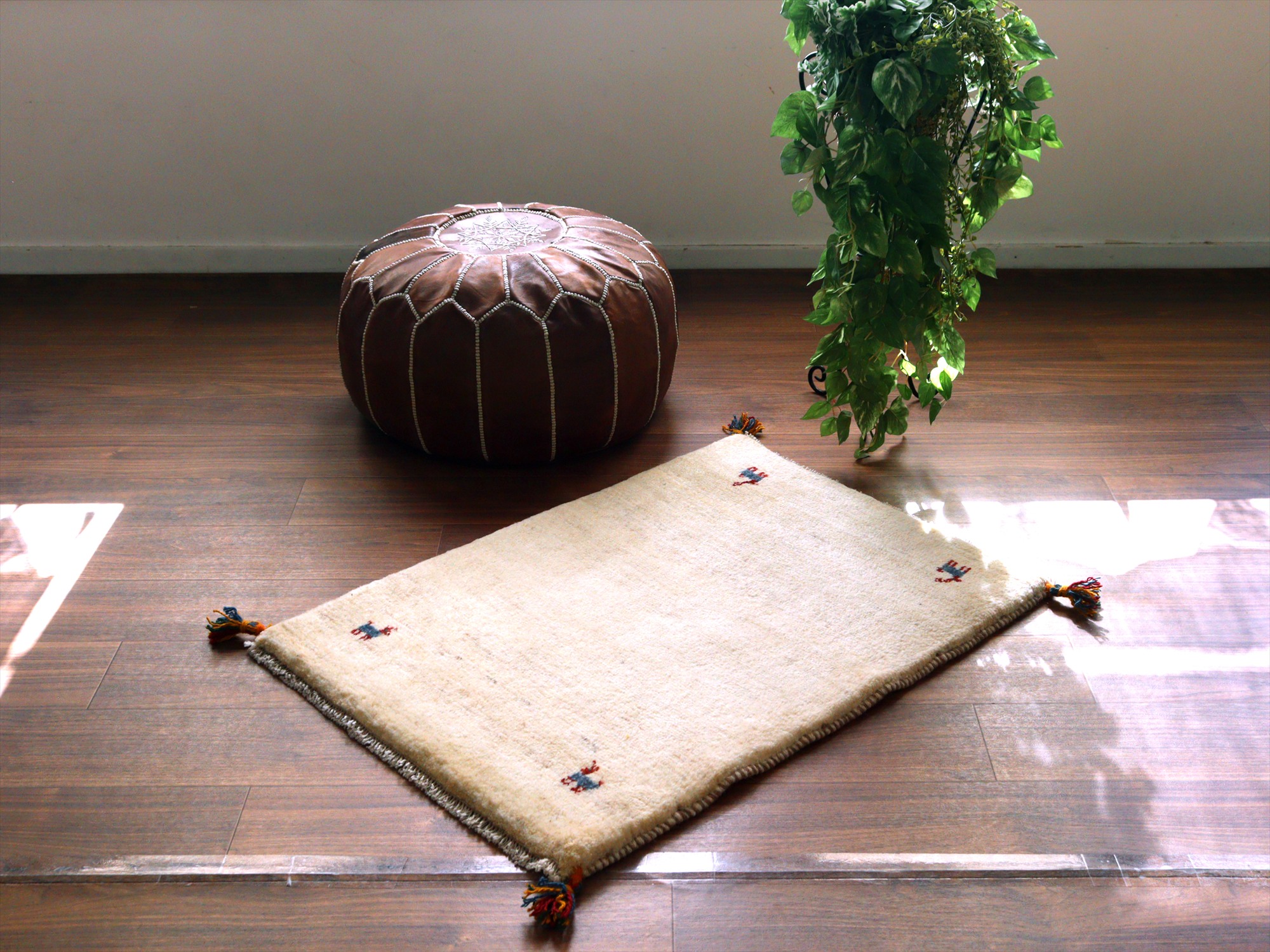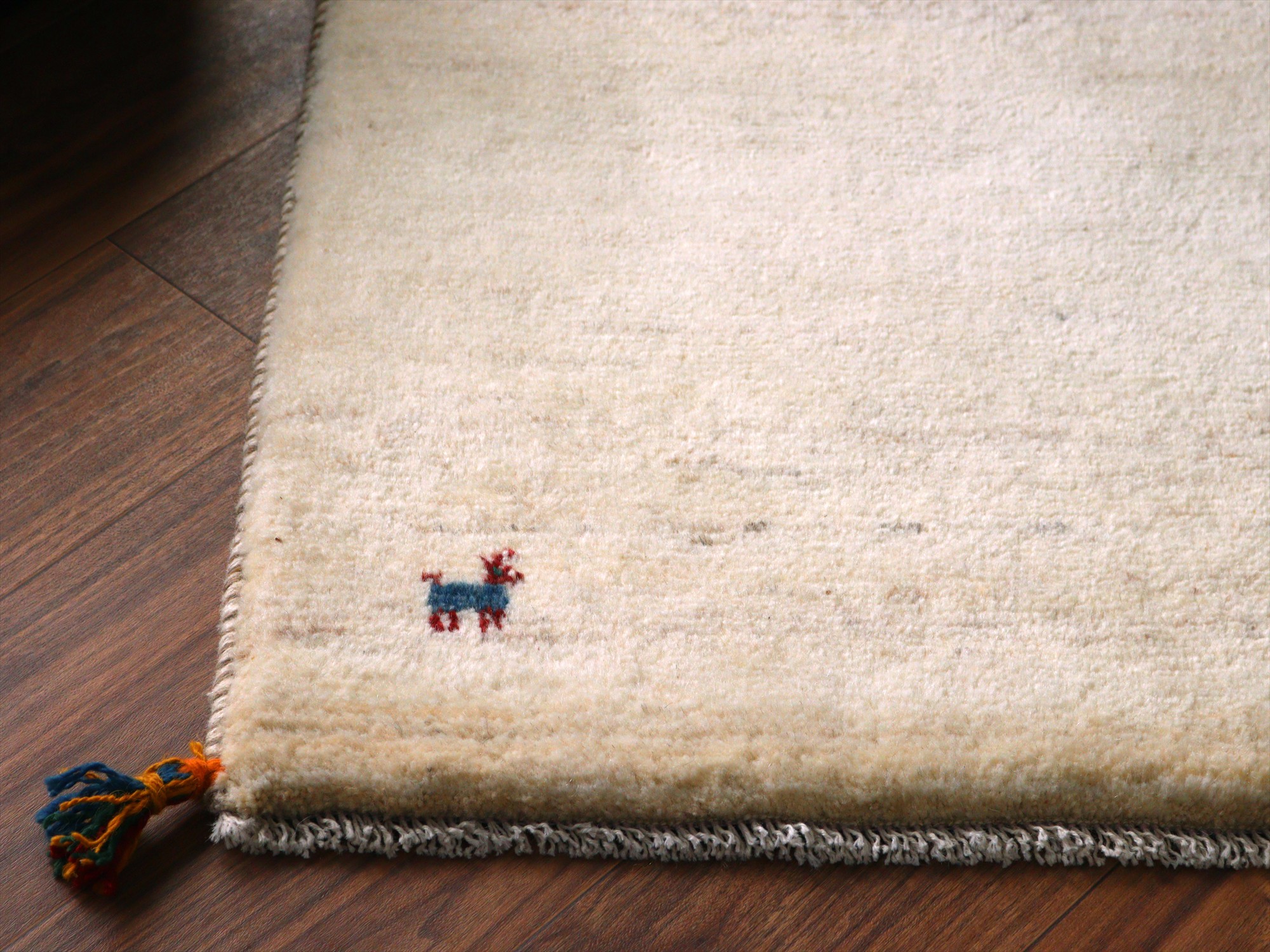ギャッベ イラン産手織りラグ 88x66cm シンプルモチーフ アイボリー