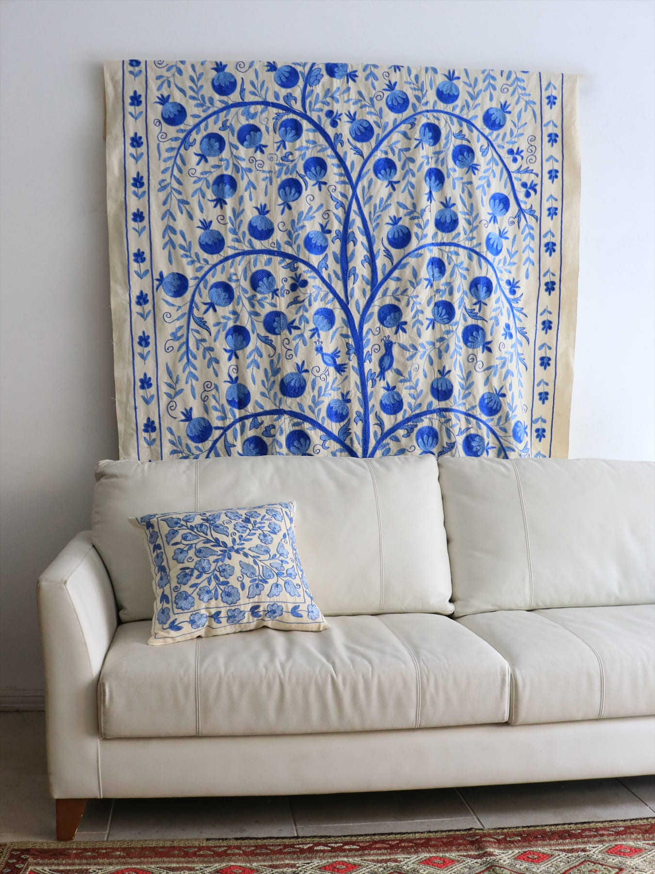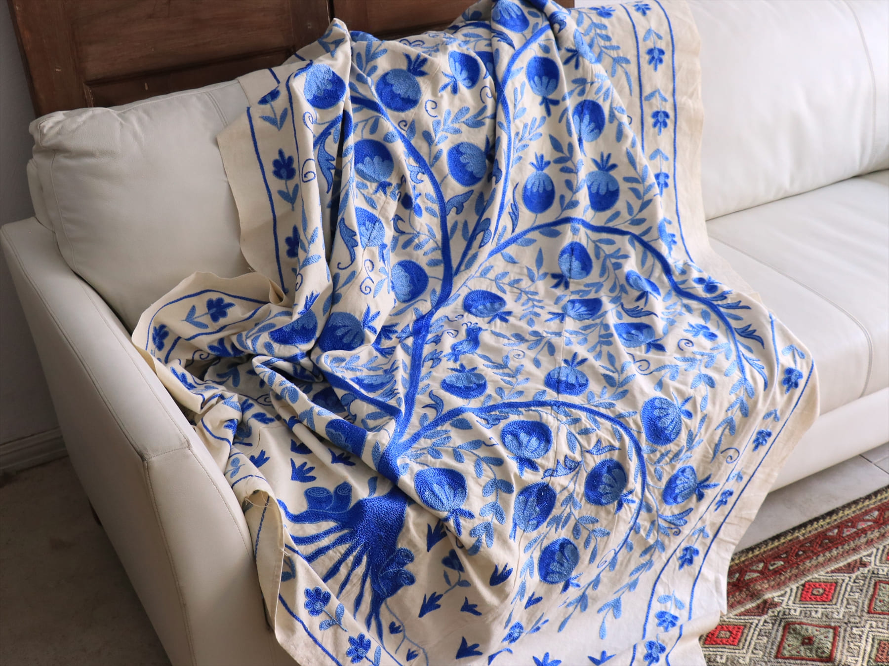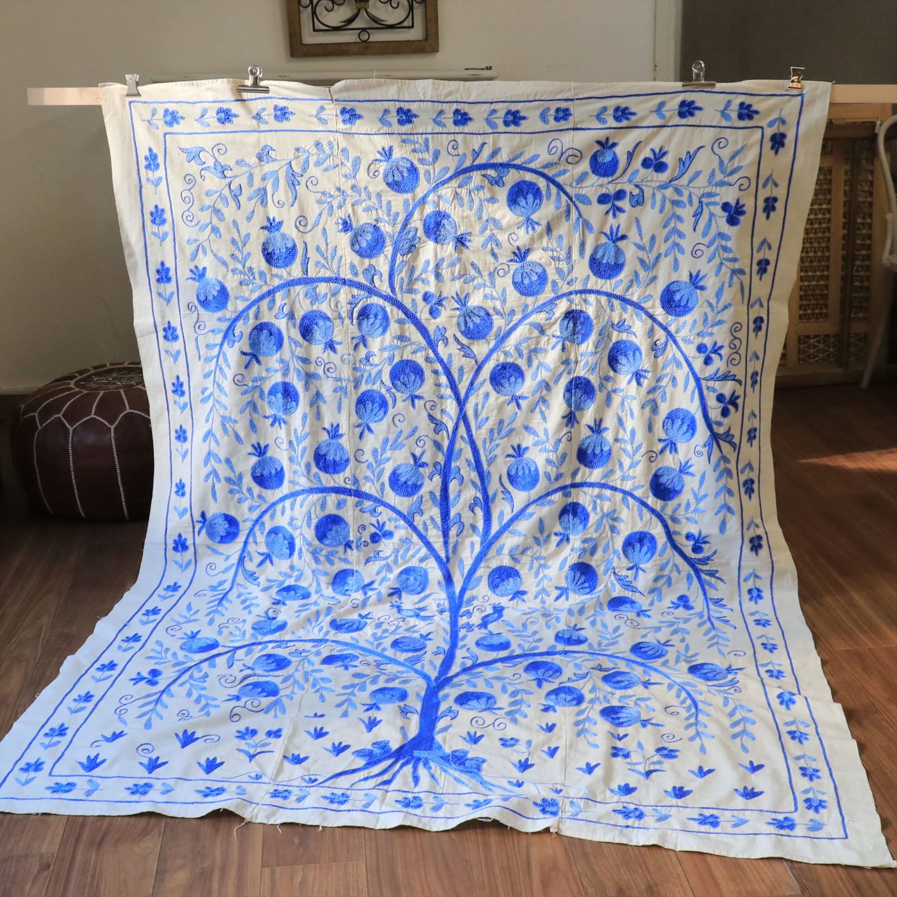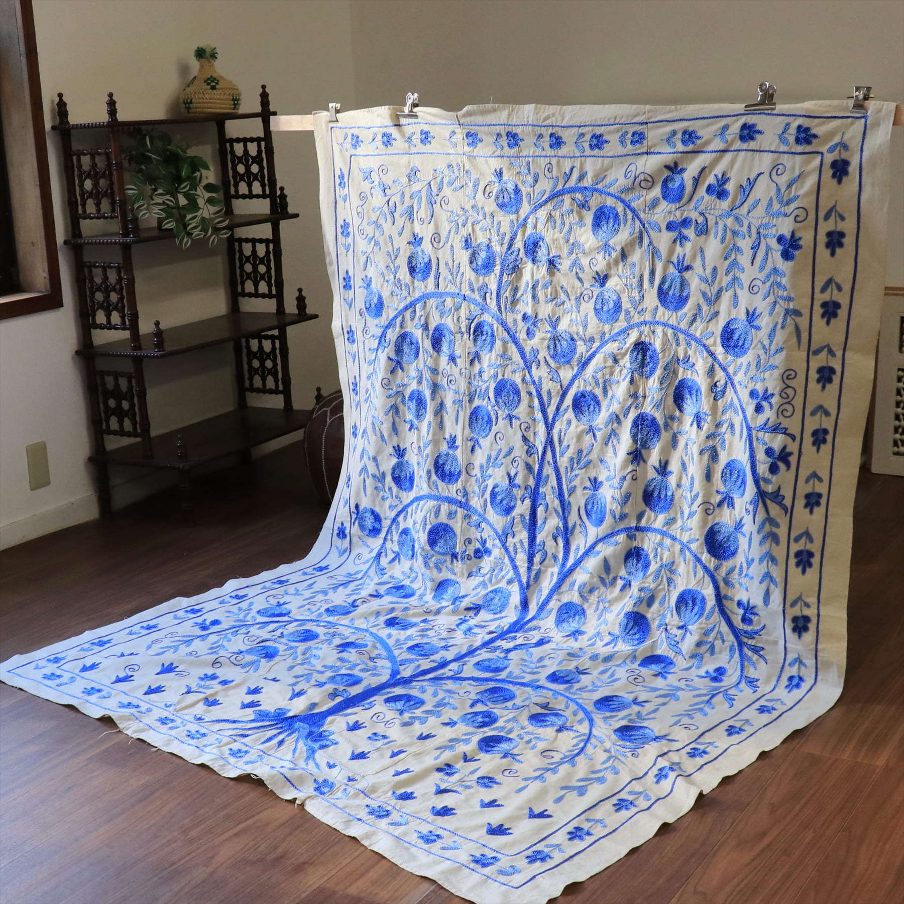 スザンニ刺繍布 ウズベキスタン194×144cm ザクロの実のなる生命の木