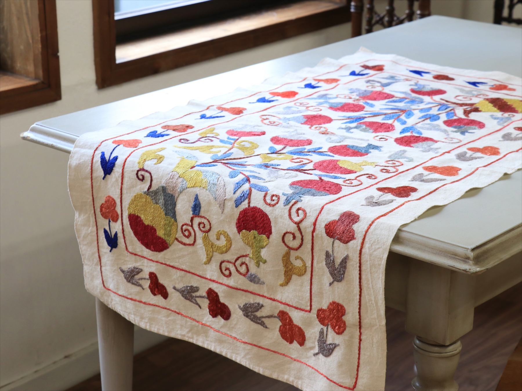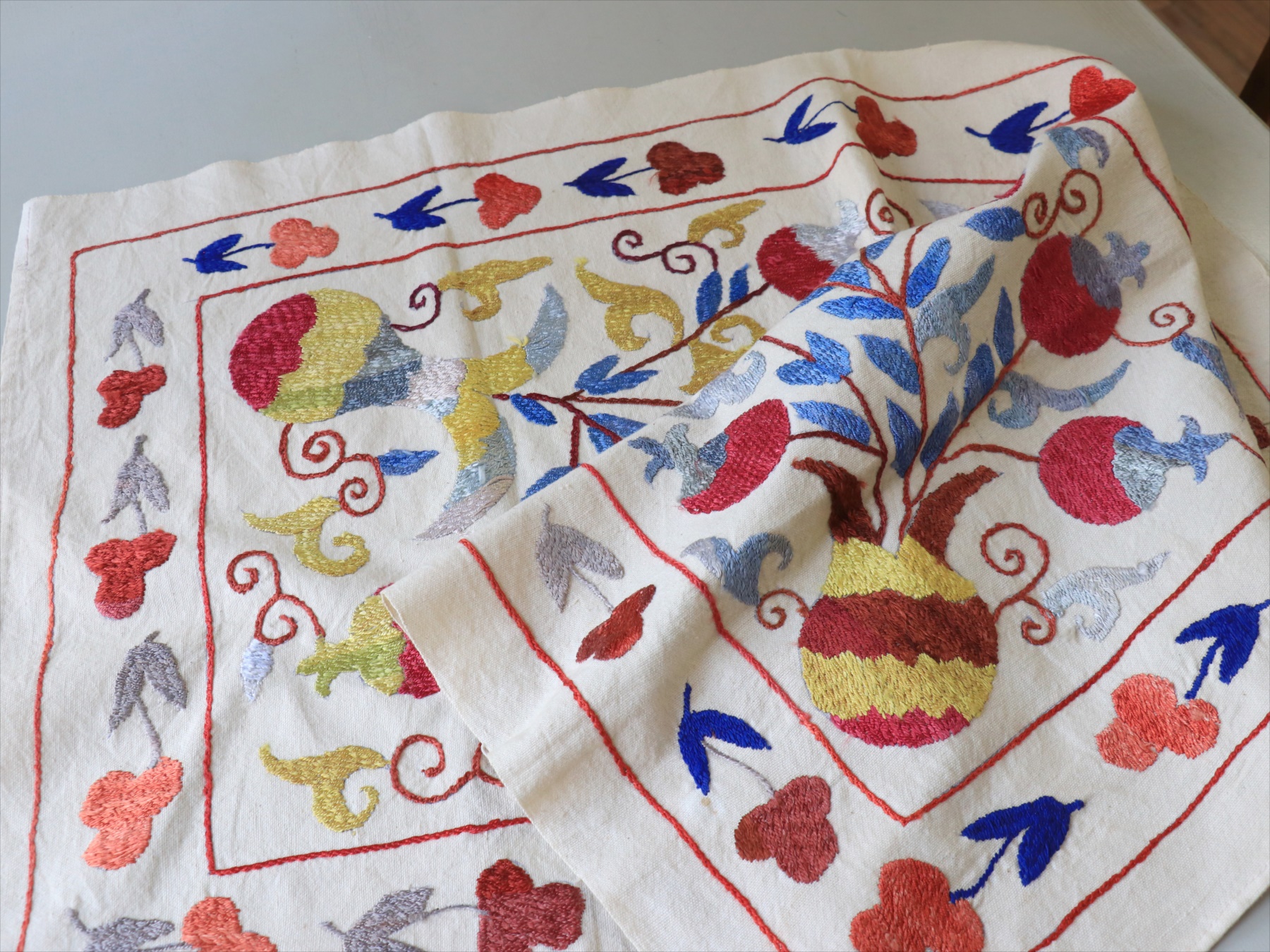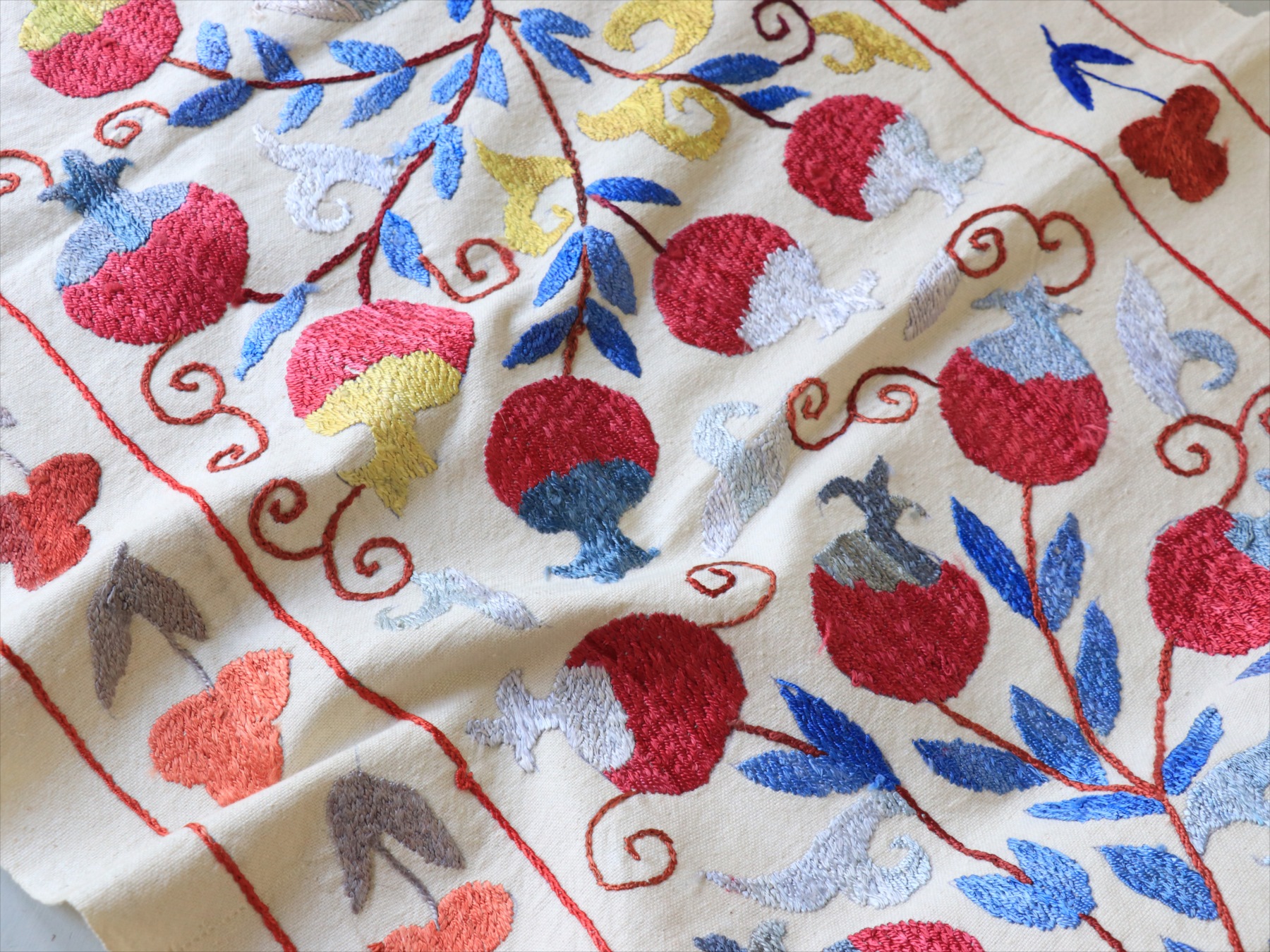 スザンニ刺繍布 ウズベキスタン86×50cm ザクロのブーケ テーブルセンター