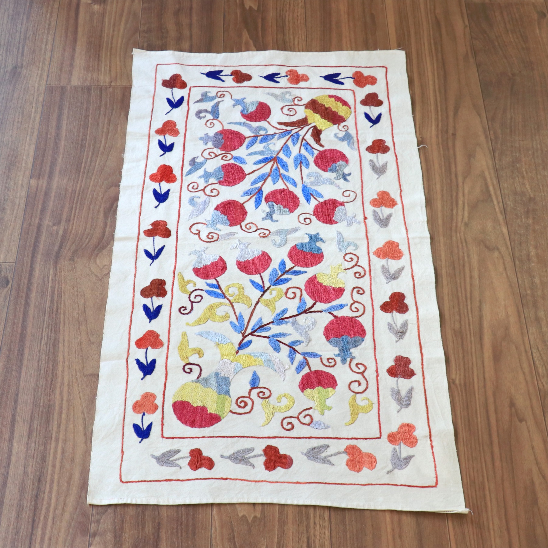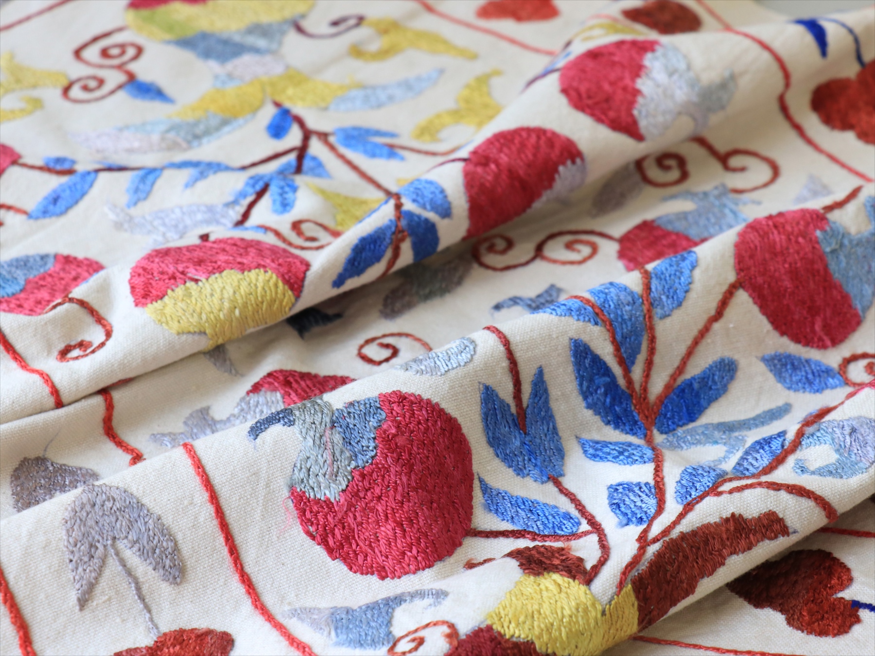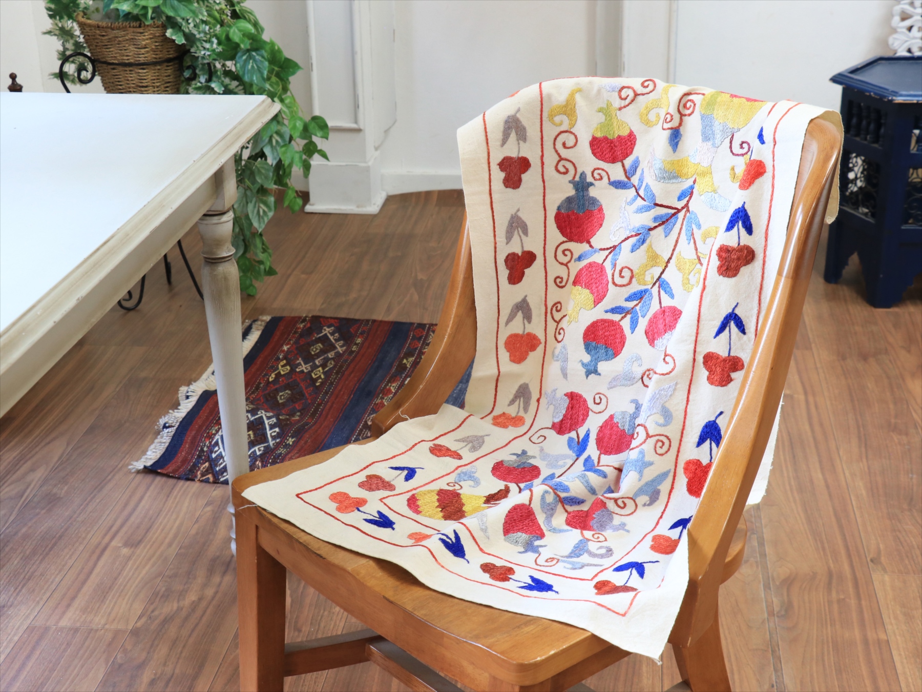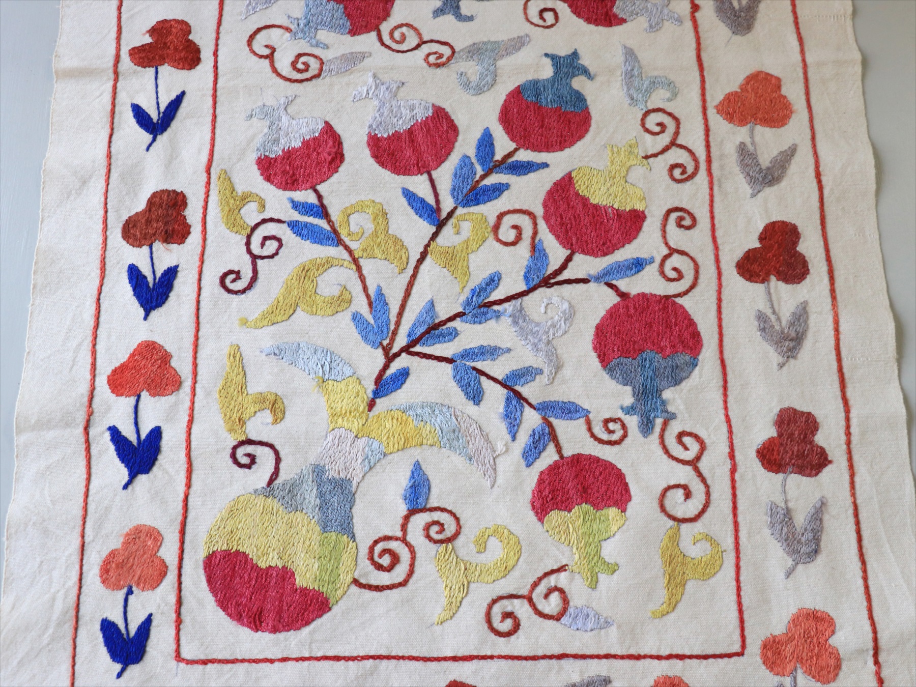 スザンニ刺繍布 ウズベキスタン86×50cm ザクロのブーケ テーブルセンター