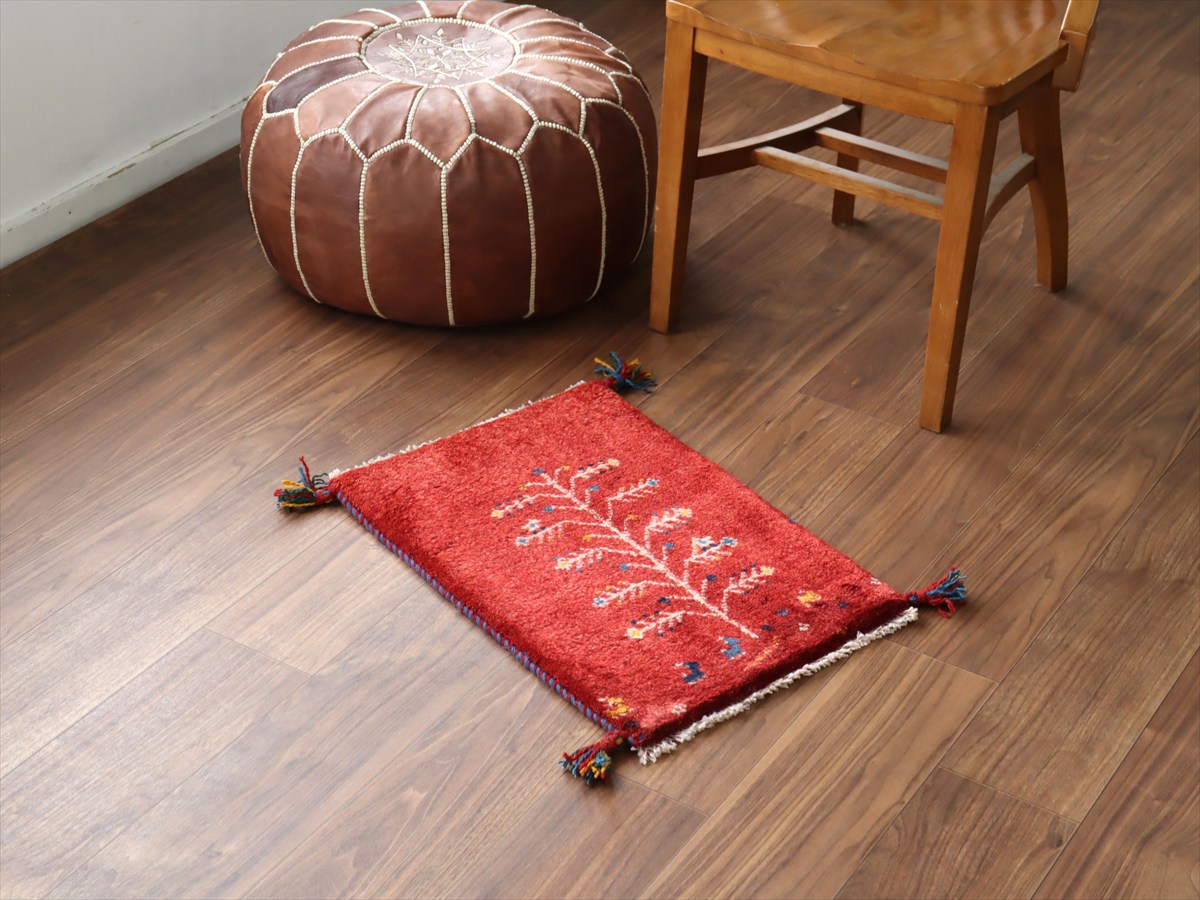 ギャッベ ミニギャベ イラン産59×40cmレッド 生命の樹と動物