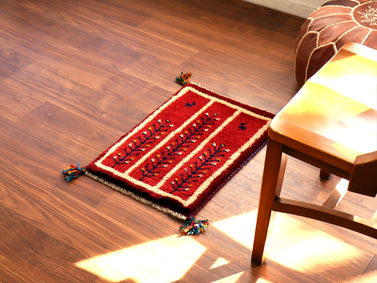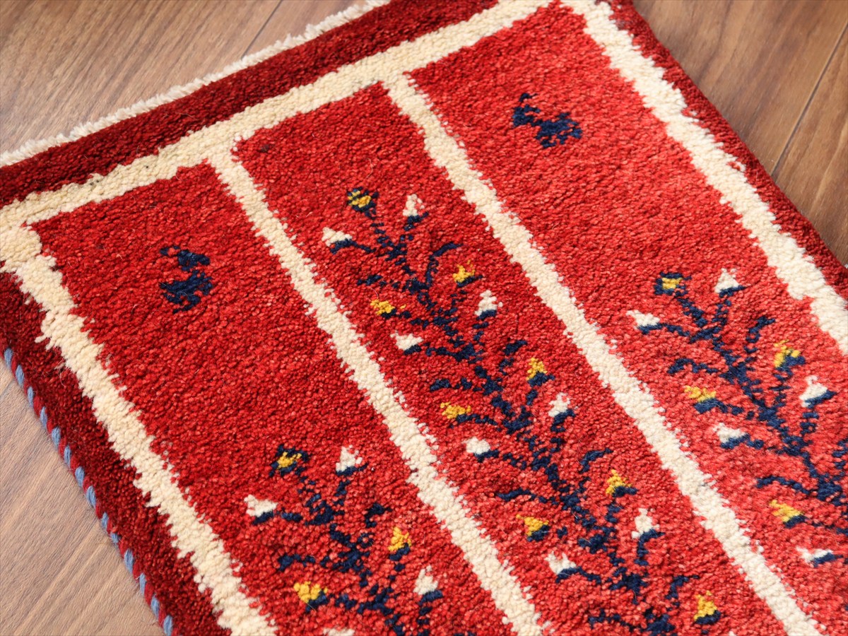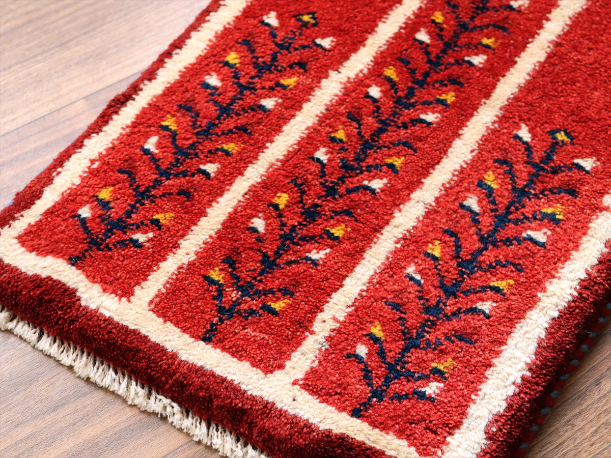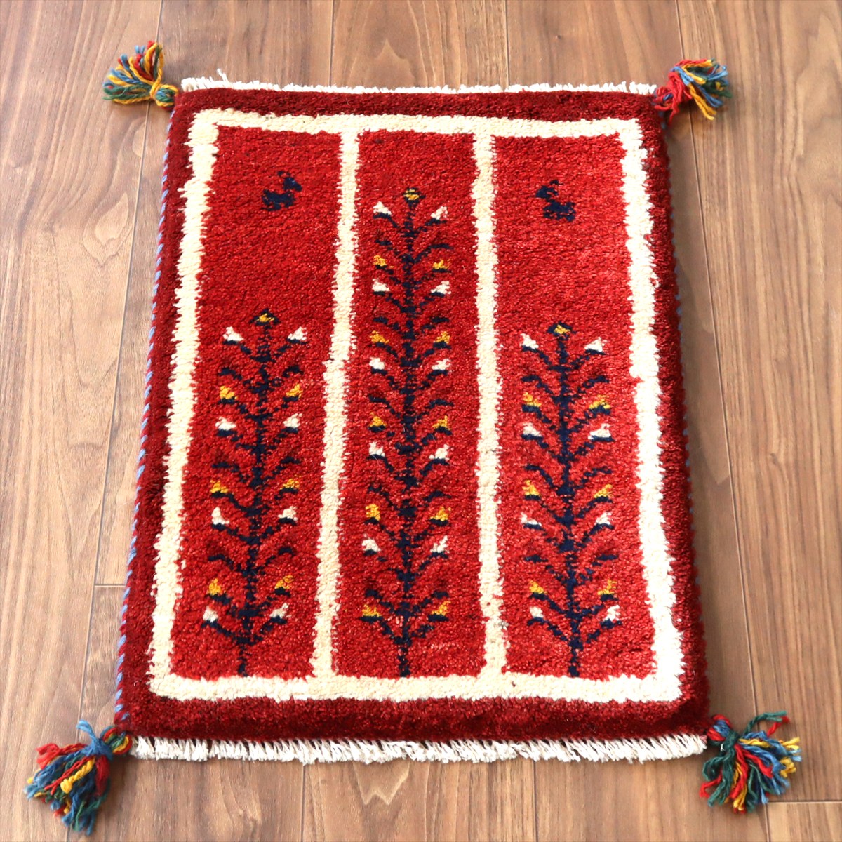 ギャッベ ミニギャベ イラン産58×42cmレッド 連なる生命の樹と動物