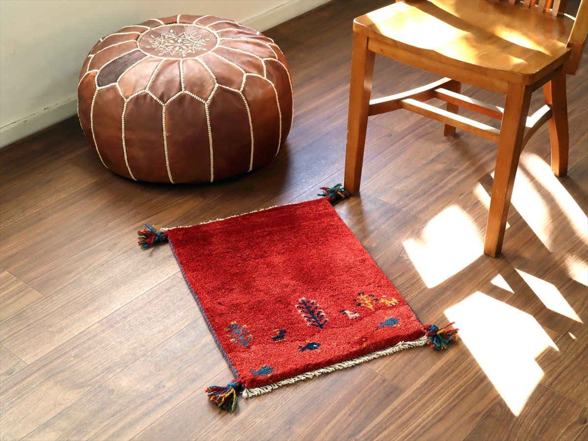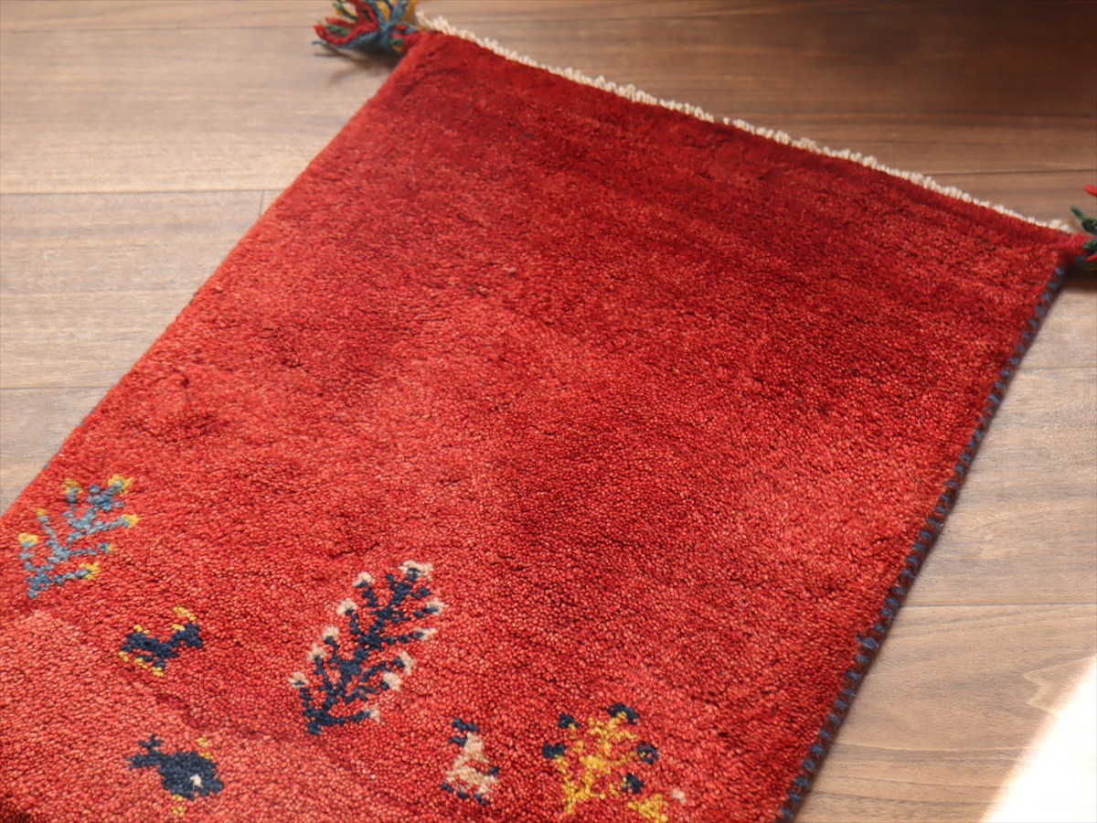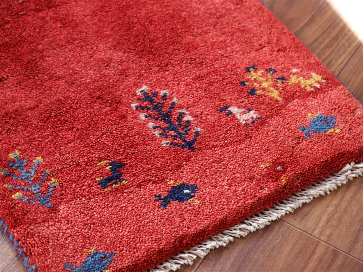 ギャッベ ミニギャベ イラン産56×42cmレッド 生命の樹と動物と魚