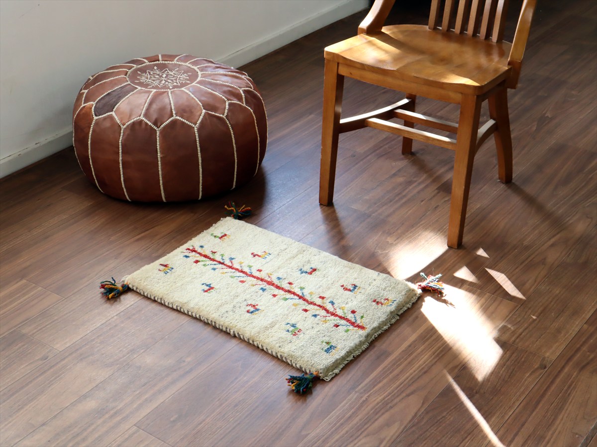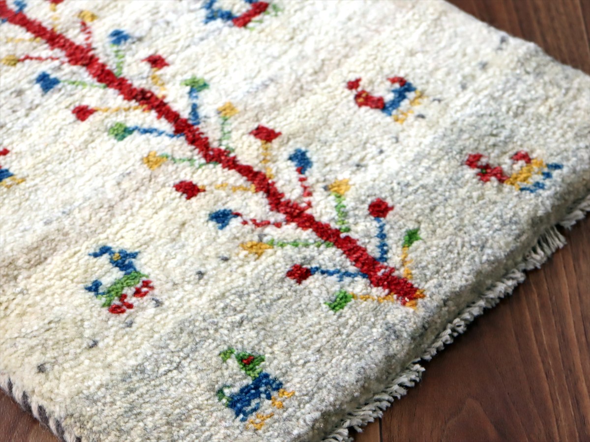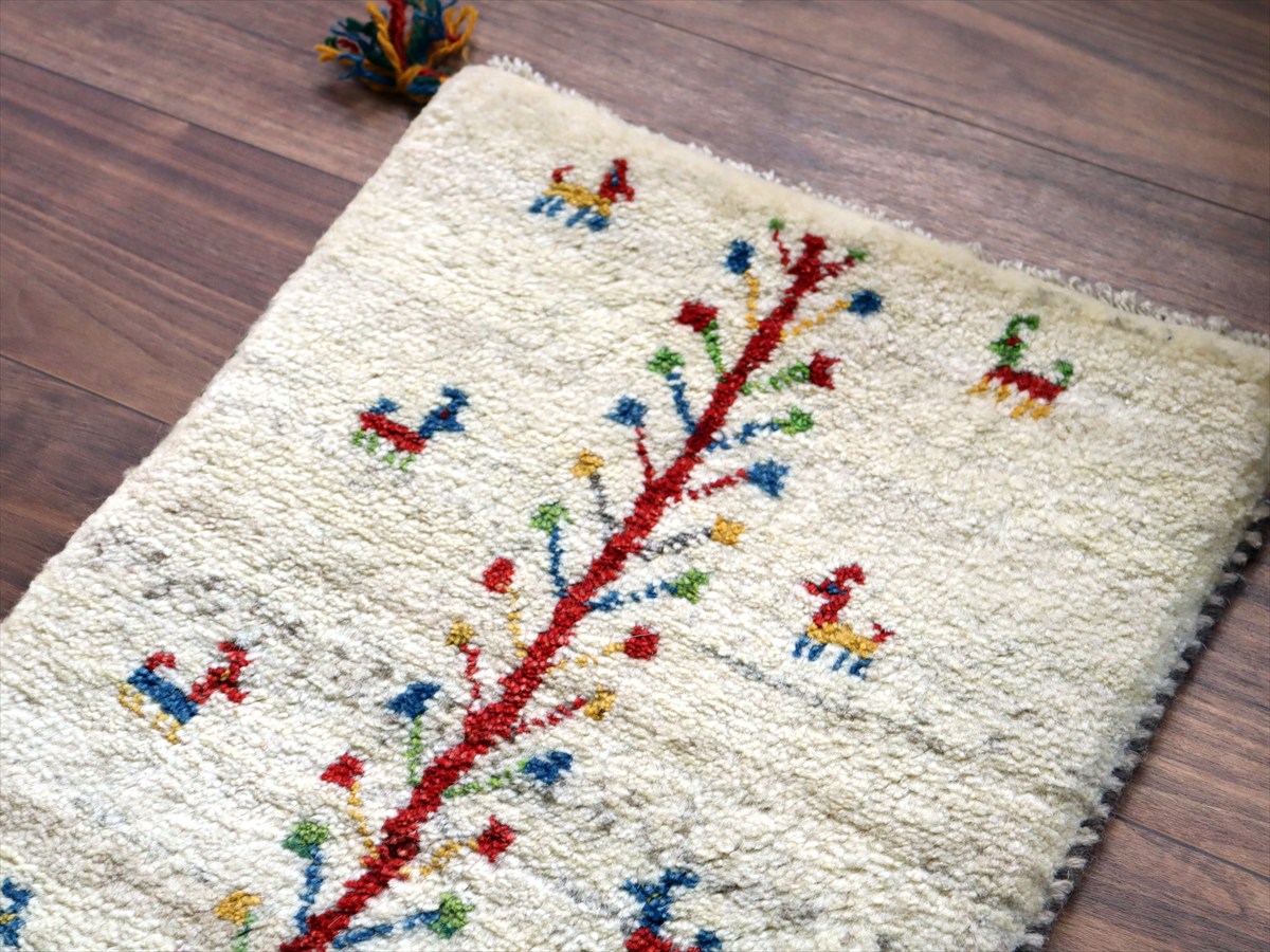 ギャッベ ミニギャベ イラン産62×41cmナチュラルアイボリー 連なる生命の樹と動物
