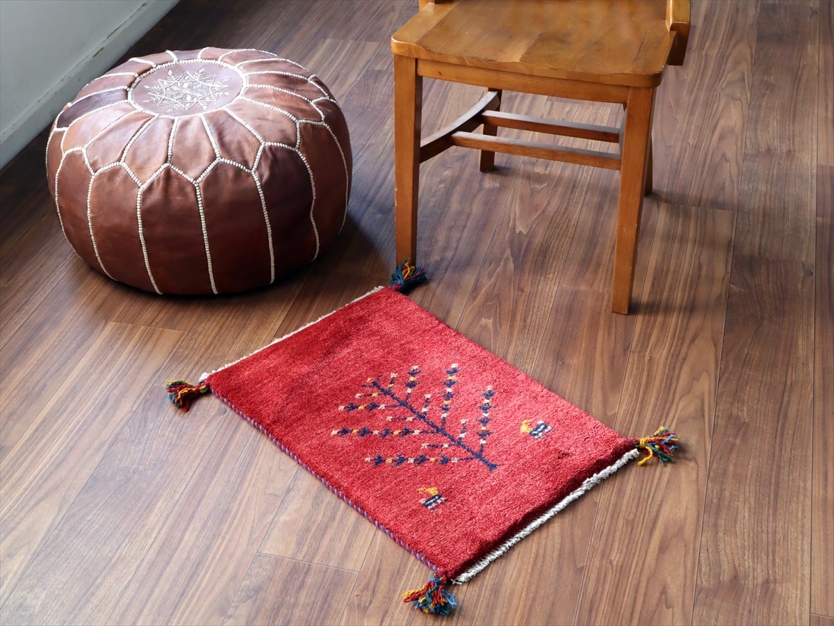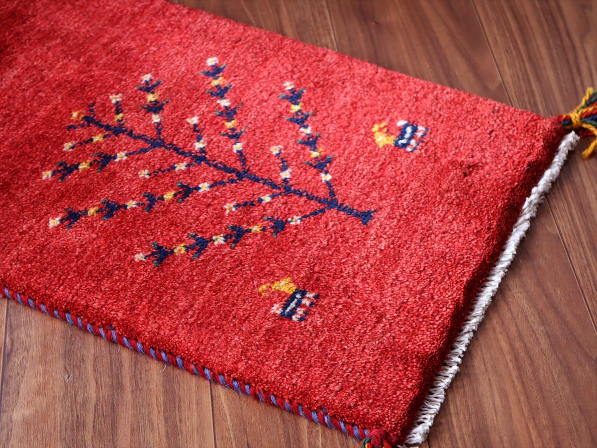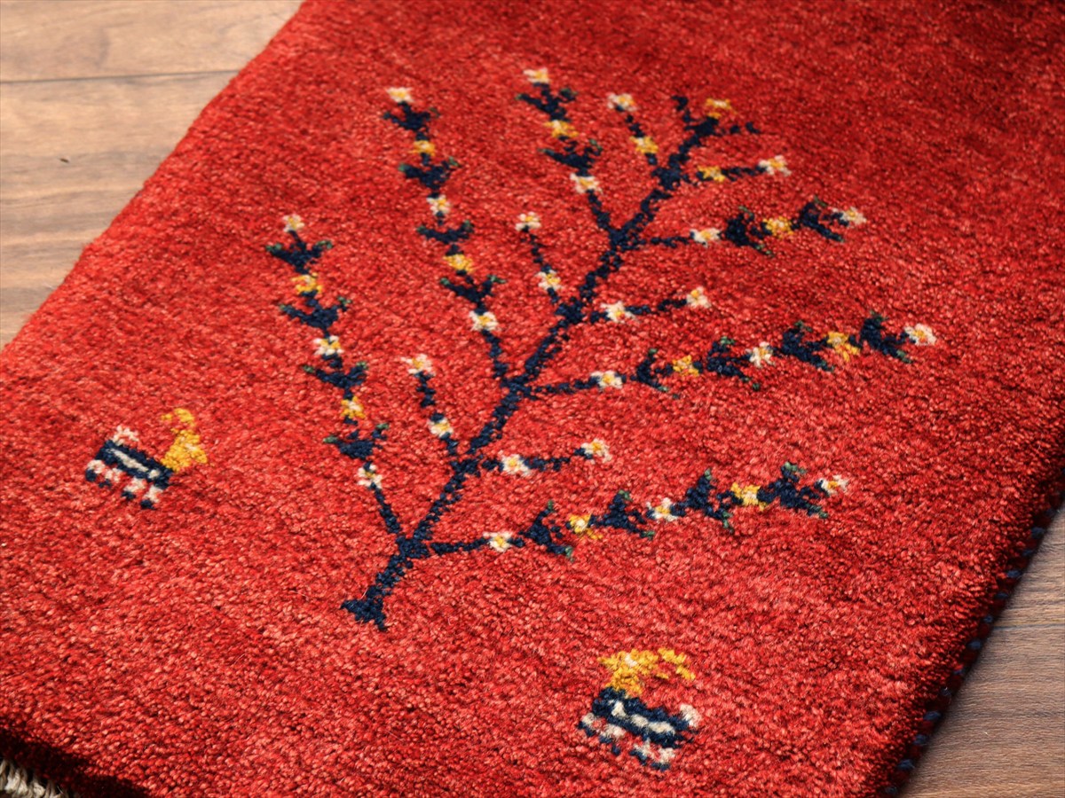 細かな織り目で、引き締まった織り地。細かな織りのギャベとしては、パイルは長めに残され、ベースを含めたラグ全体の厚みは1.4-1.5cmほどにもなるボリュームがあります。手紬の毛糸の一本一本まで見えるようで、手間をかけて織りあげた手仕事のすばらしさがわかります。