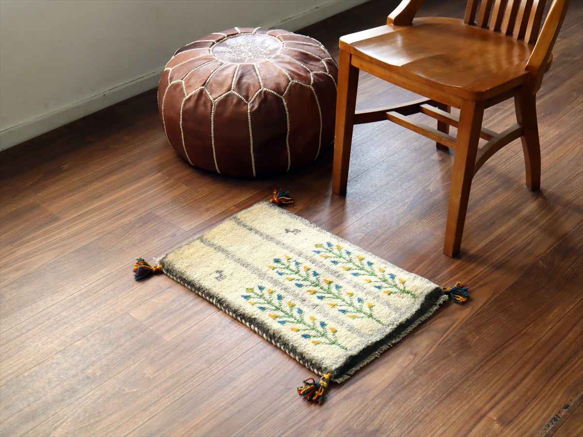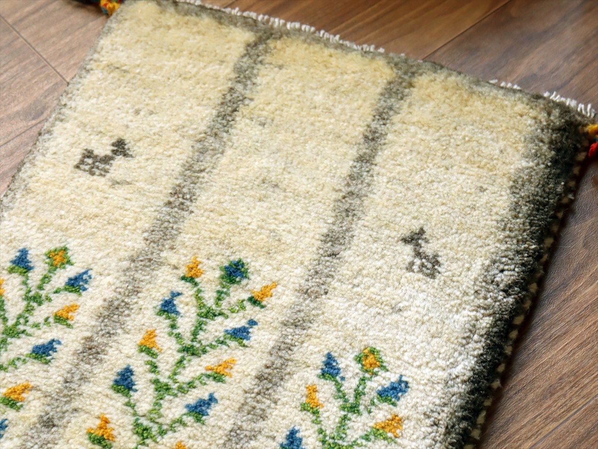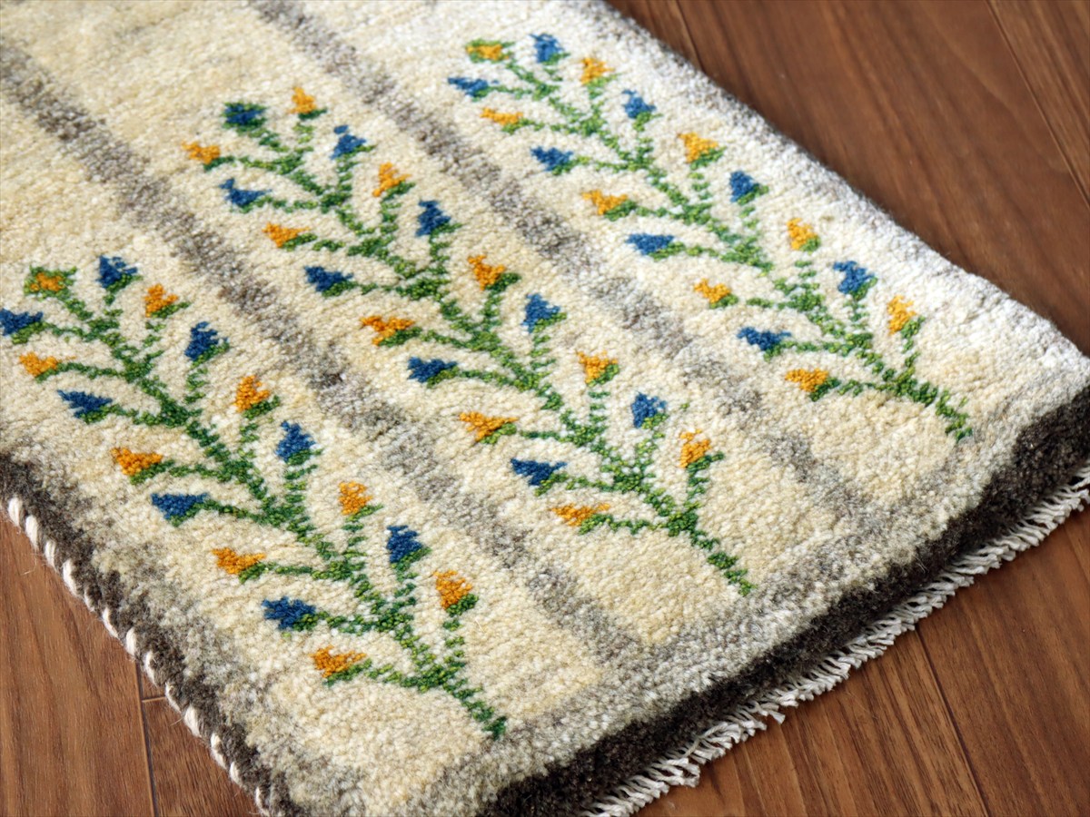 ギャッベ ミニギャベ イラン産61×41cmナチュラルアイボリー 連なる生命の樹と動物