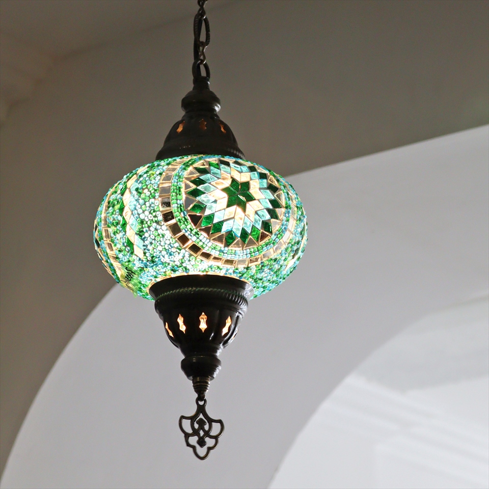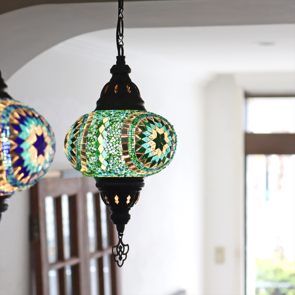 Key:トルコランプ モザイクランプ 天井照明 ガラスシェード ペンダントライト シーリングライト ランプ ライト 照明 間接照明 インテリア エスニック オリエンタル ガラスランプ 引掛けシーリング対応