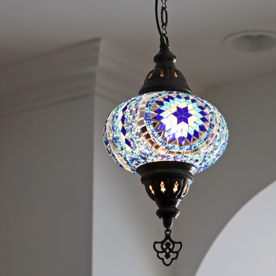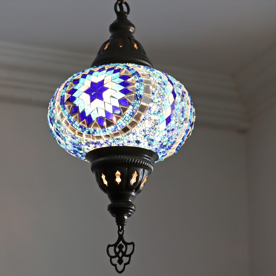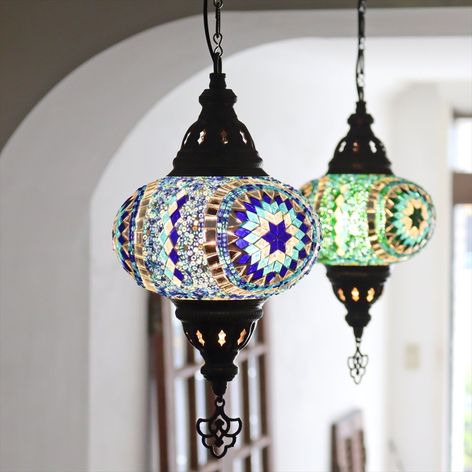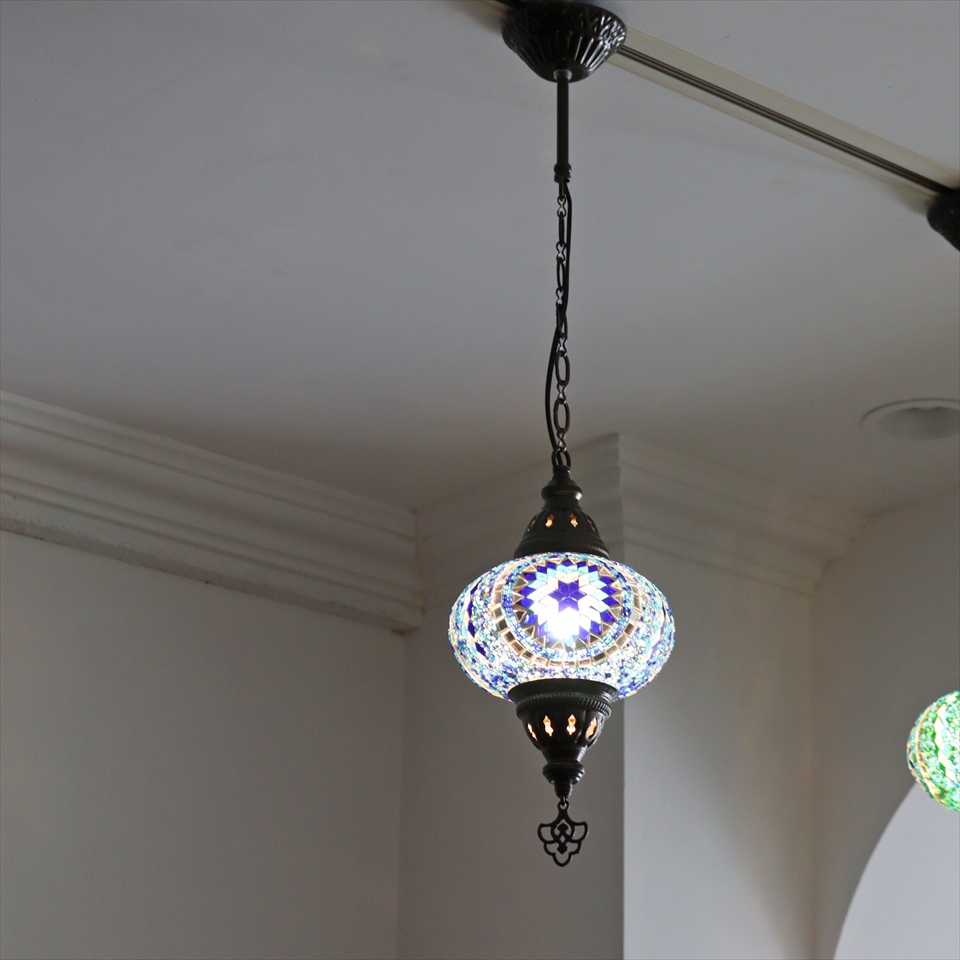 Key:トルコランプ モザイクランプ 天井照明 ガラスシェード ペンダントライト シーリングライト ランプ ライト 照明 間接照明 インテリア エスニック オリエンタル ガラスランプ 引掛けシーリング対応