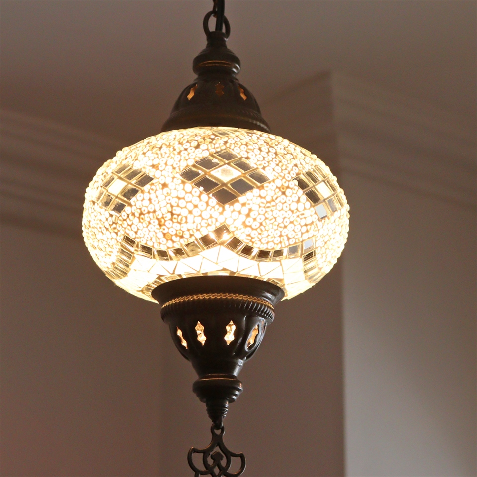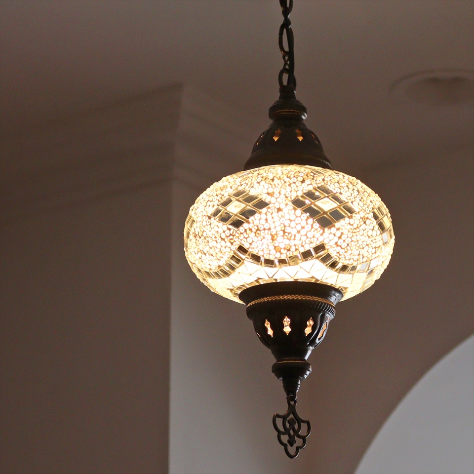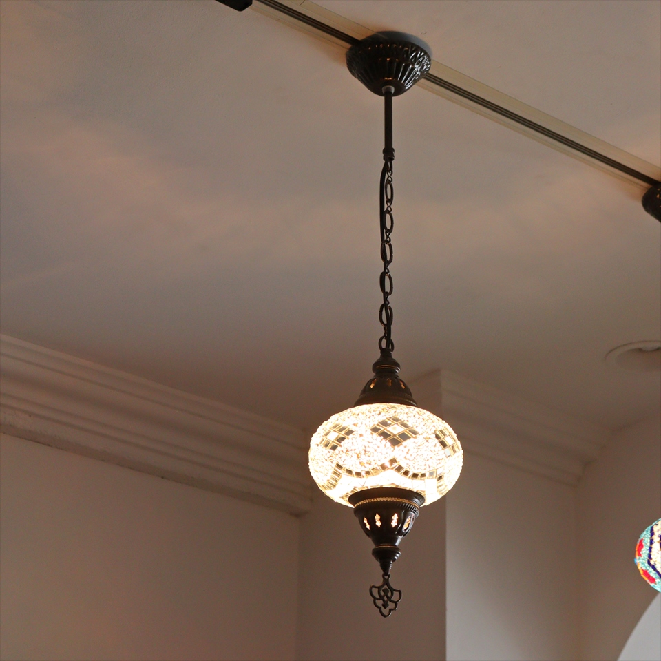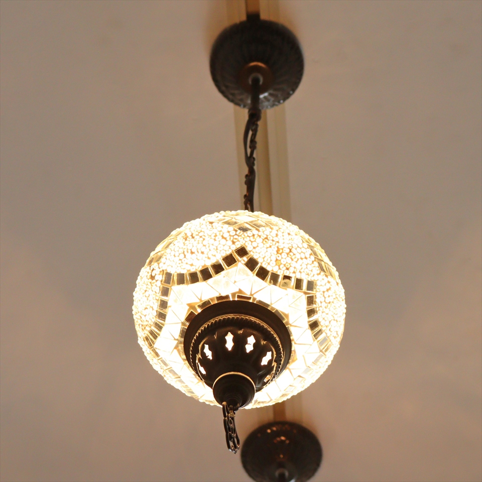 トルコランプ モザイクランプ ペンダントランプ 直径16cm H70cm ホワイト