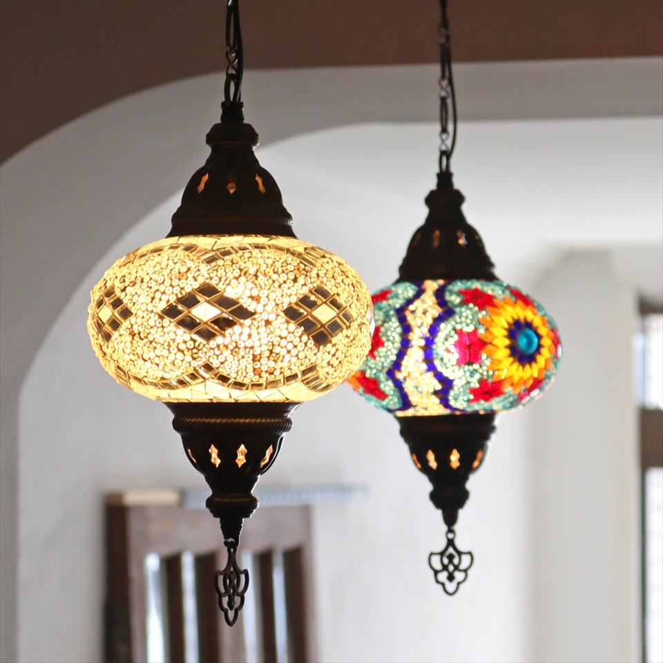 Key:トルコランプ モザイクランプ 天井照明 ガラスシェード ペンダントライト シーリングライト ランプ ライト 照明 間接照明 インテリア エスニック オリエンタル ガラスランプ 引掛けシーリング対応