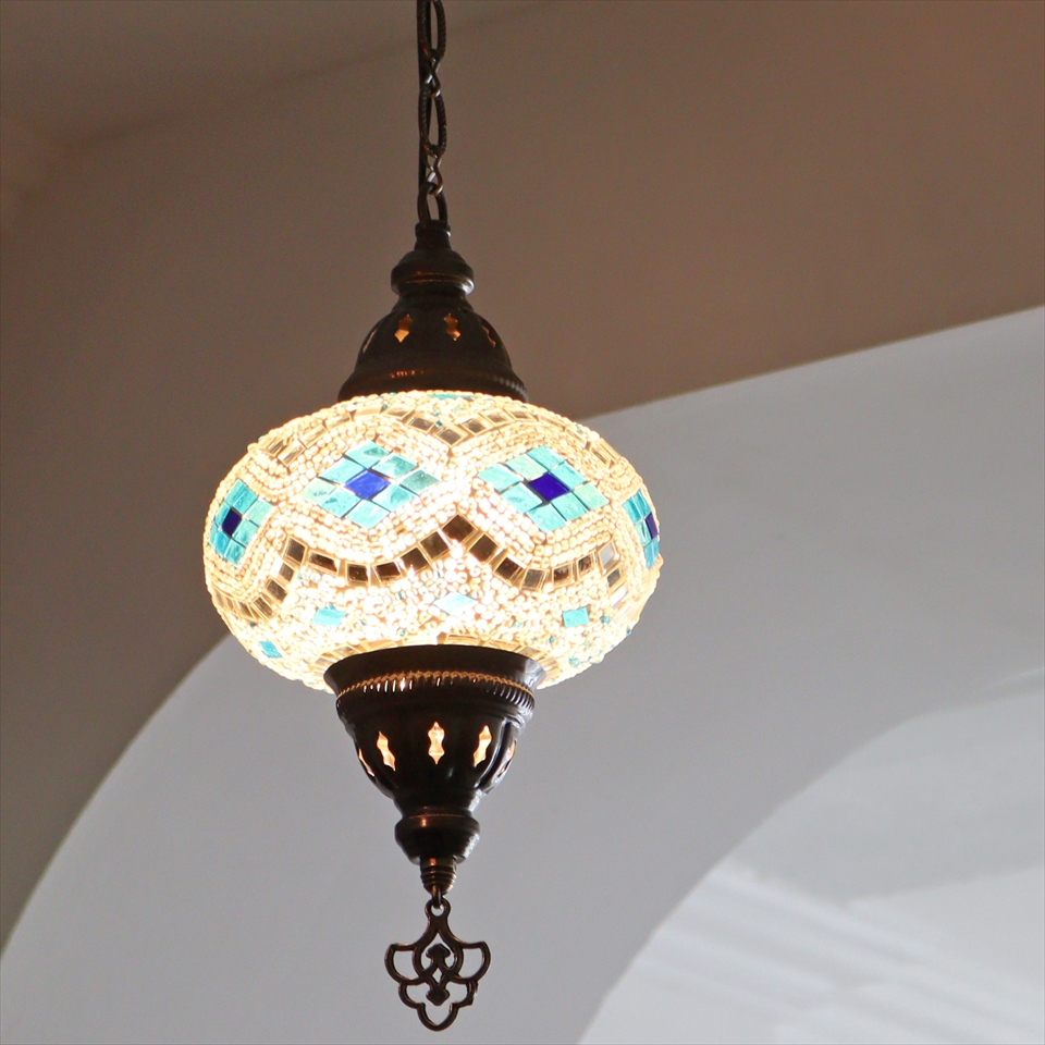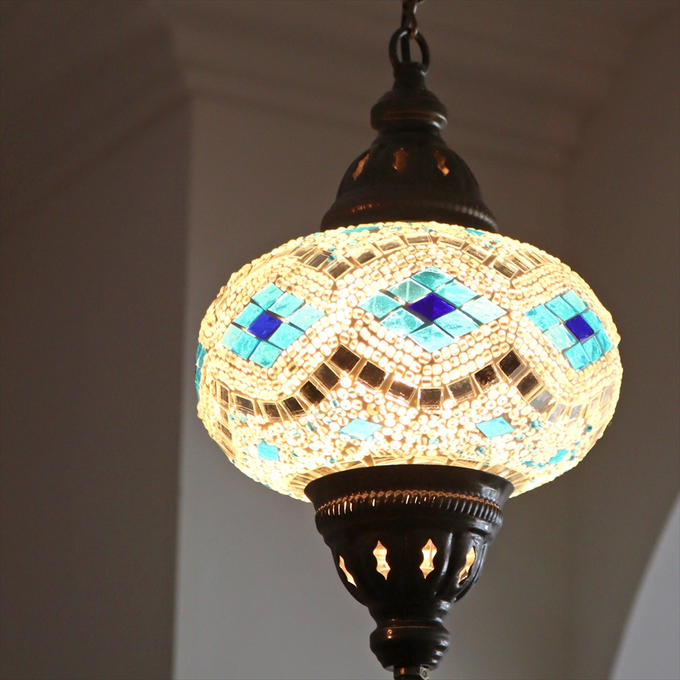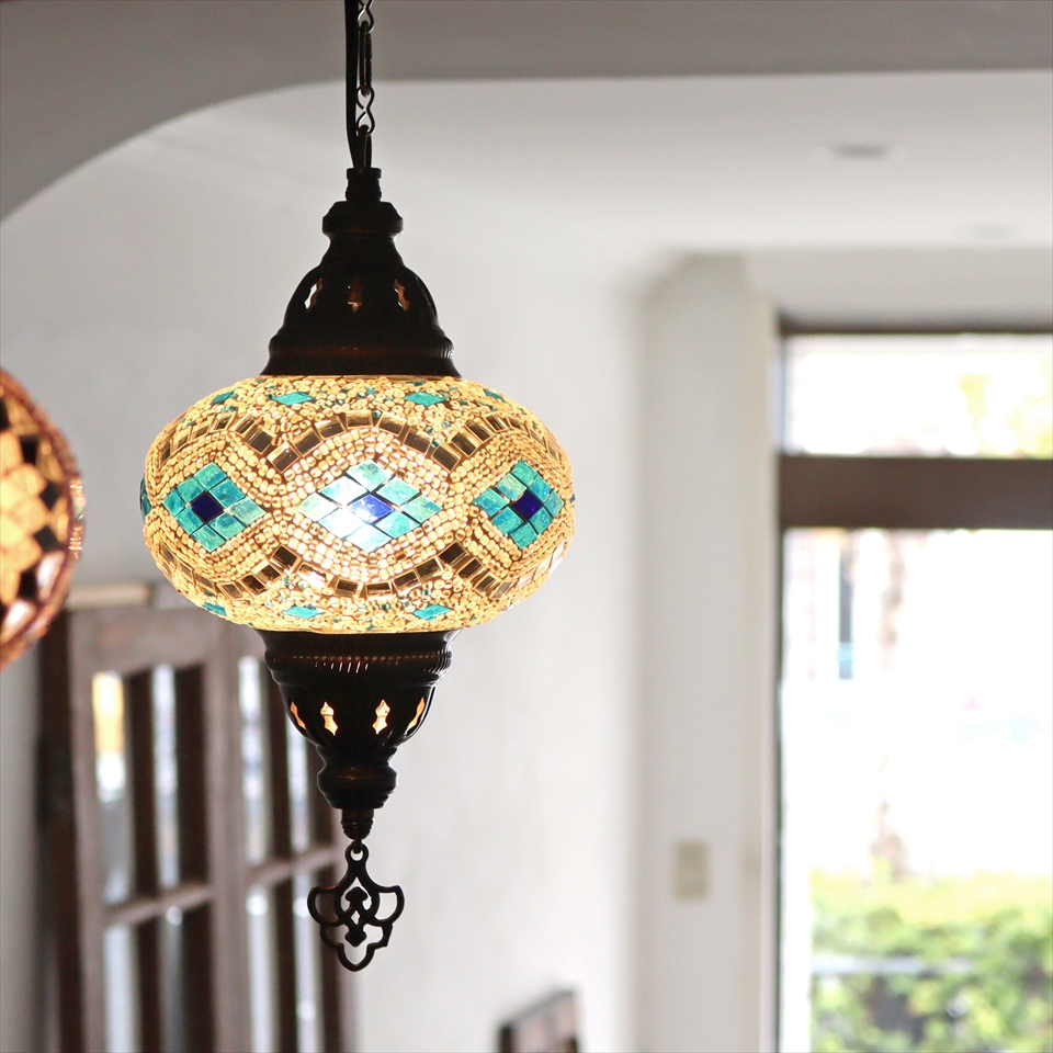 Key:トルコランプ モザイクランプ 天井照明 ガラスシェード ペンダントライト シーリングライト ランプ ライト 照明 間接照明 インテリア エスニック オリエンタル ガラスランプ 引掛けシーリング対応