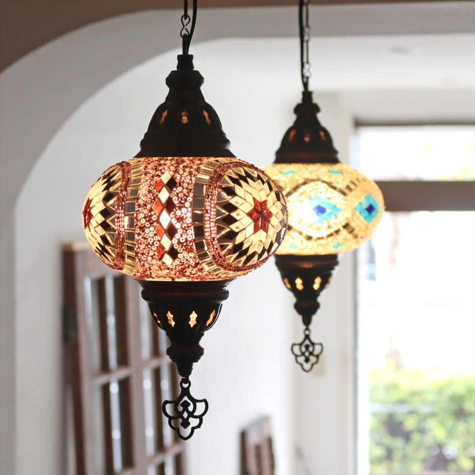 Key:トルコランプ モザイクランプ 天井照明 ガラスシェード ペンダントライト シーリングライト ランプ ライト 照明 間接照明 インテリア エスニック オリエンタル ガラスランプ 引掛けシーリング対応