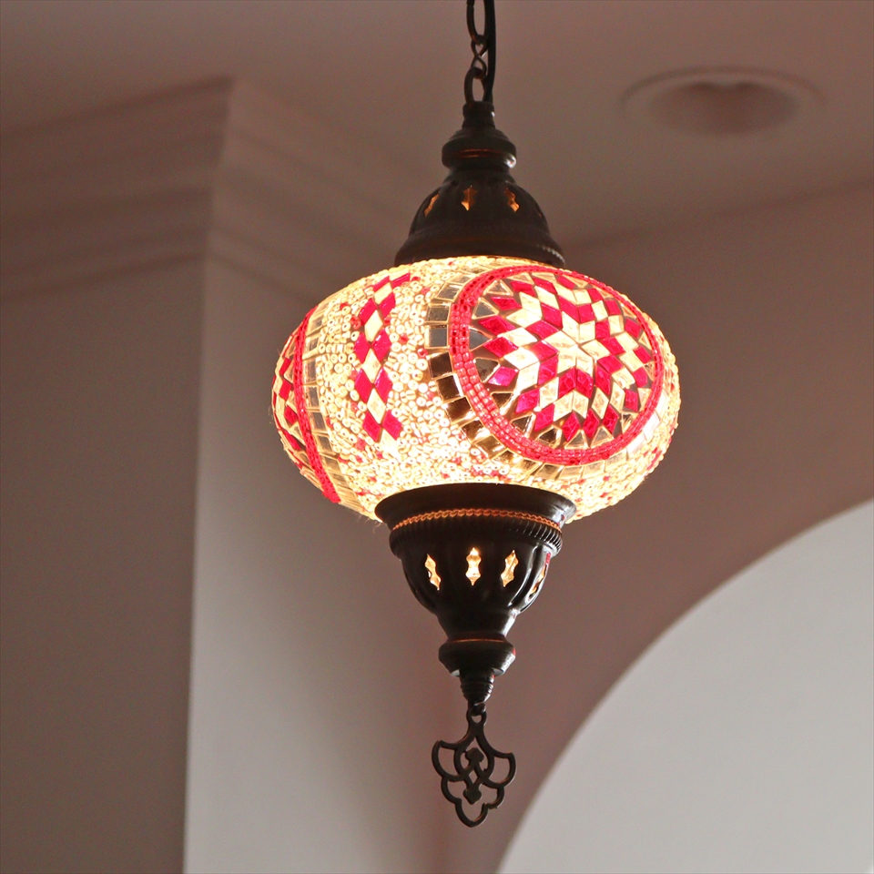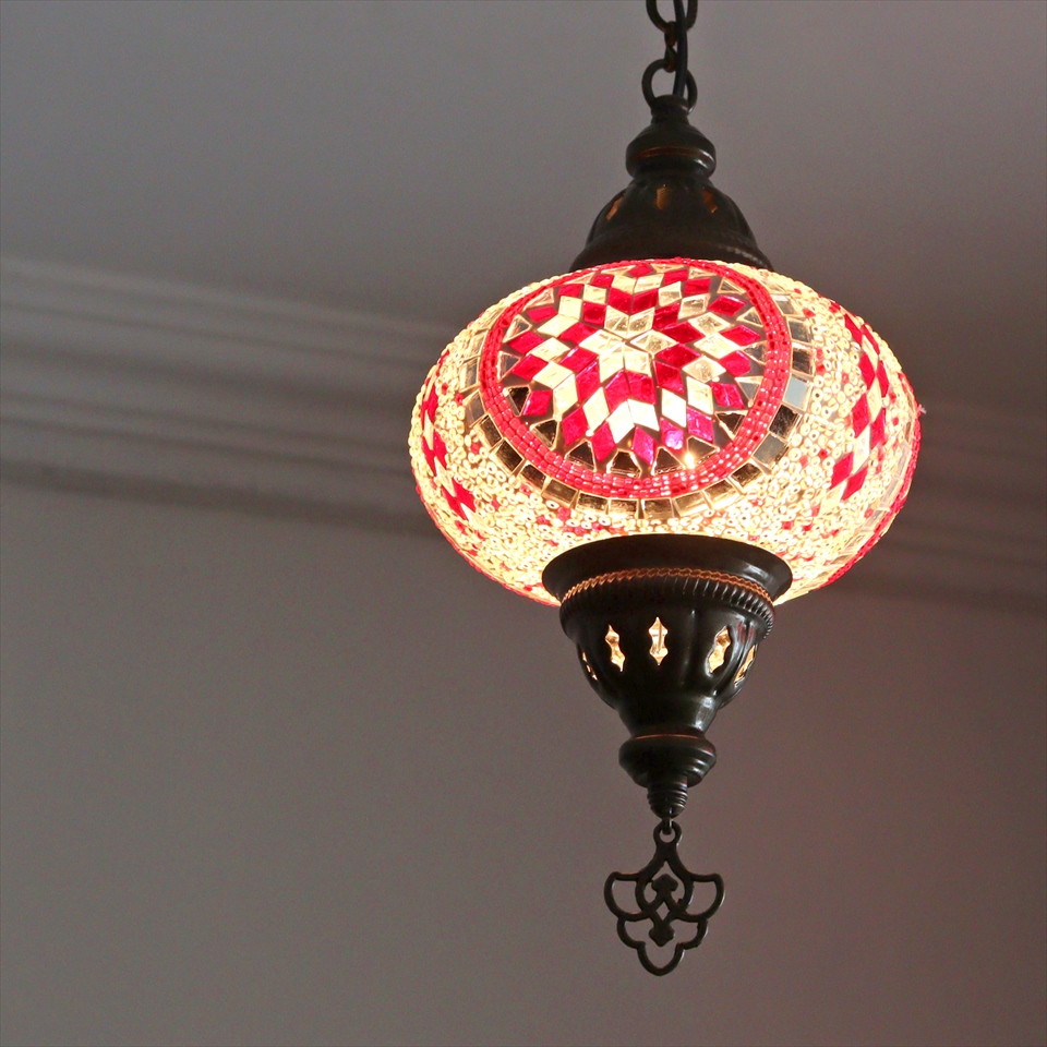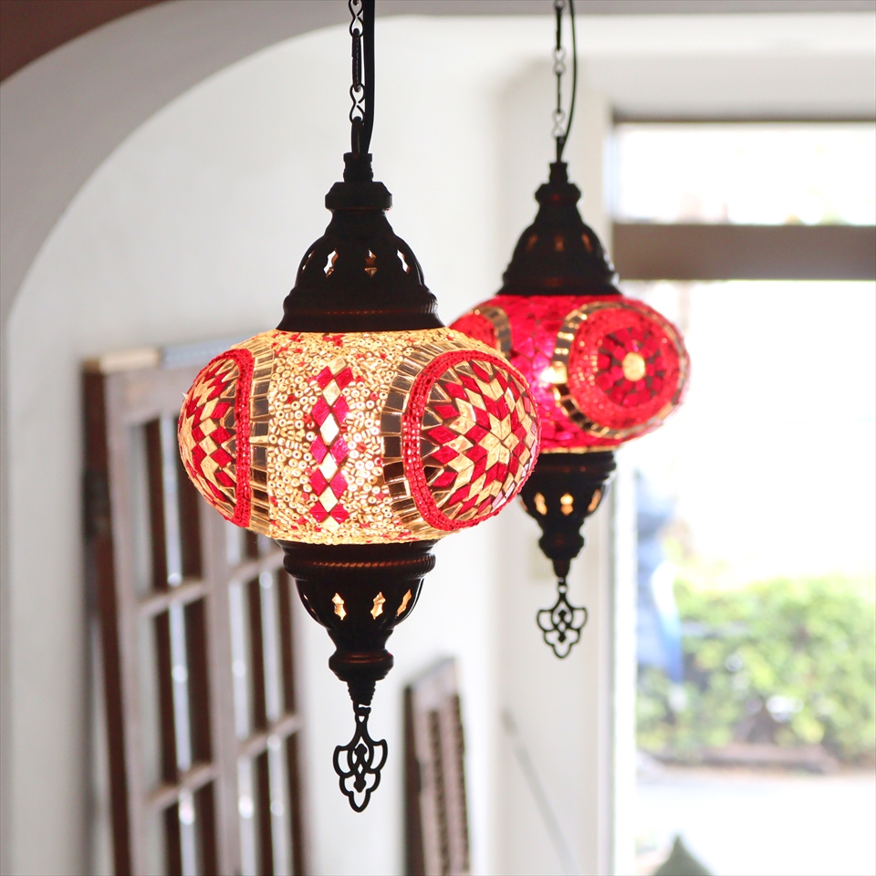 トルコランプ モザイクランプ ペンダントランプ 直径16cm H70cm レッド