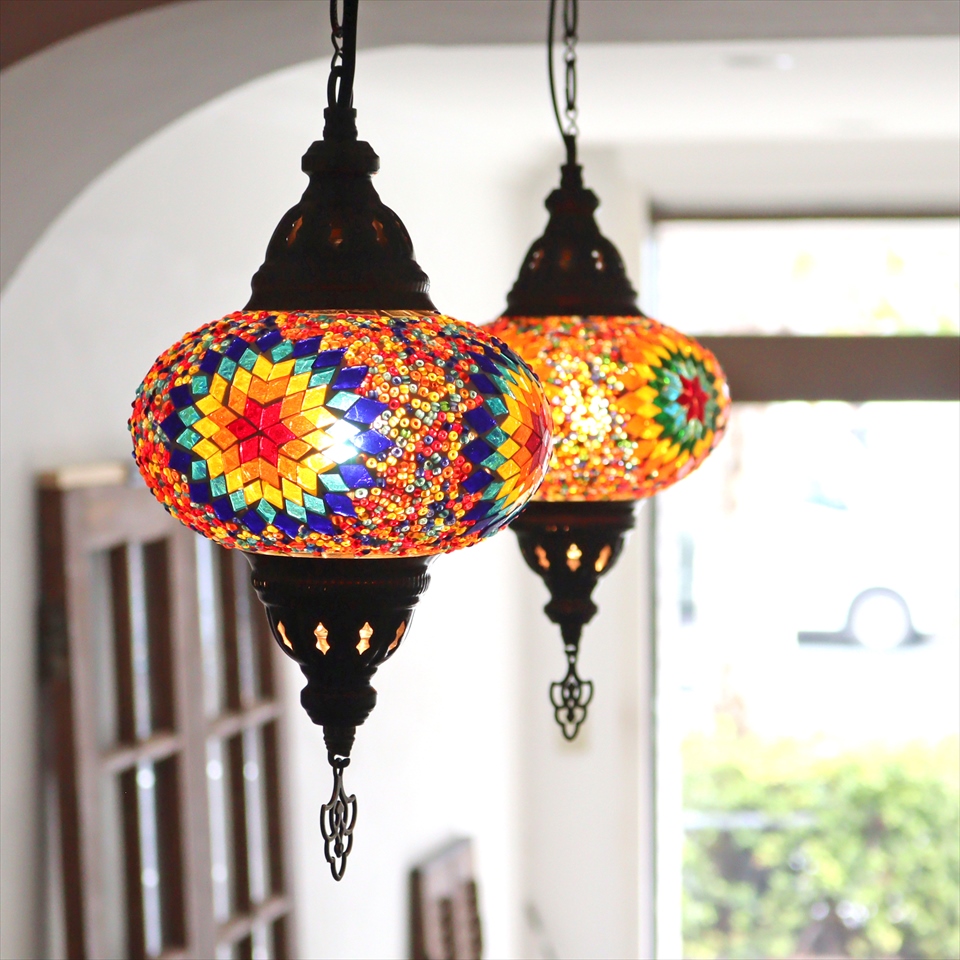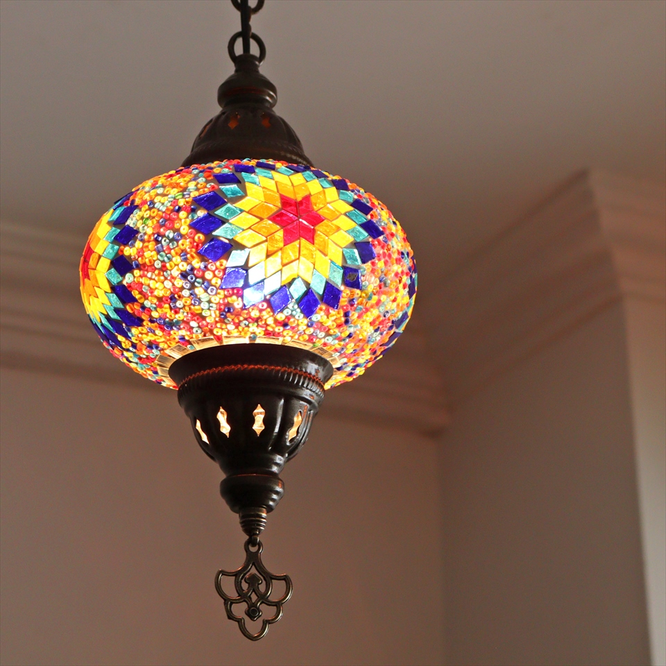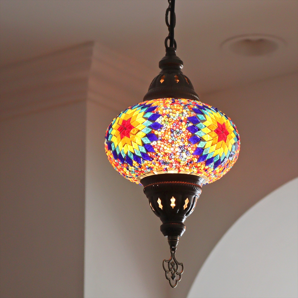 Key:トルコランプ モザイクランプ 天井照明 ガラスシェード ペンダントライト シーリングライト ランプ ライト 照明 間接照明 インテリア エスニック オリエンタル ガラスランプ 引掛けシーリング対応