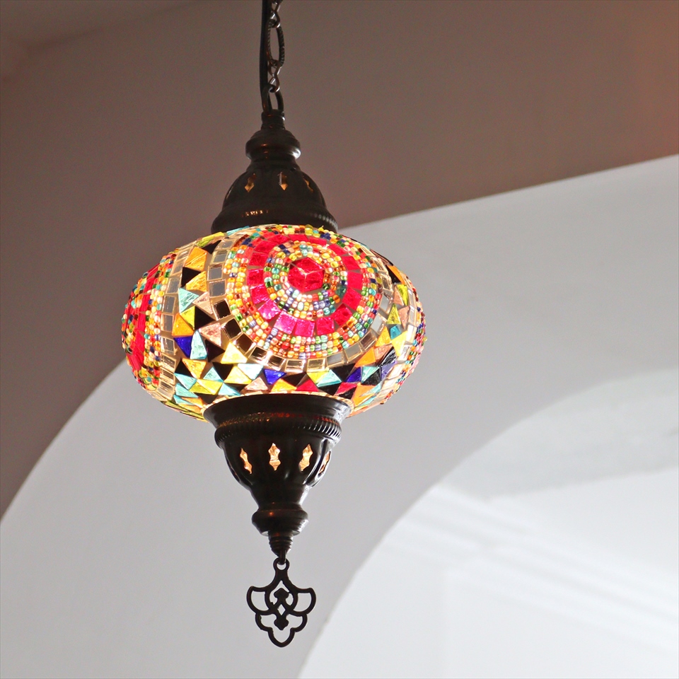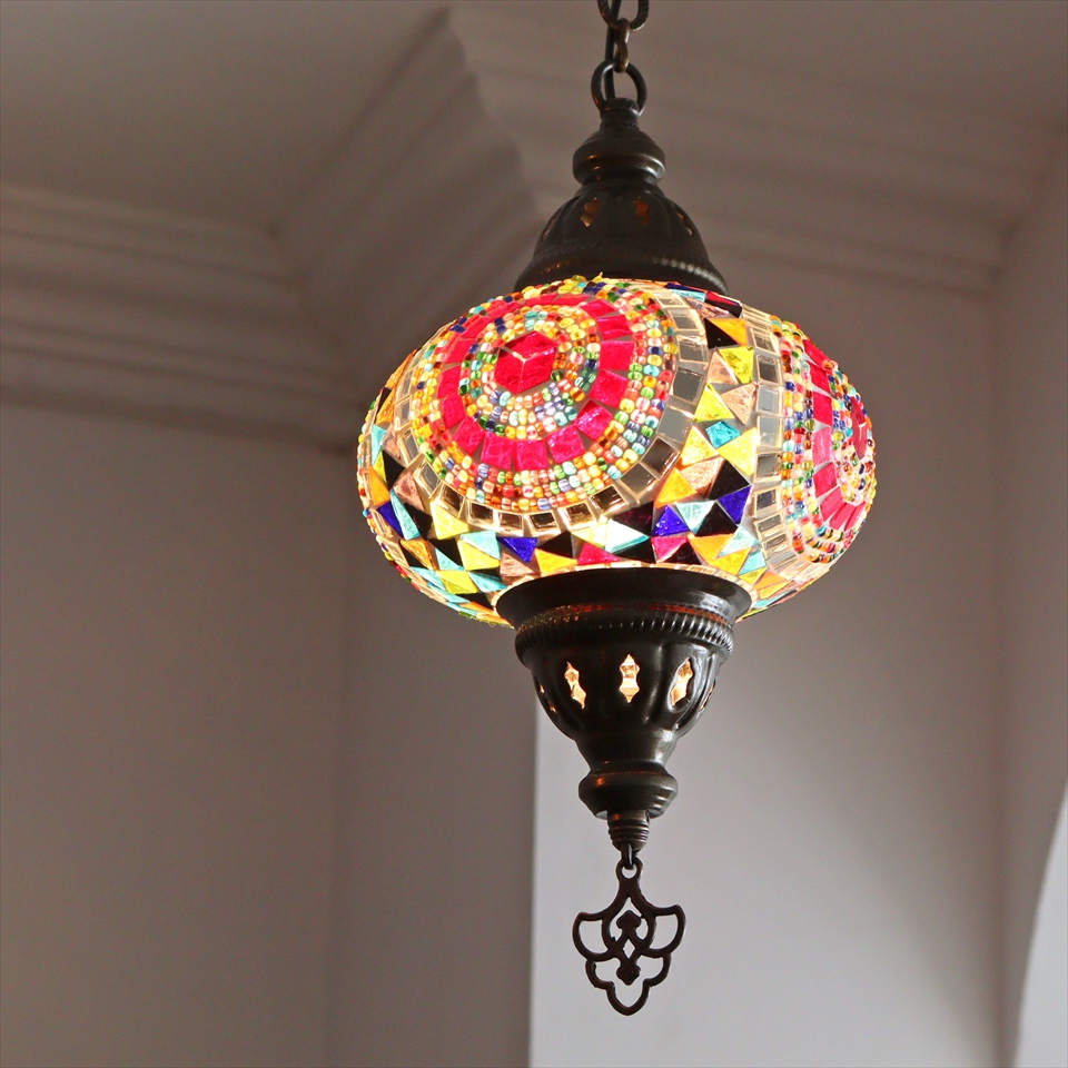 Key:トルコランプ モザイクランプ 天井照明 ガラスシェード ペンダントライト シーリングライト ランプ ライト 照明 間接照明 インテリア エスニック オリエンタル ガラスランプ 引掛けシーリング対応