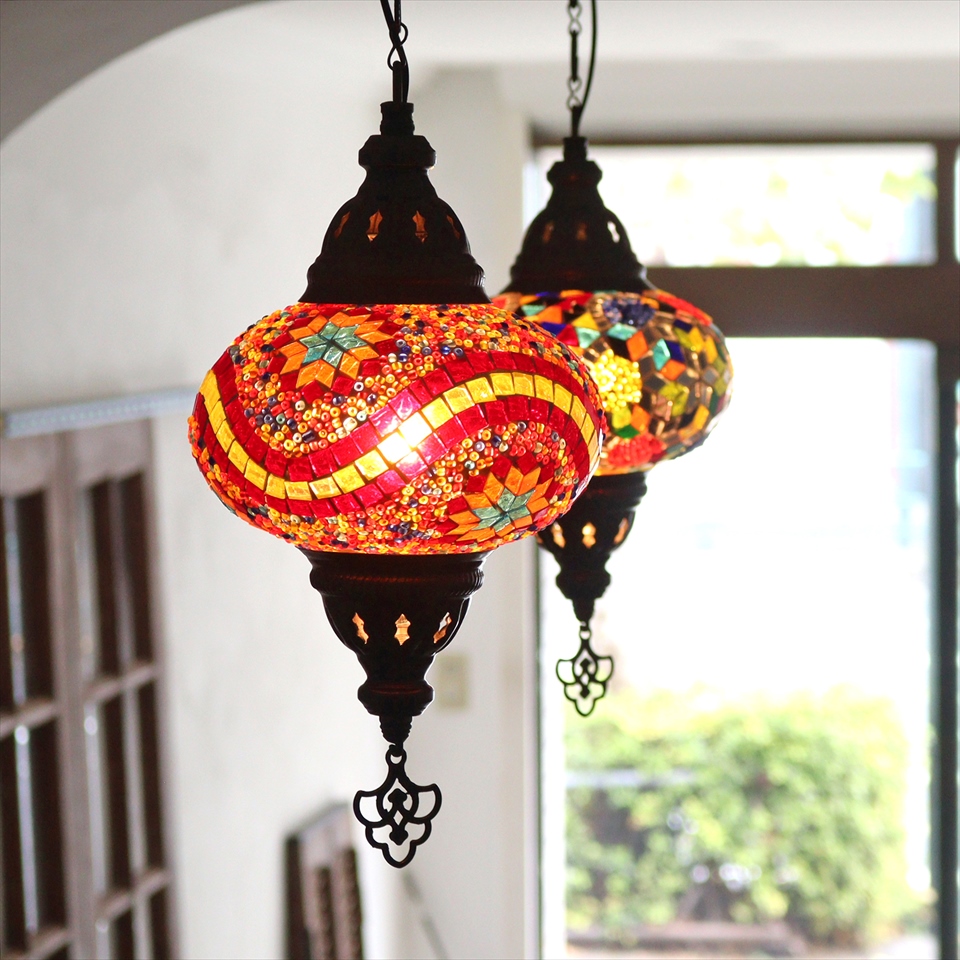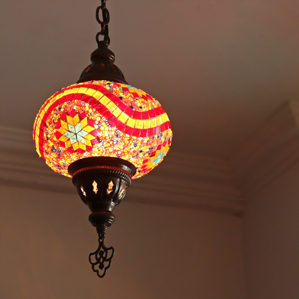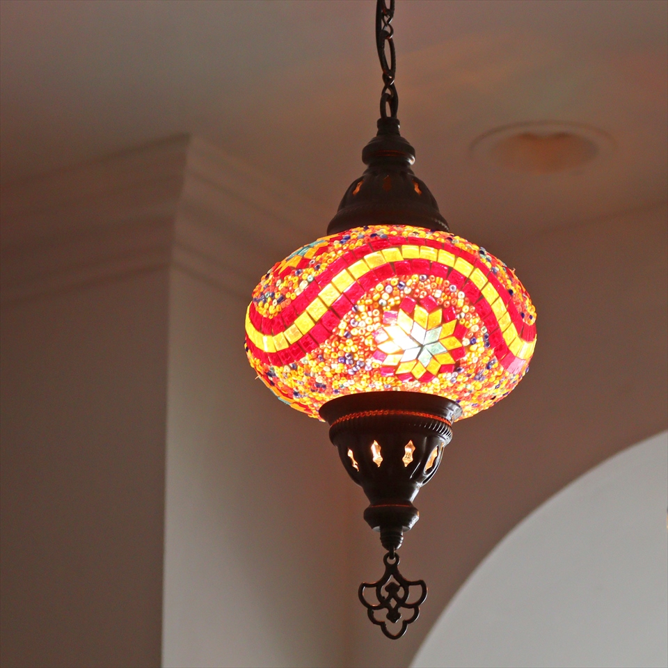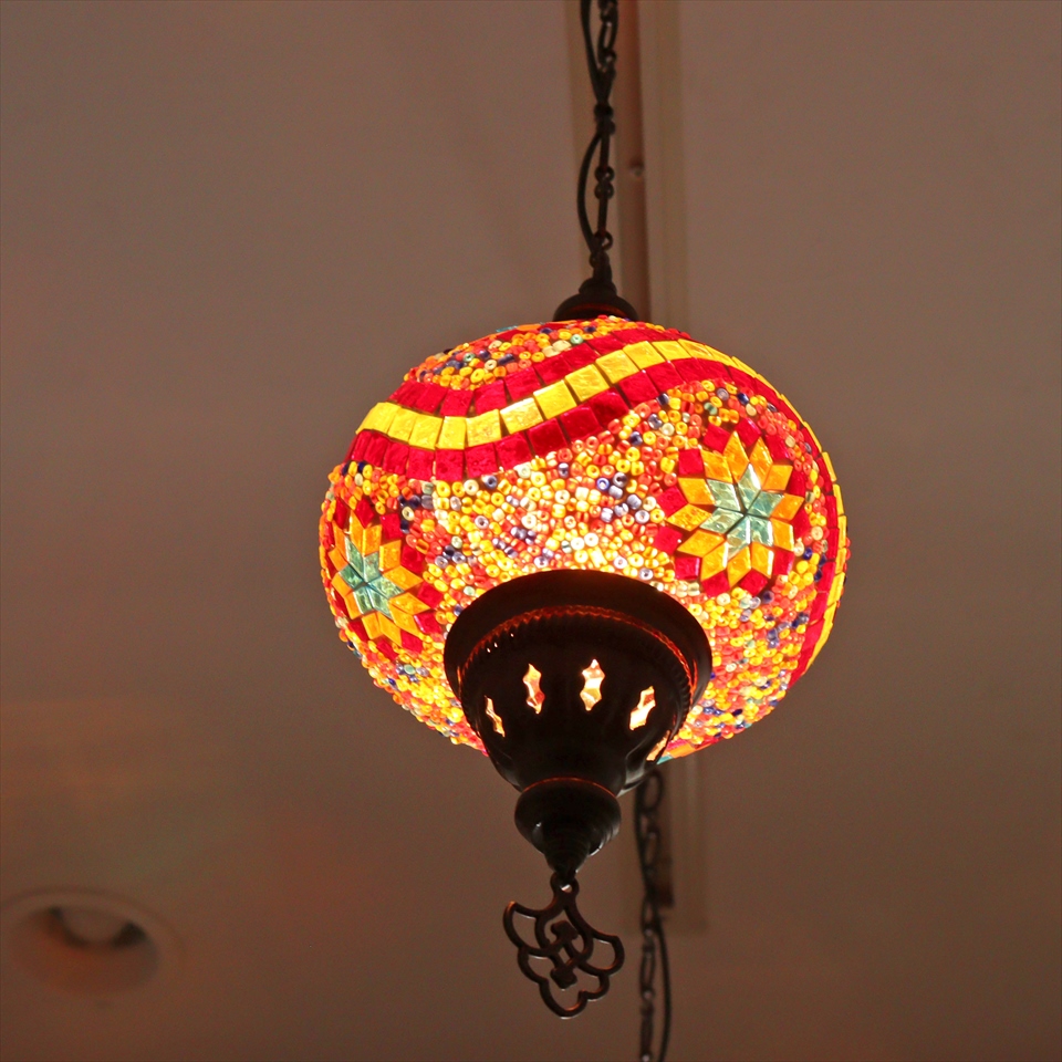 Key:トルコランプ モザイクランプ 天井照明 ガラスシェード ペンダントライト シーリングライト ランプ ライト 照明 間接照明 インテリア エスニック オリエンタル ガラスランプ 引掛けシーリング対応