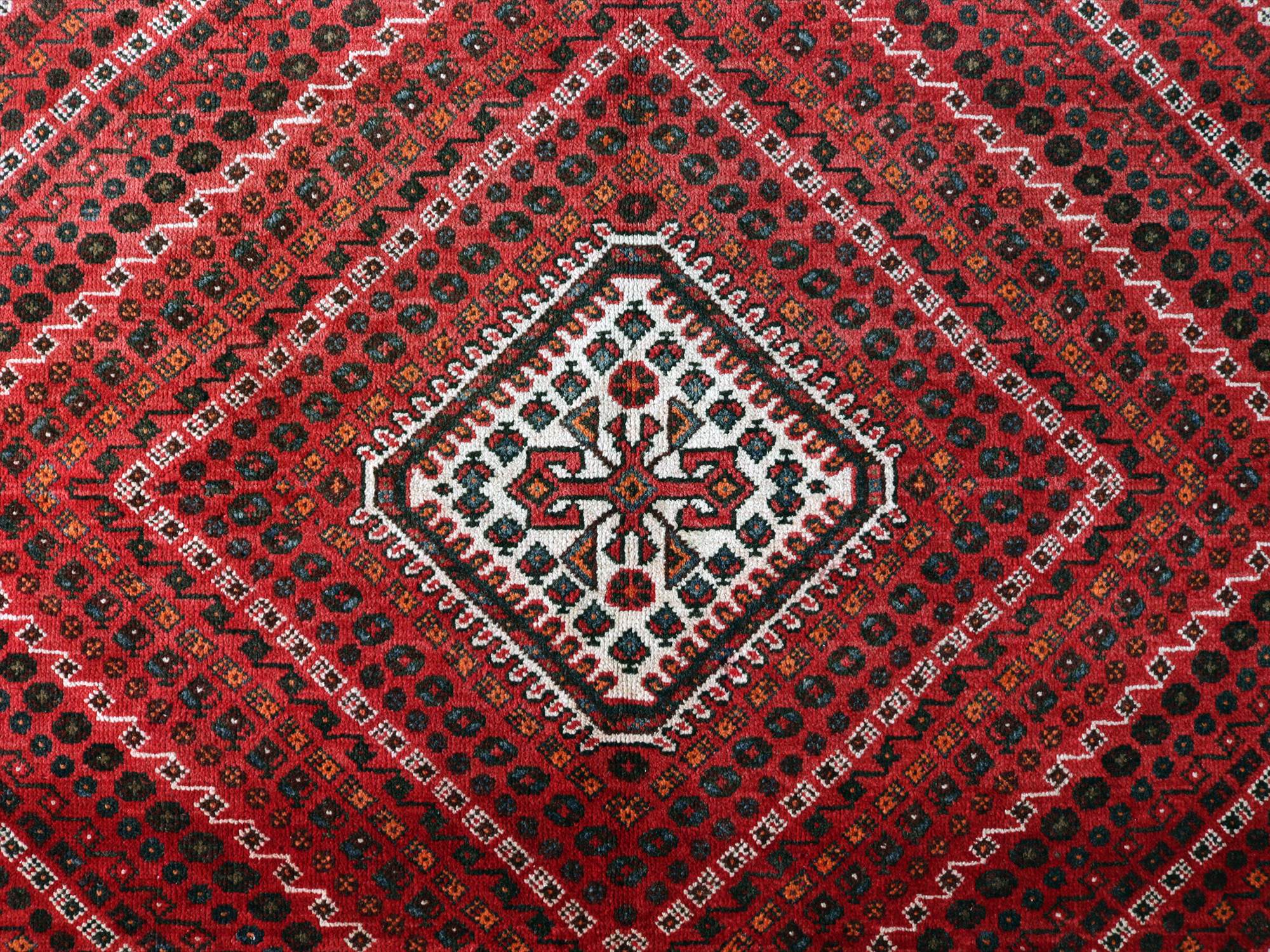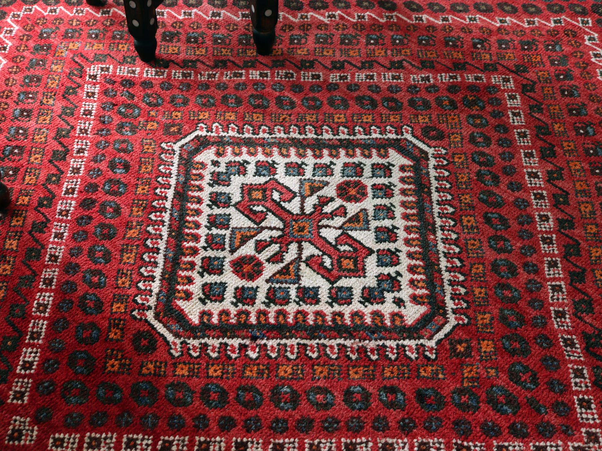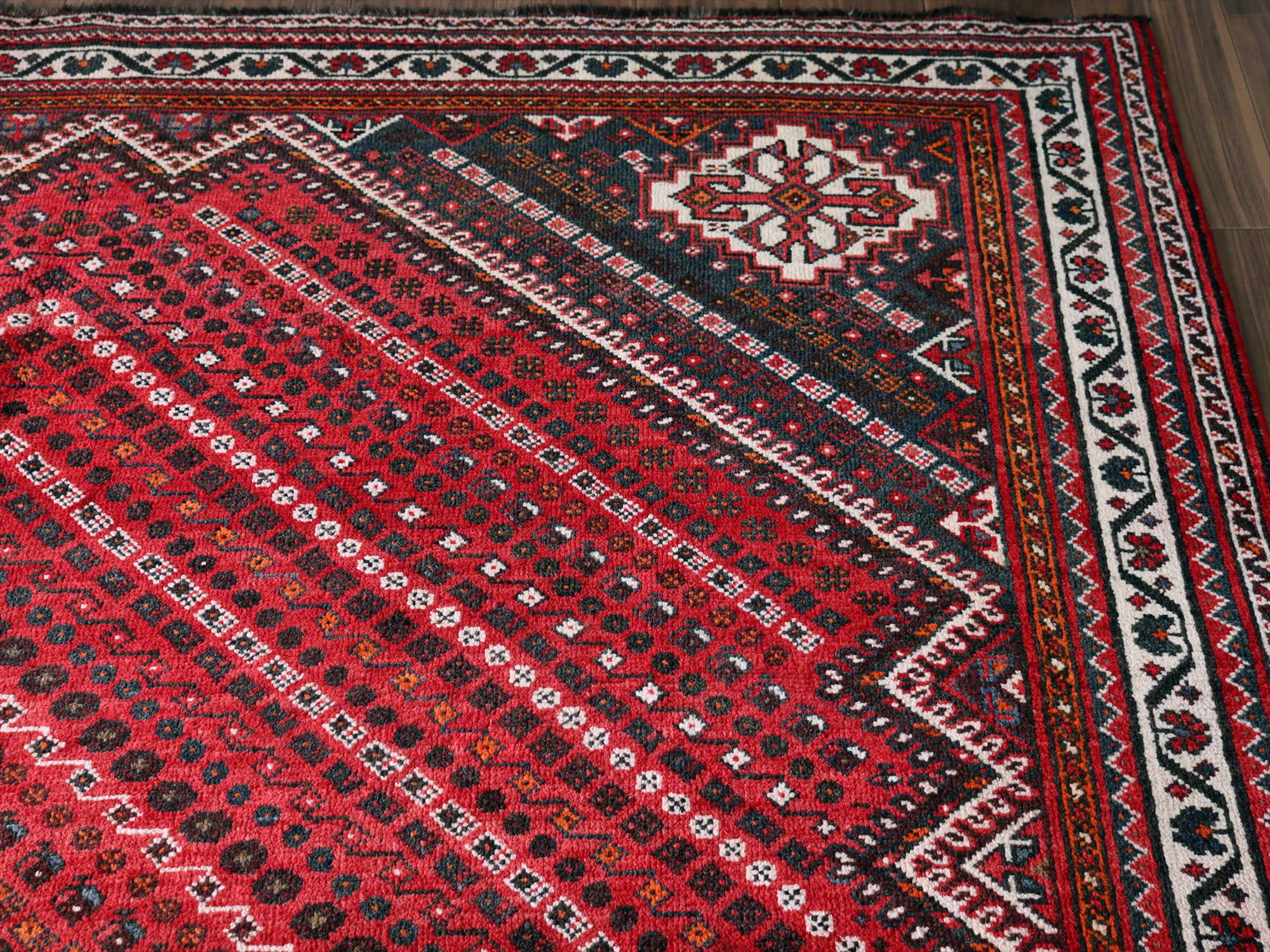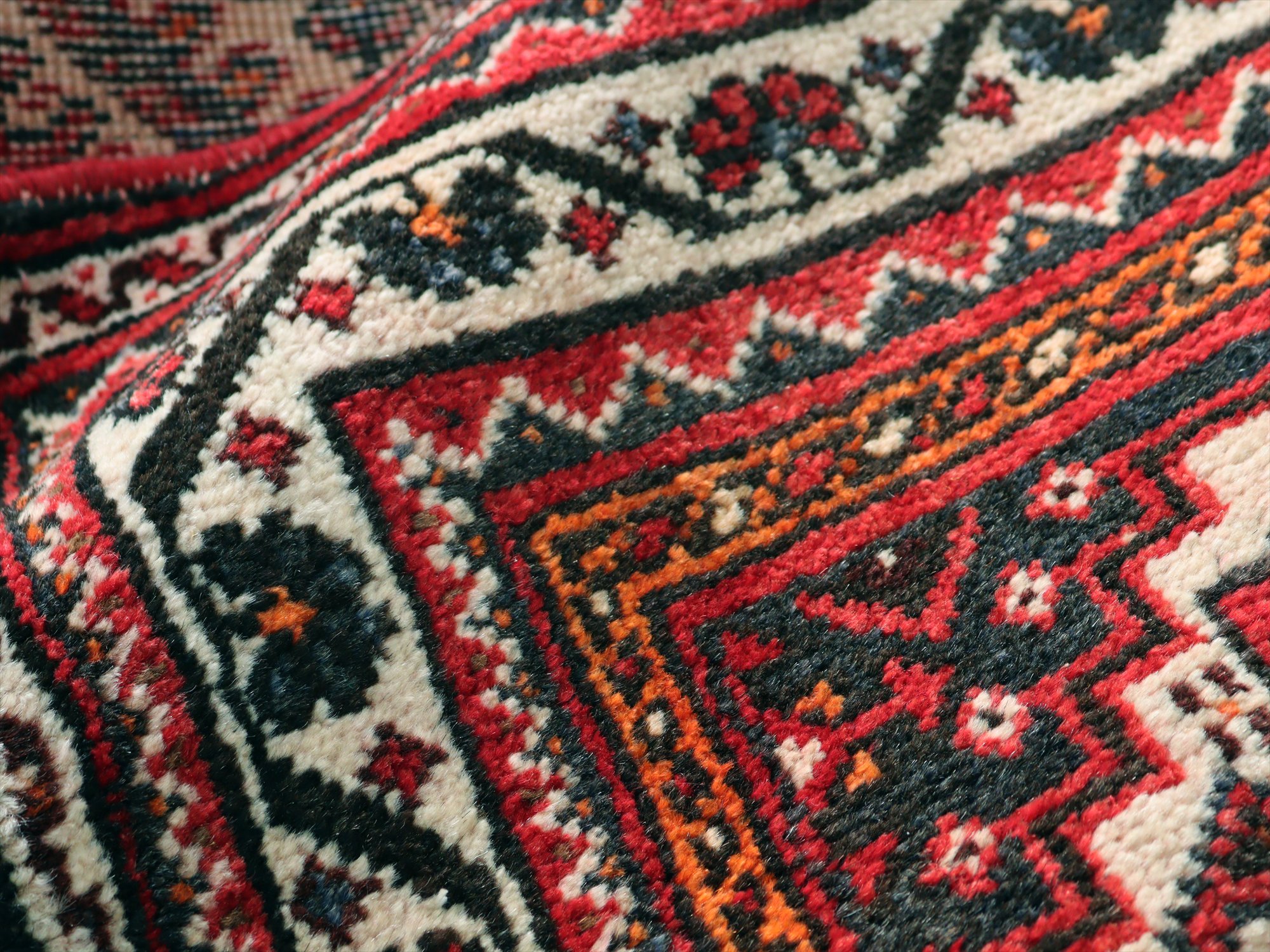 ベースを含めたラグの厚みは1cm弱で、毛足はすっきりとしていてモチーフがきれいに表現されています。また、縦糸にヤギの毛を使用していることから、当時商業用に織られたものではなく家庭で織られ丁寧に保管されていたものと推測できます。