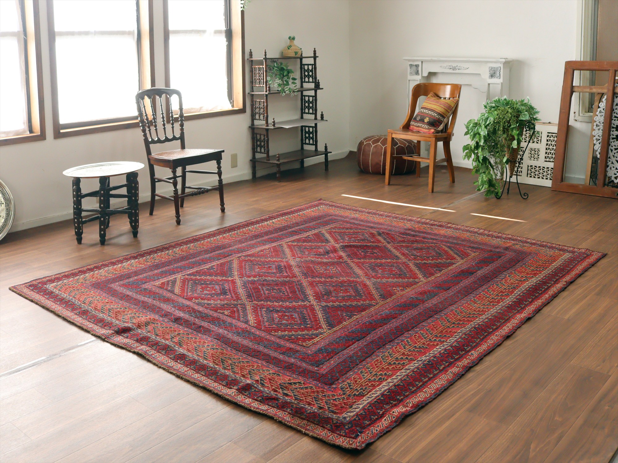 オールドキリム アフガニスタン ミシュワニ230×207cm 連なるダイヤ