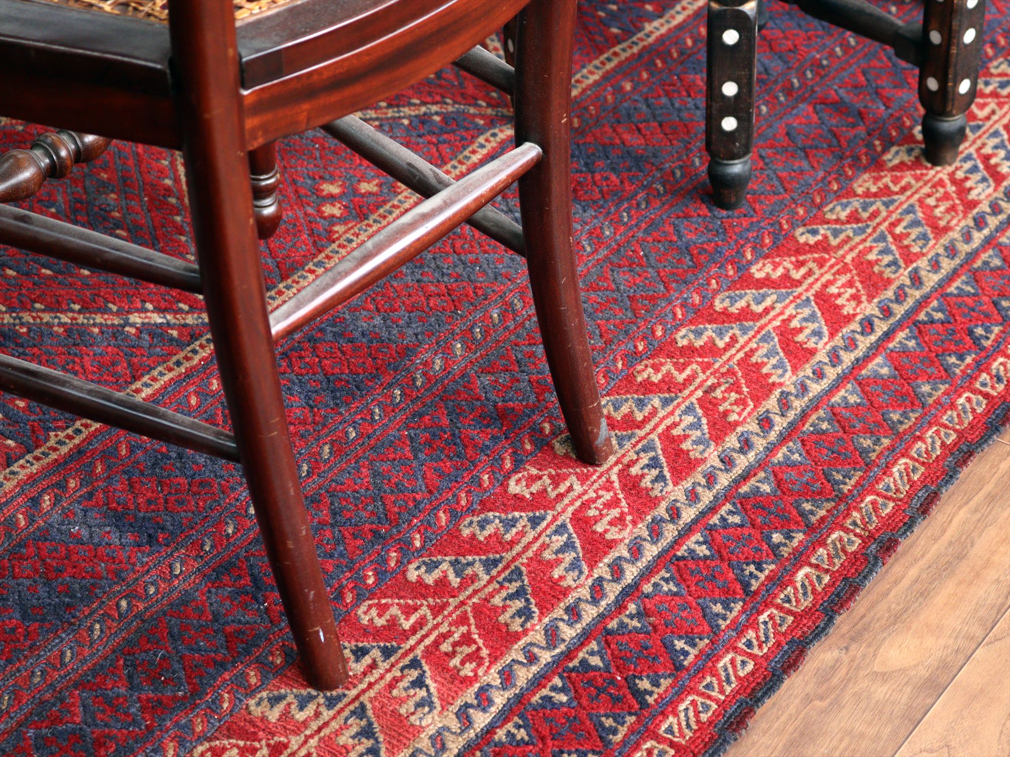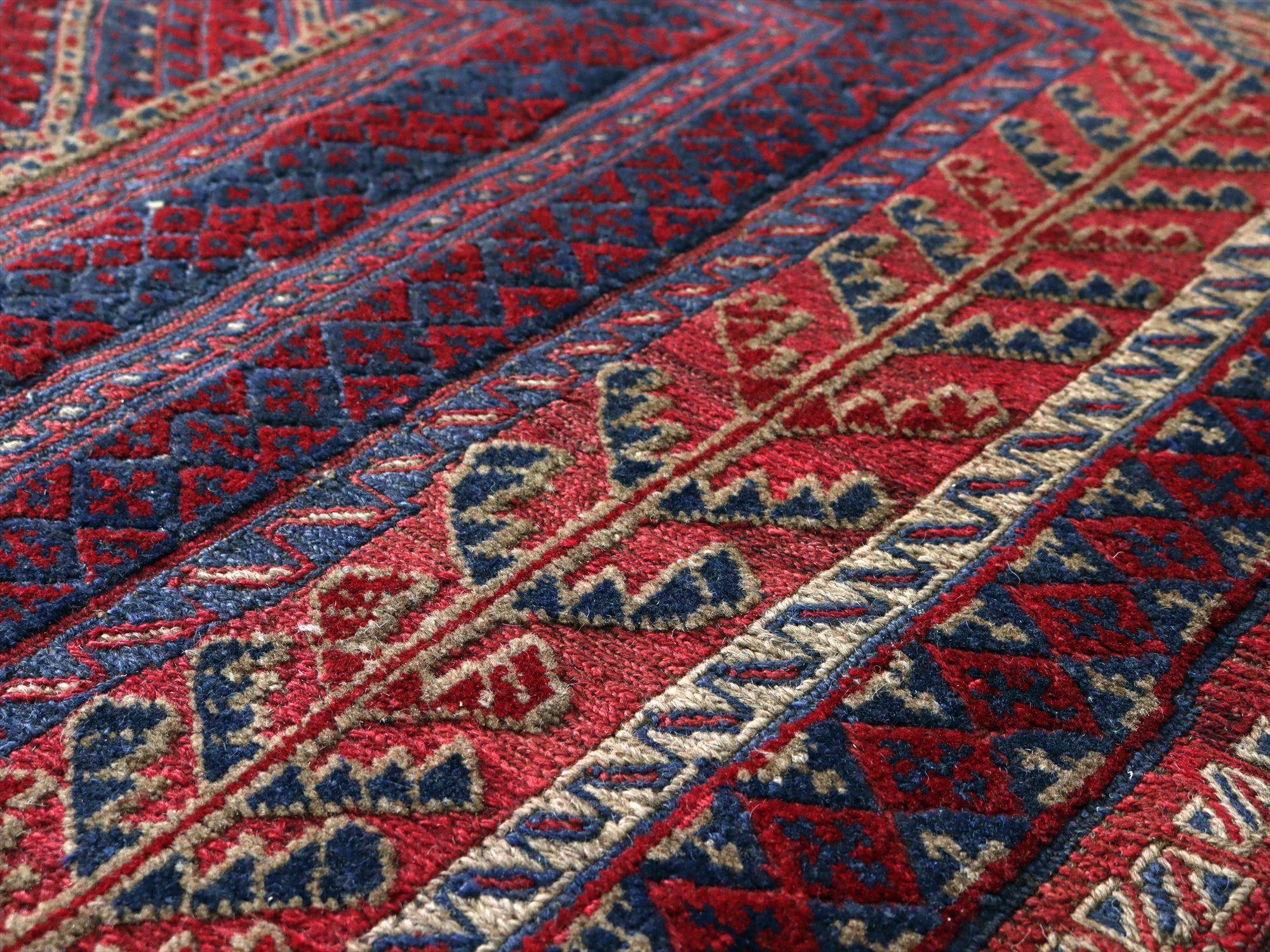 ベース地はスマック織りでしっかりとした織り地です。モチーフ部分はパイル(毛足)のある織りで、表面には立体感があります。