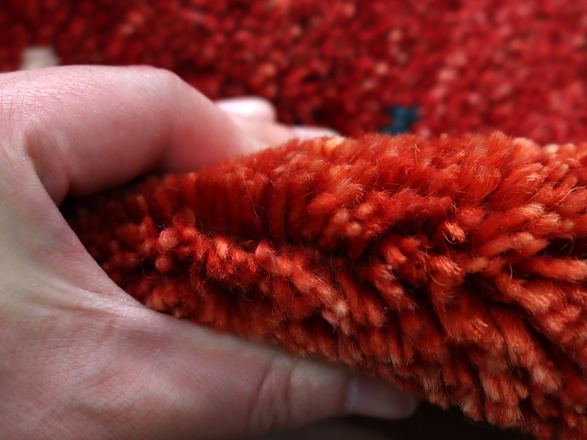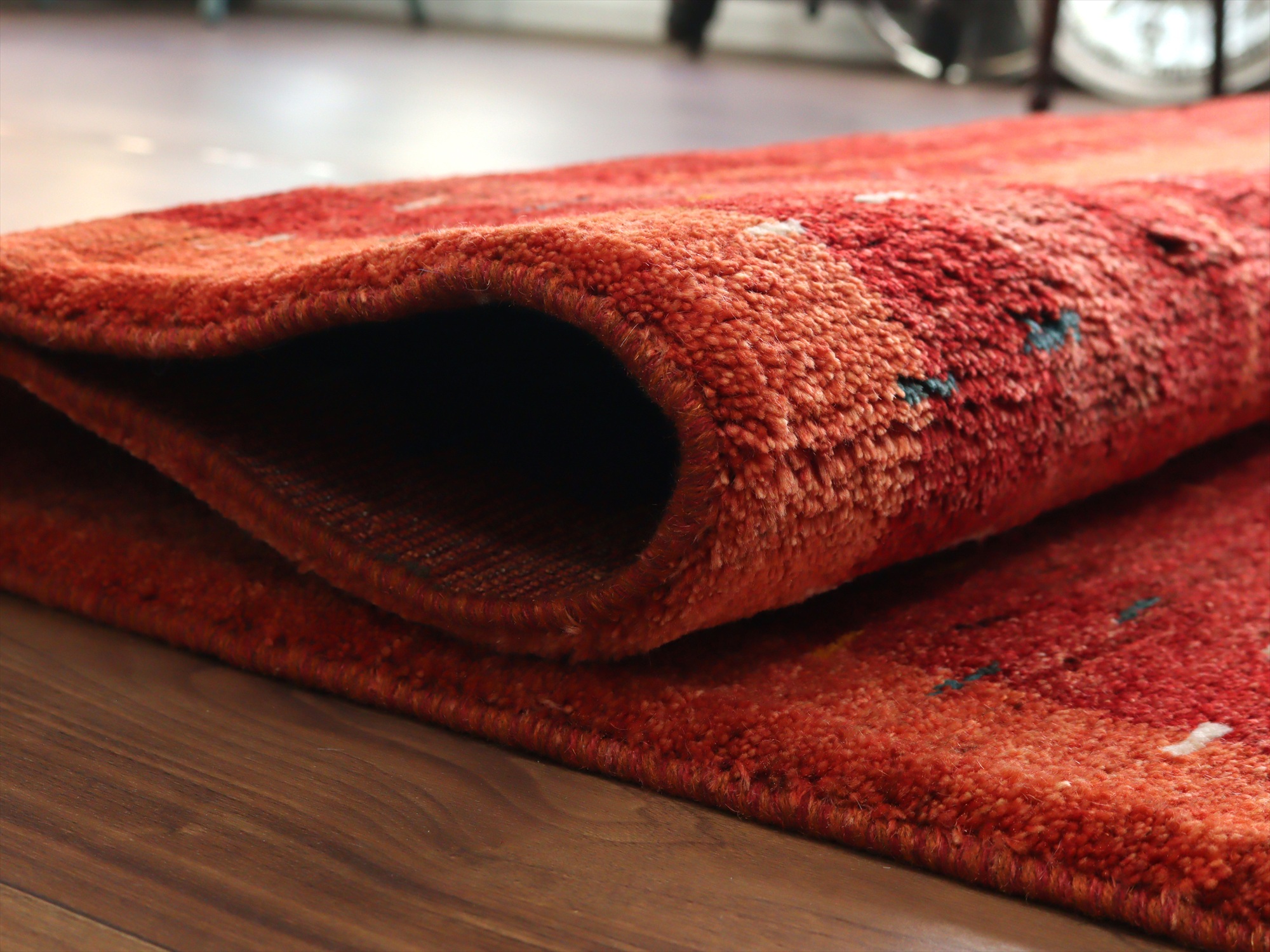 ベースを含めたラグの厚みは、2cm程でふっくらとした厚みがあります。