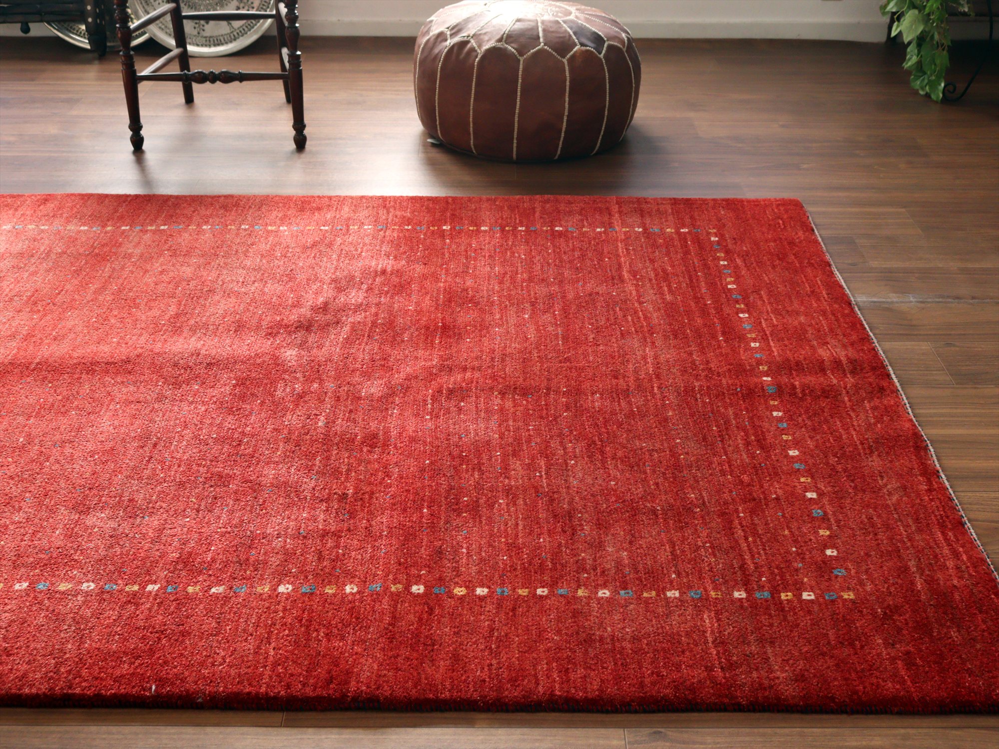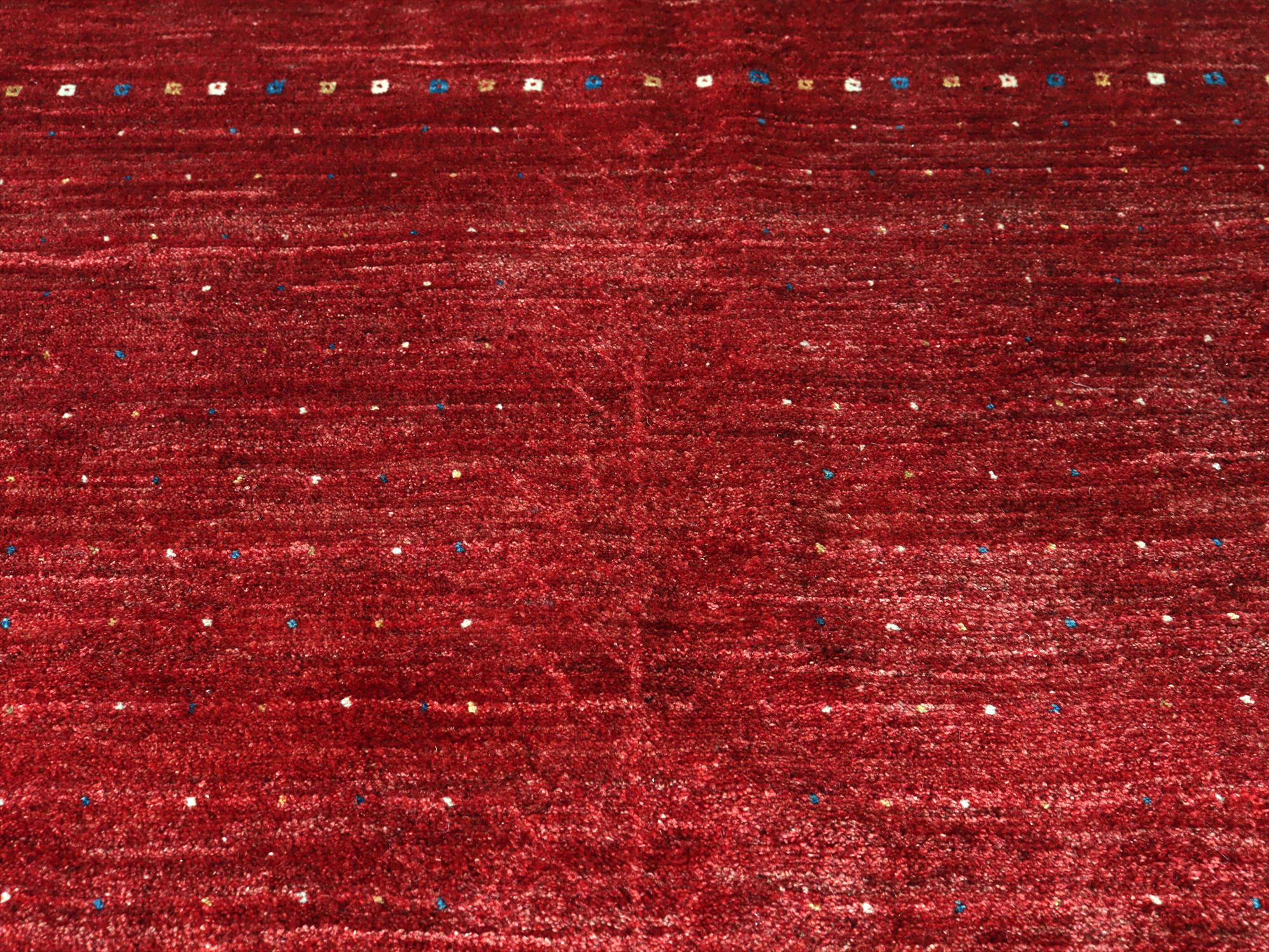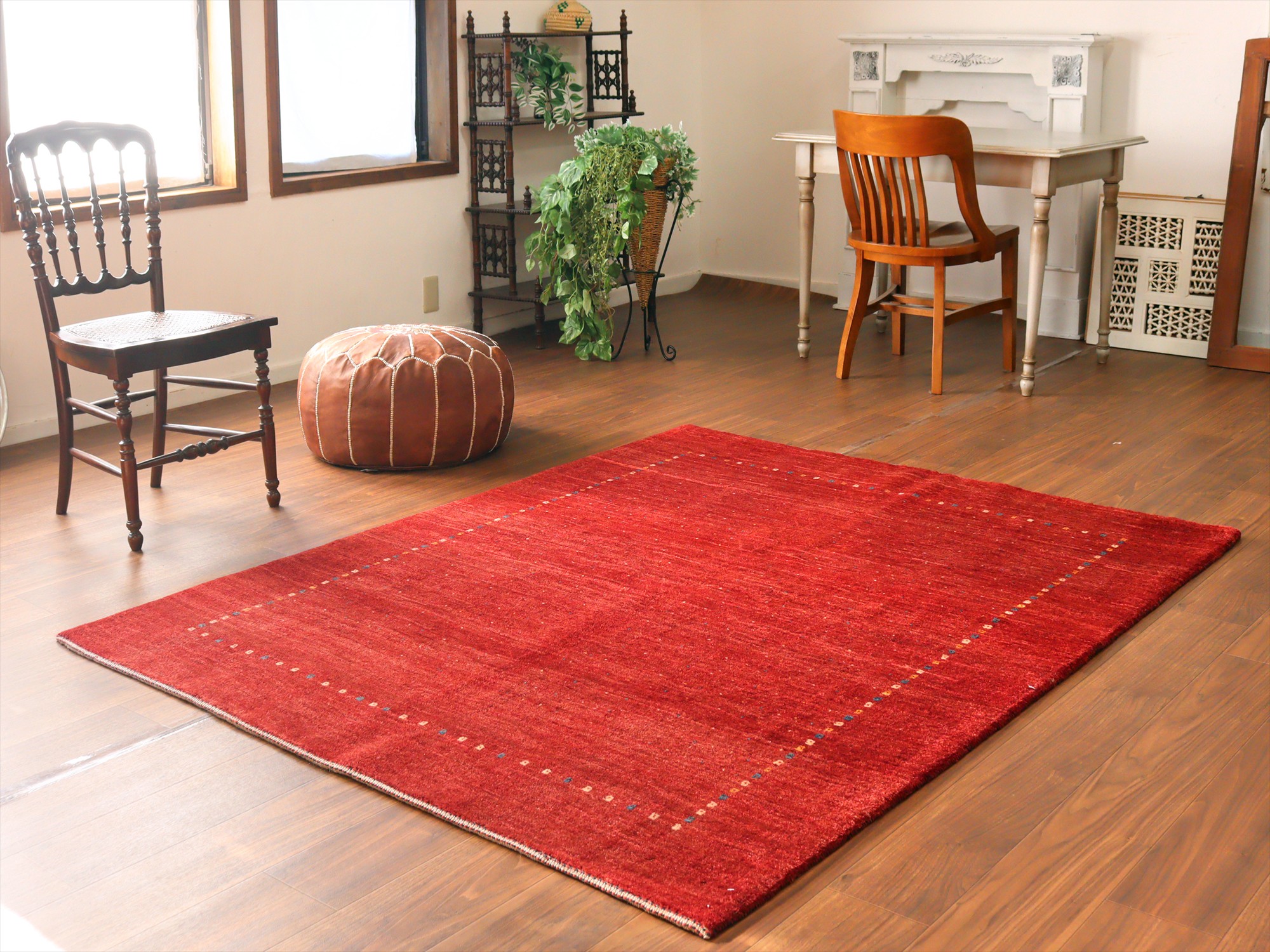 細かな織りで、繊細にレッドのグラデーションが表現されています。小さなタイルで枠を成し、その内側にはドットが散りばめられています。また、目を凝らしてよく見てみると、僅かにレッドの色合いを変えた細長い生命の樹を確認できます。
