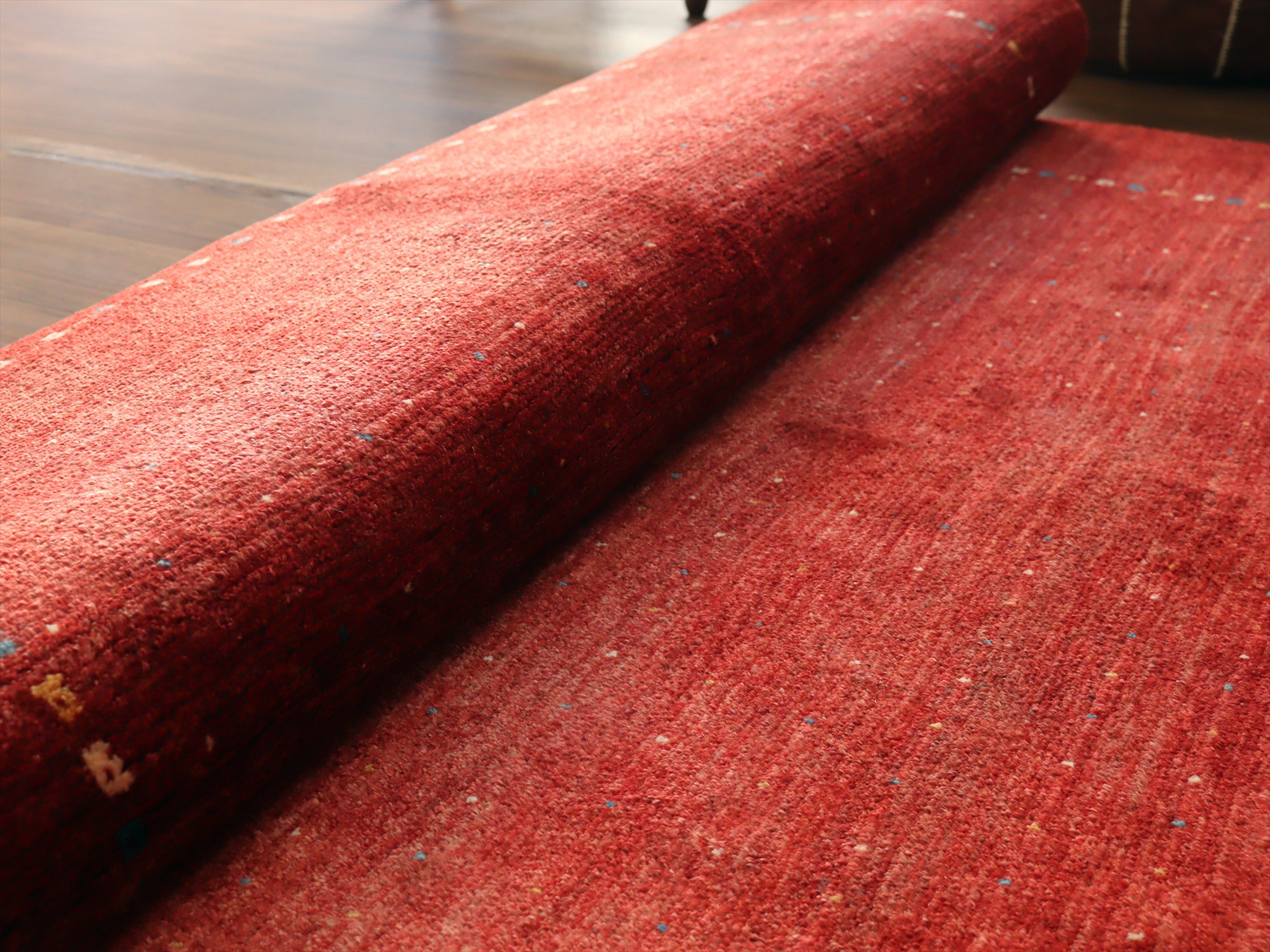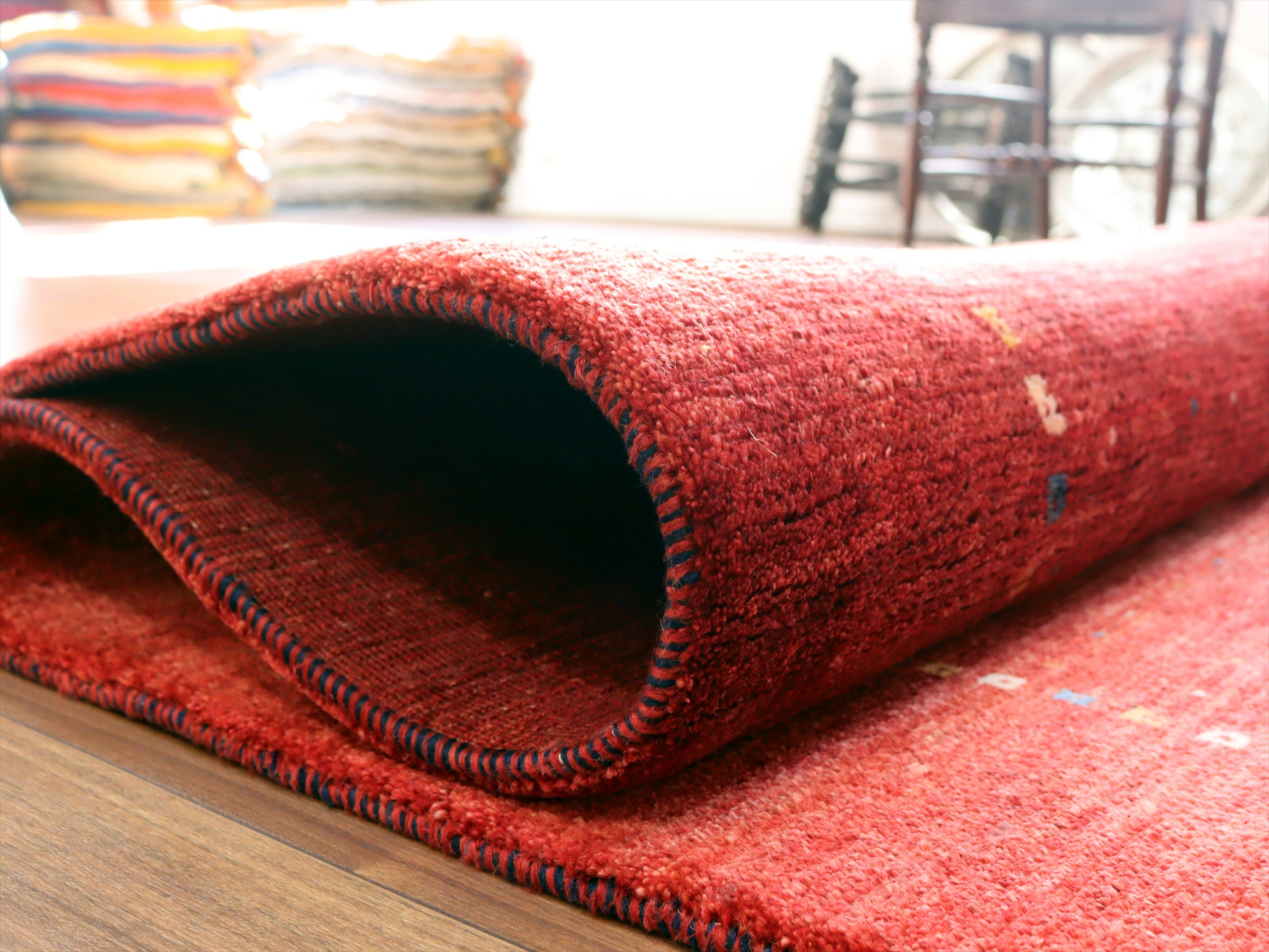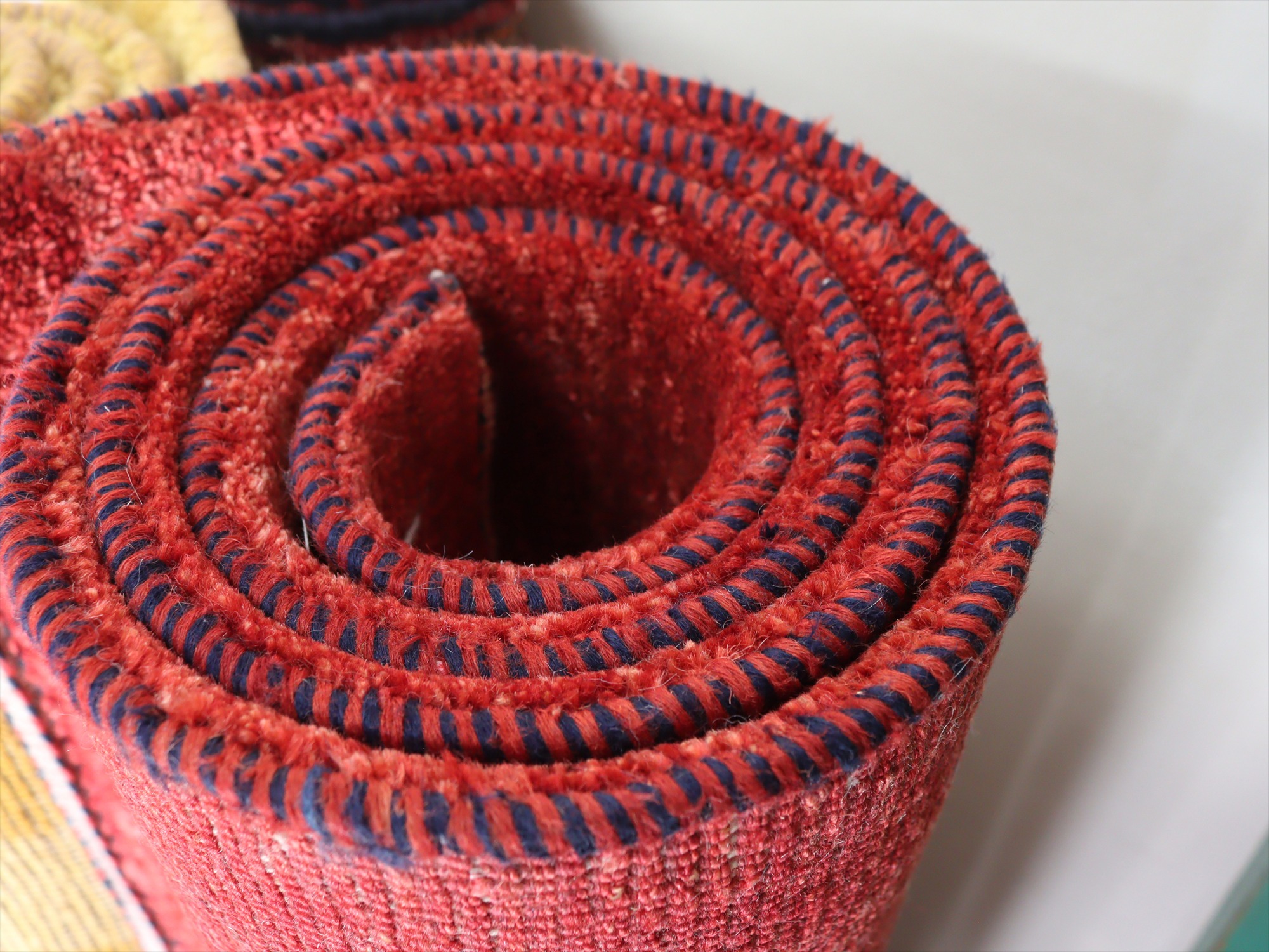 上下の縦糸を巻き込んでいます。ベースを含めたラグの厚みは、1.8cm程でパイルはすっきりとしていてモチーフがきれいに表現されています。