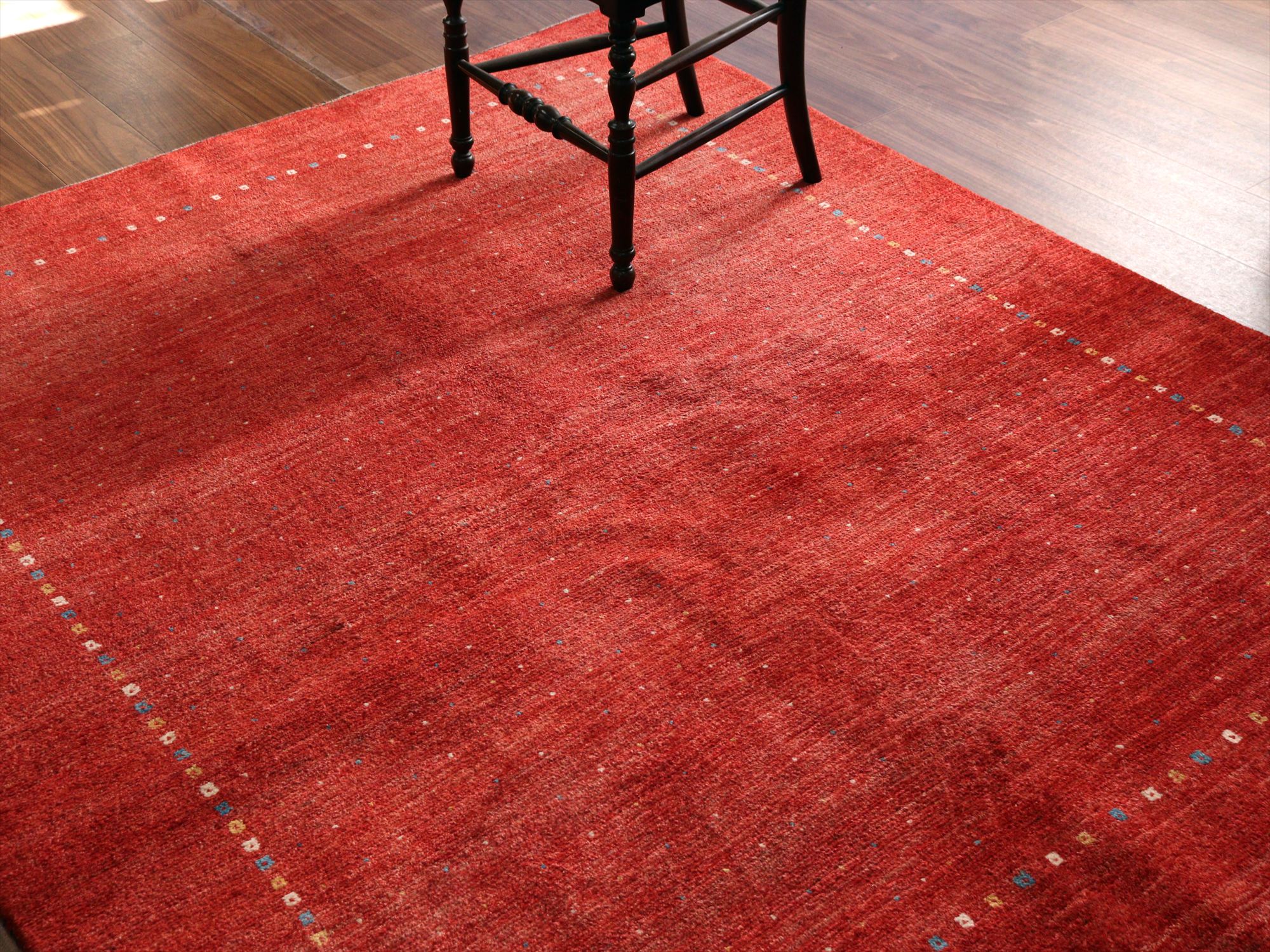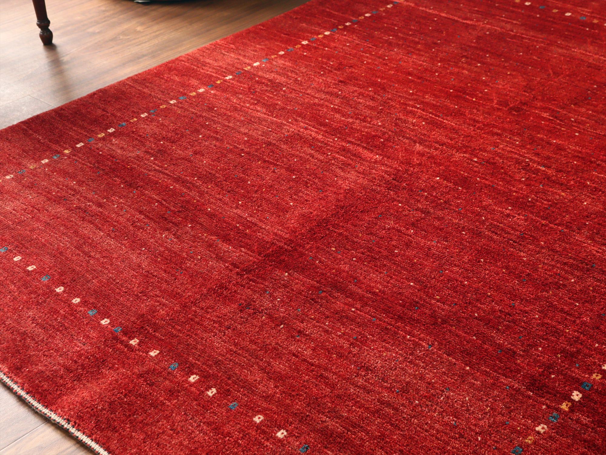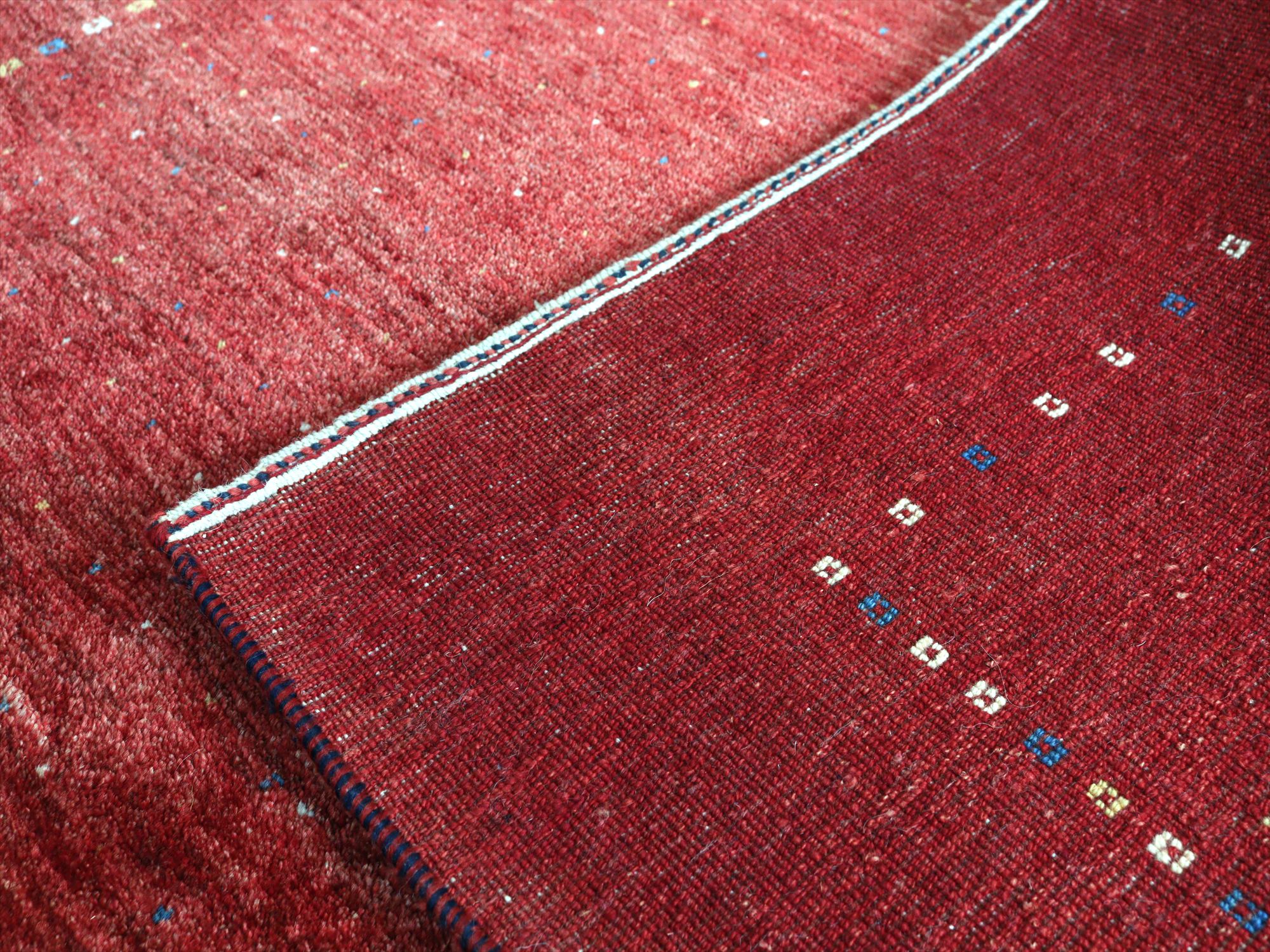 上下の縦糸を巻き込んでいます。ベースを含めたラグの厚みは、1.8cm程でパイルはすっきりとしていてモチーフがきれいに表現されています。