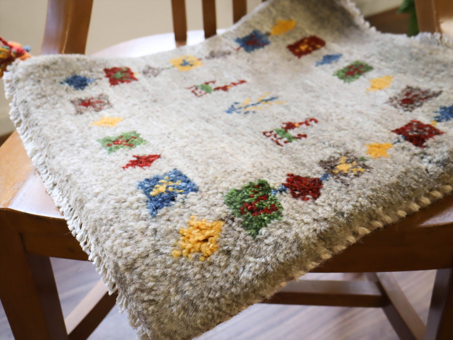 ベースの色は、染めていない天然の羊毛の色で、わずかにベージュがかった明るいグレーです。