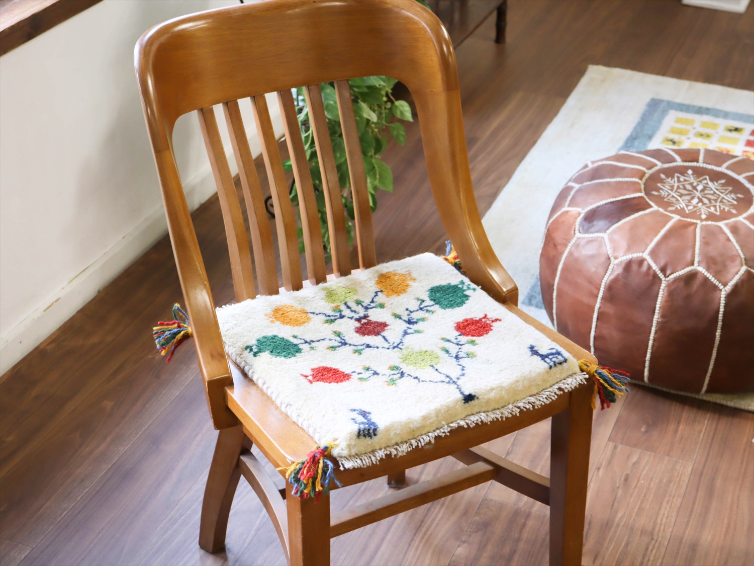 ギャッベらしい素朴なデザインのギャッベが入荷しました。40cm角のミニサイズは、座布団代わりにフロアの上に並べたり、ベンチシートや椅子に敷いたり、または玄関周りのデコレーションや車の座席シートにもおすすめです。手織りならではの一枚一枚違ったテイストをお楽しみください。