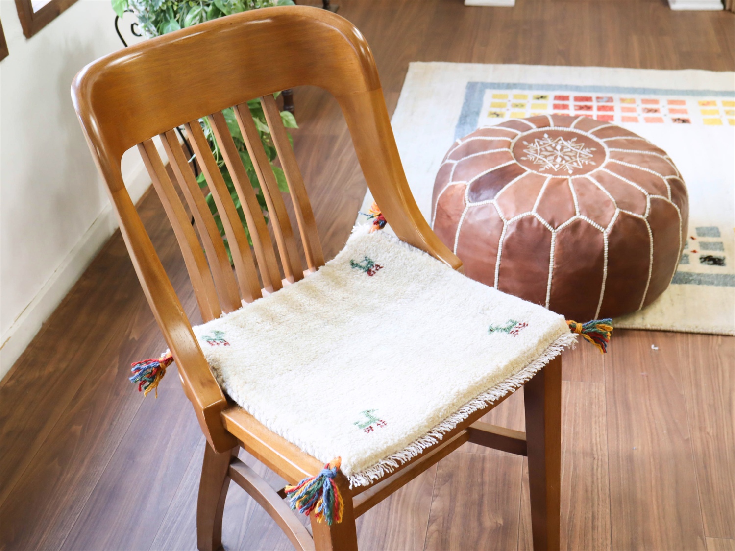 毛足が長く、パイルを含めたギャッベ全体の厚みは2.2-2.3cm程度。ボリューム感たっぷりのふかふかギャッベです。