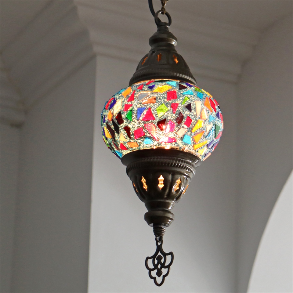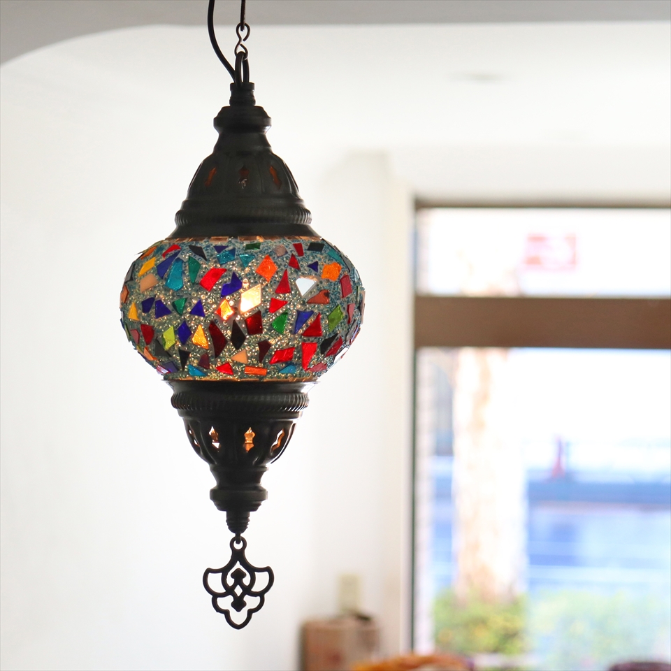 Key:トルコランプ モザイクランプ 天井照明 ガラスシェード ペンダントライト シーリングライト ランプ ライト 照明 間接照明 インテリア エスニック オリエンタル ガラスランプ 引掛けシーリング対応