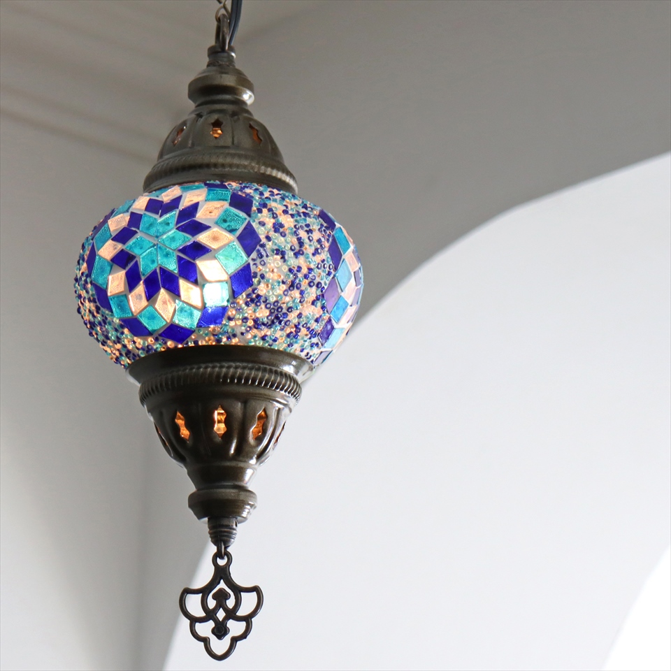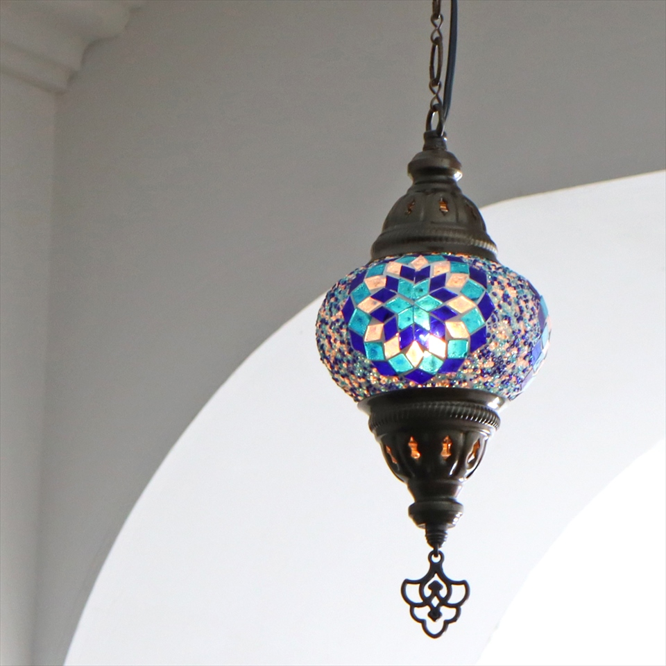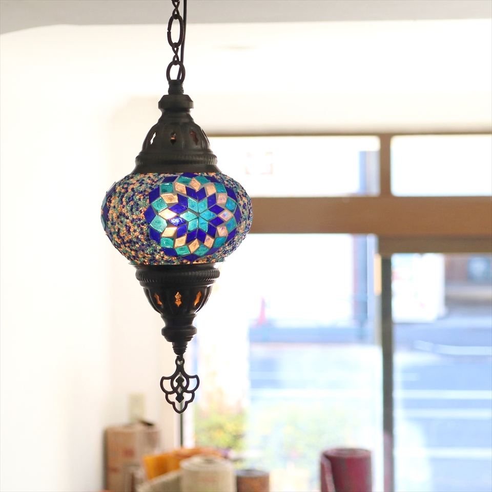 トルコランプ モザイクランプ 直径13cm 全高67cm ブルー ペンダントライト