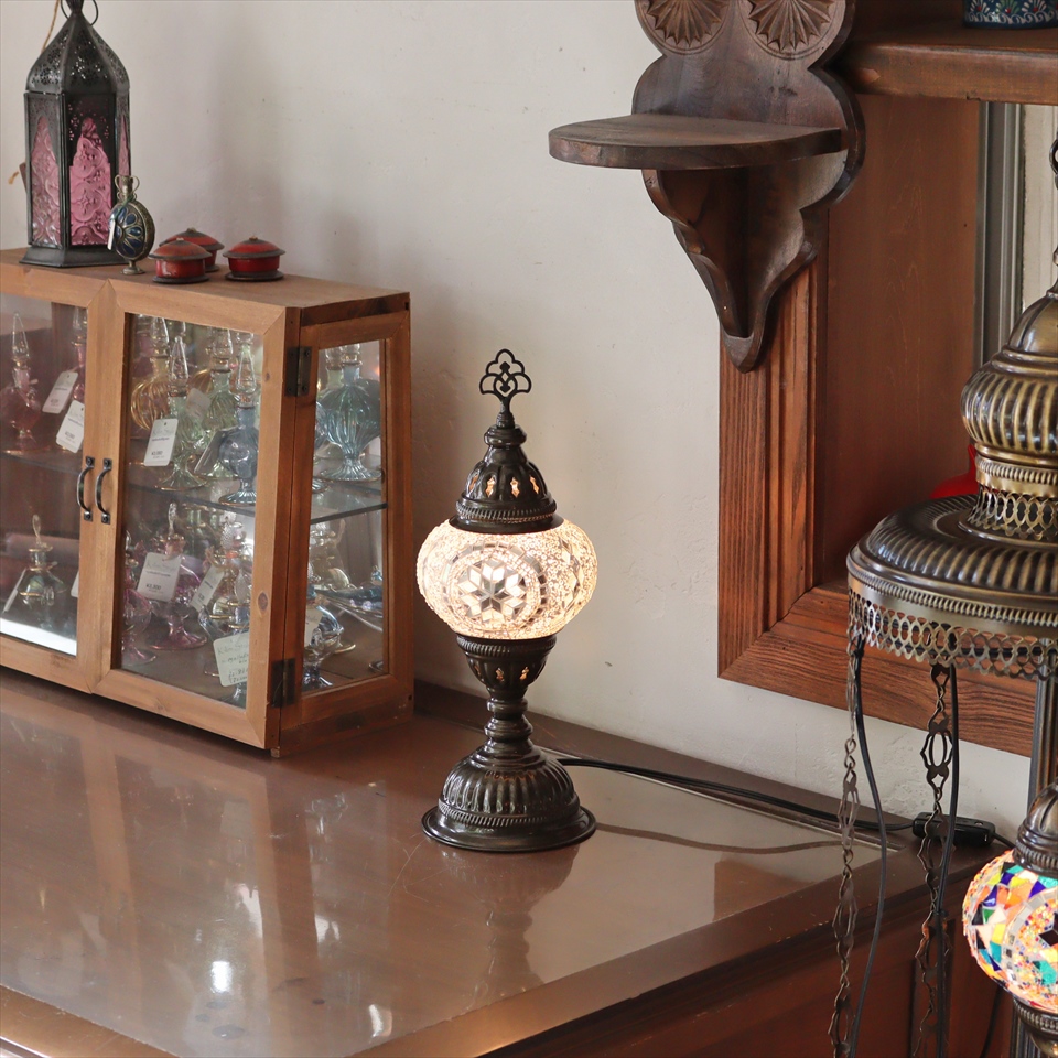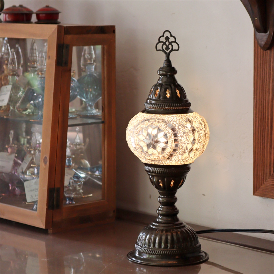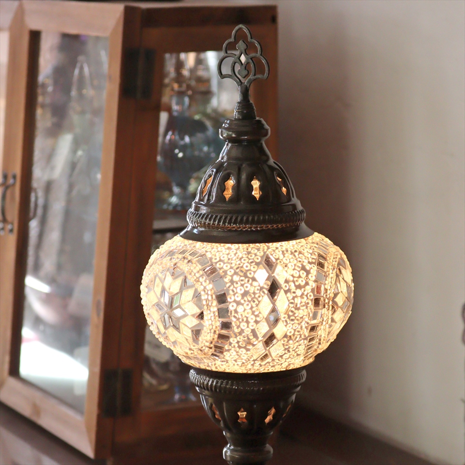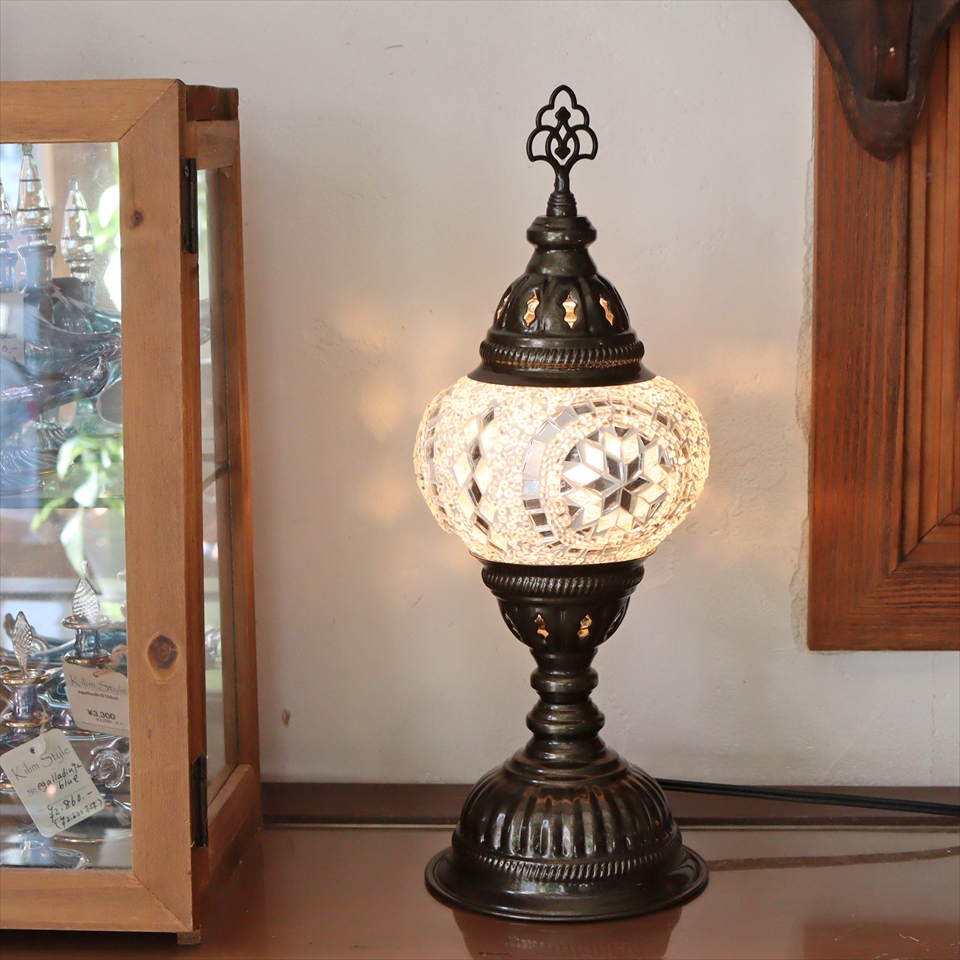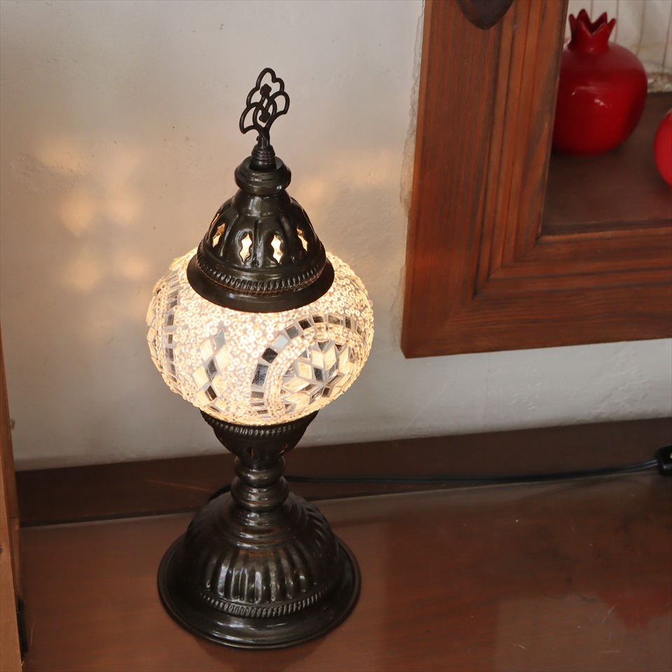 トルコランプ モザイクテーブルランプ 直径13cm 全高36cm ホワイト