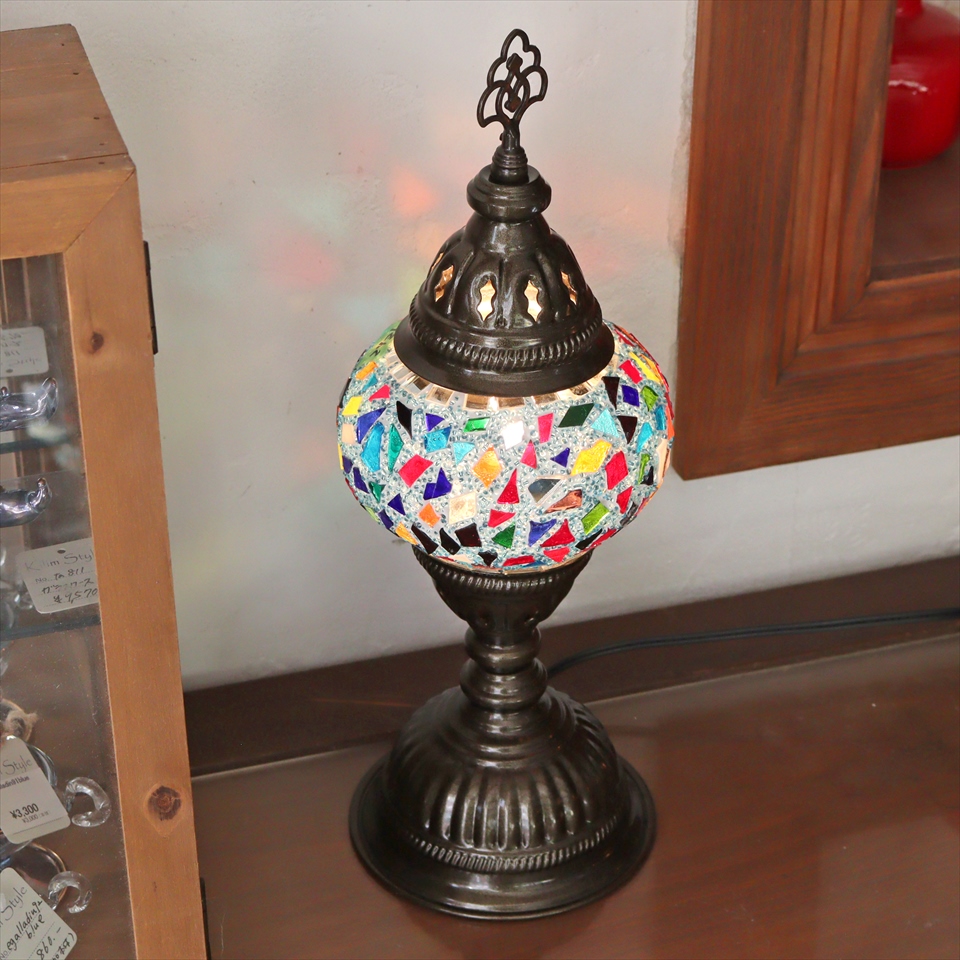 トルコランプ モザイクテーブルランプ 直径13cm 全高36cm ブルー